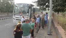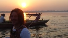 Today we got up very early and drove to the Ganges for the sunrise. We boarded a boat (old wooden boat, with two Indian men rowing the boat). We saw many sights along the river. Indian Woman praying. Sunrise is a time for praying for the Hindu Religion Nana Sue enjoying the Sunrise Monks practicing…