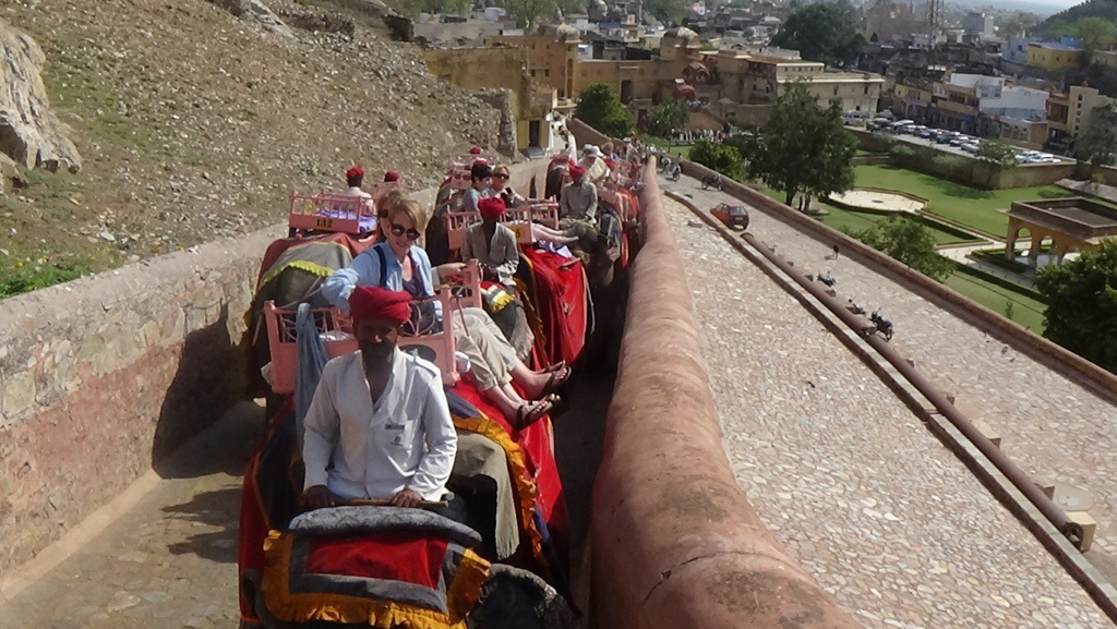 We are in Jaipur India visiting a 16th century Amber Fort. This fort is very intracite and very very large. There is a long climb up to the top so we decided to “Ride and Elephant” like the royalty.