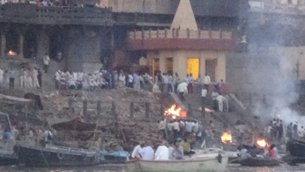 Yesterday we arrived into Varanasi India. This is a very sacred city to the Hindu religion and a place where people go to die. This city is located on the Ganges river. The Hindu believe that you have multiple lives and that when you die you need to be cremated and then your ashes deposited in water. The Ganges river is considered a sacred river and so there are many crematories located along the river. They are open and typically the body is transported to the river edge, put on wood and burned. We are able to watch this from a distance on the river. This tradition has been going on for thousands of years. In addition, a Festival of Life is done at sundown every day by men training to be priests. Thousands of people (most are Indians) are in boats and on the shore watching this holy festival, celebrating life.