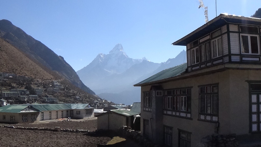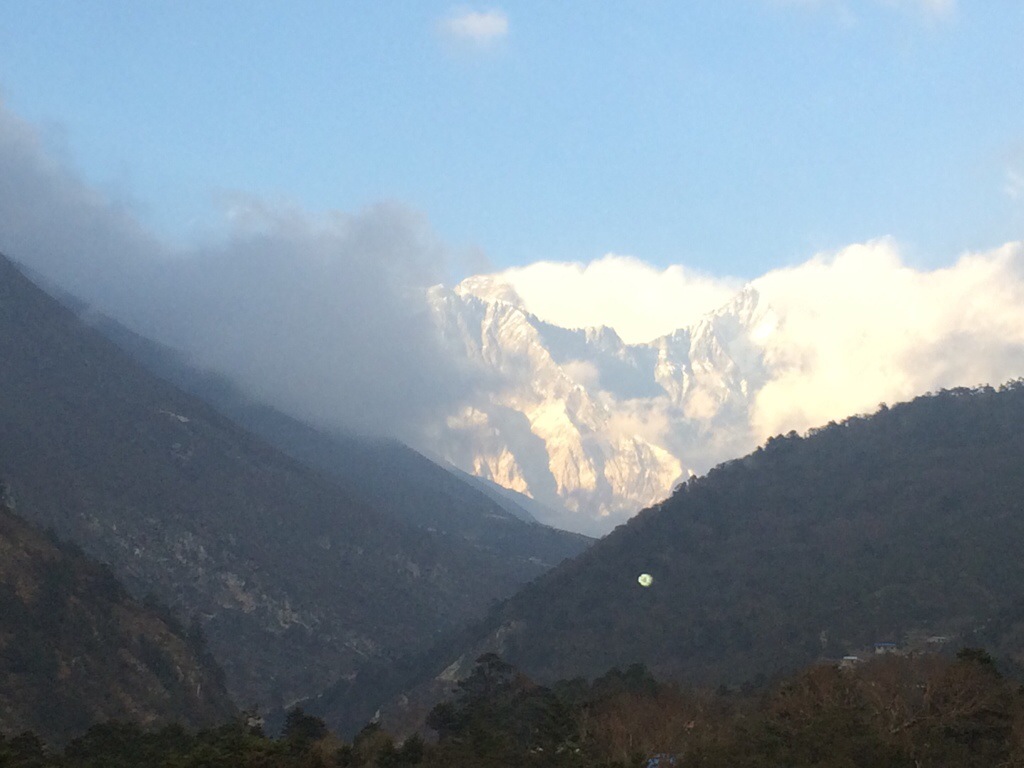 Today we had a long hike down to a river and then a long hike back up the other side. We didn’t gain much elevation in our hike today but moved closer to Mount Everest. In fact as we arrived to our tea house, we saw Mount Everest for the first time. Clouds periodically covered the mountains but it sometimes showed off it’s splendor.
