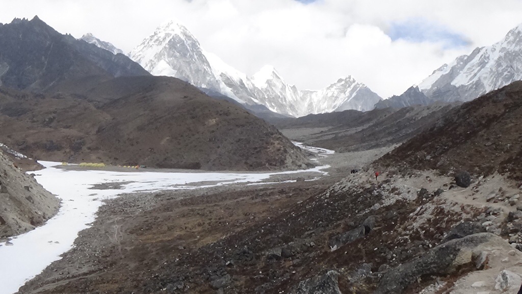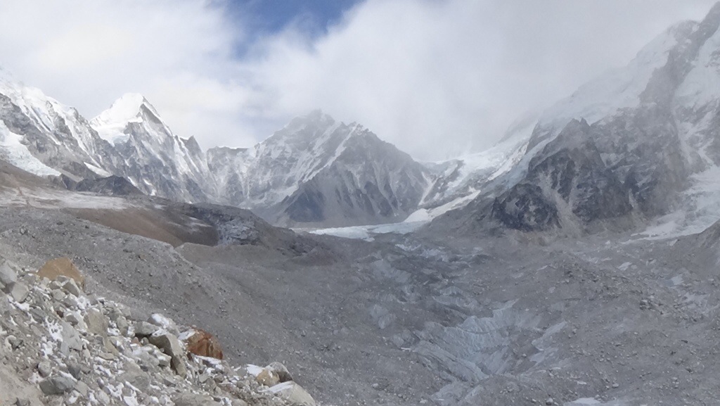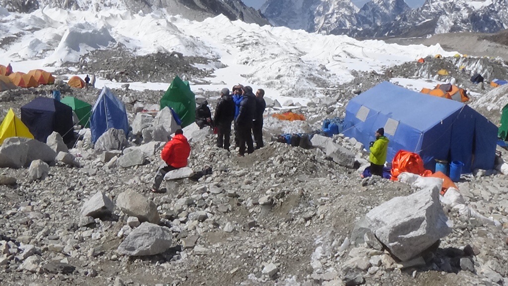 It is very rocky and uneven as the main path winds from camp to camp. Nobody takes care of the path so it is uneven and up and down. The entire base camp is on a glacier with stones on top of the glacier. Many places the glacier peaks out from the stones. All of the tent areas must be flattened by hand either chopping the ice down or adding stones.