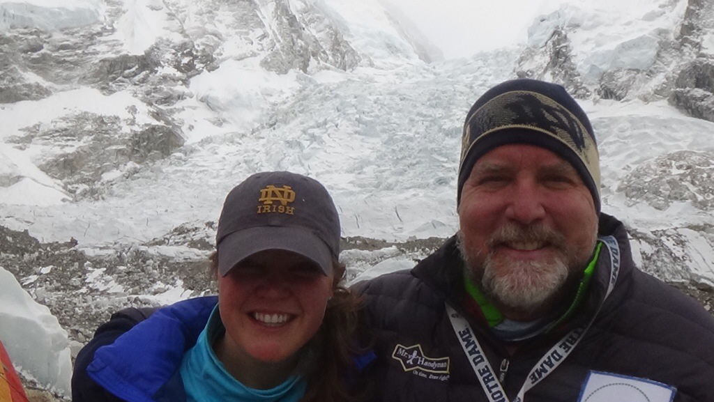 Erin Carney (class of ’06) and Michael Carney (class of ’79) hiked up to Mount Everest Base Camp. Haley Carney, another daughter, also joined Michael and Erin.