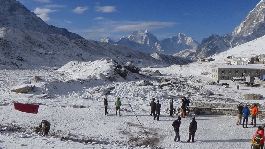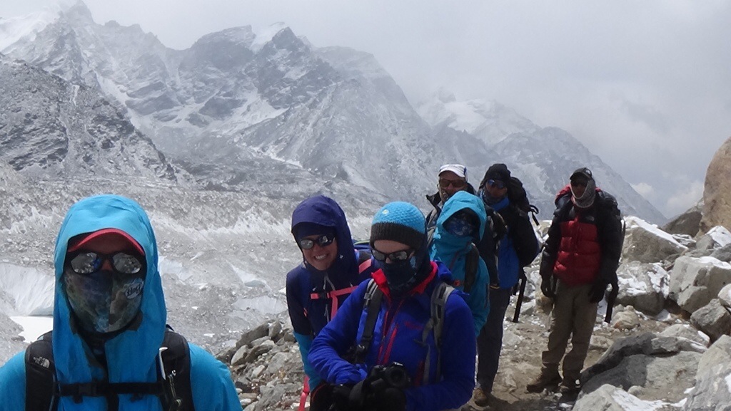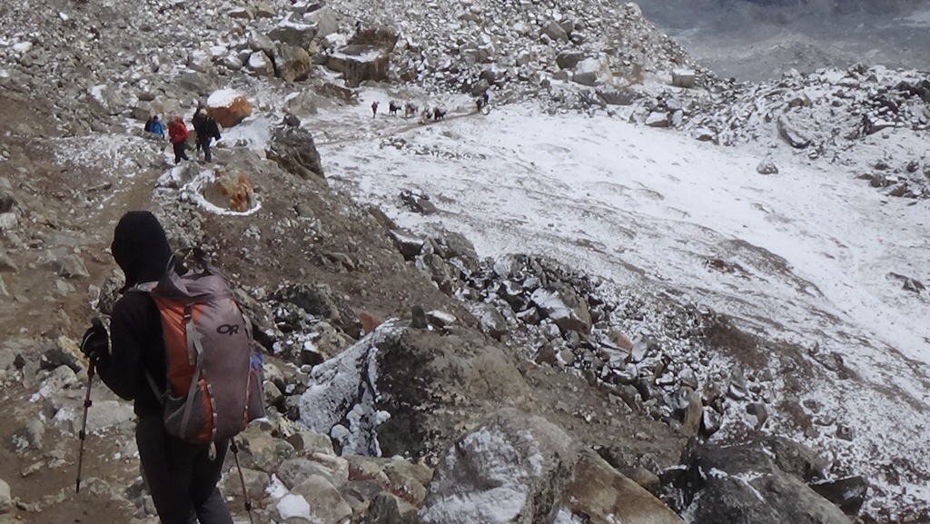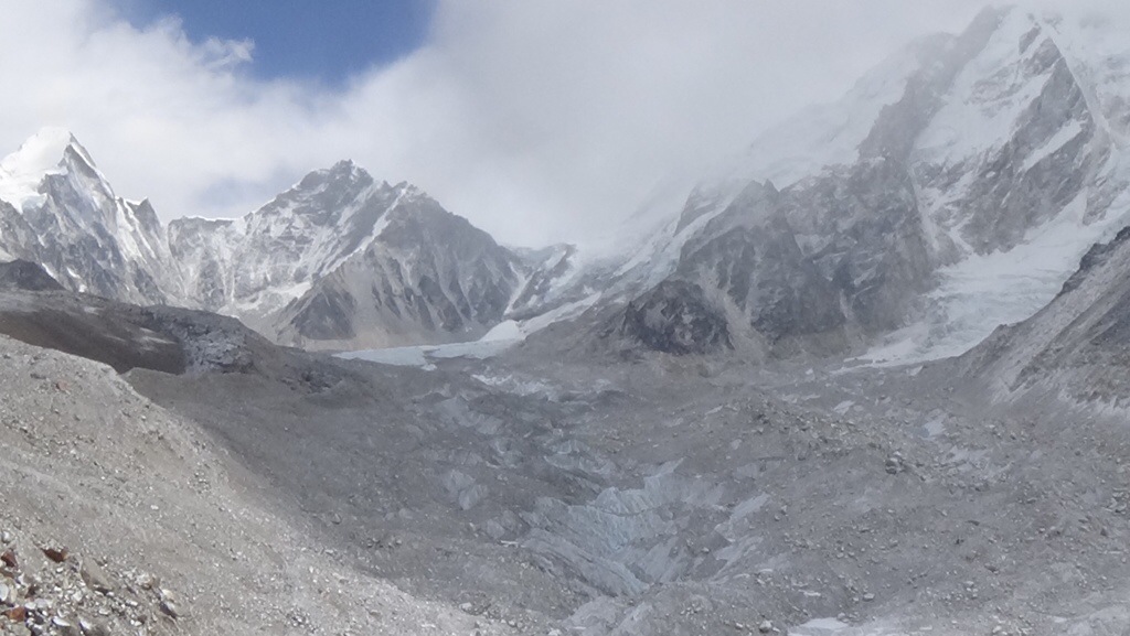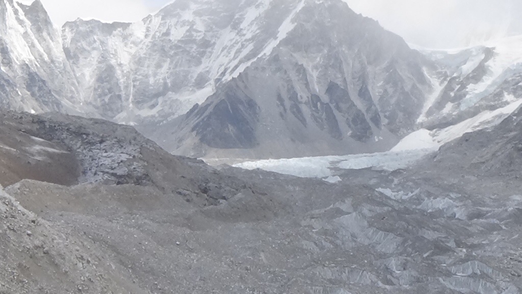 We entered into the glaciers of the Himalayans today, first from the rocks that older glaciers had pushed to the current glaciers. Base camp is on top of a glacier.