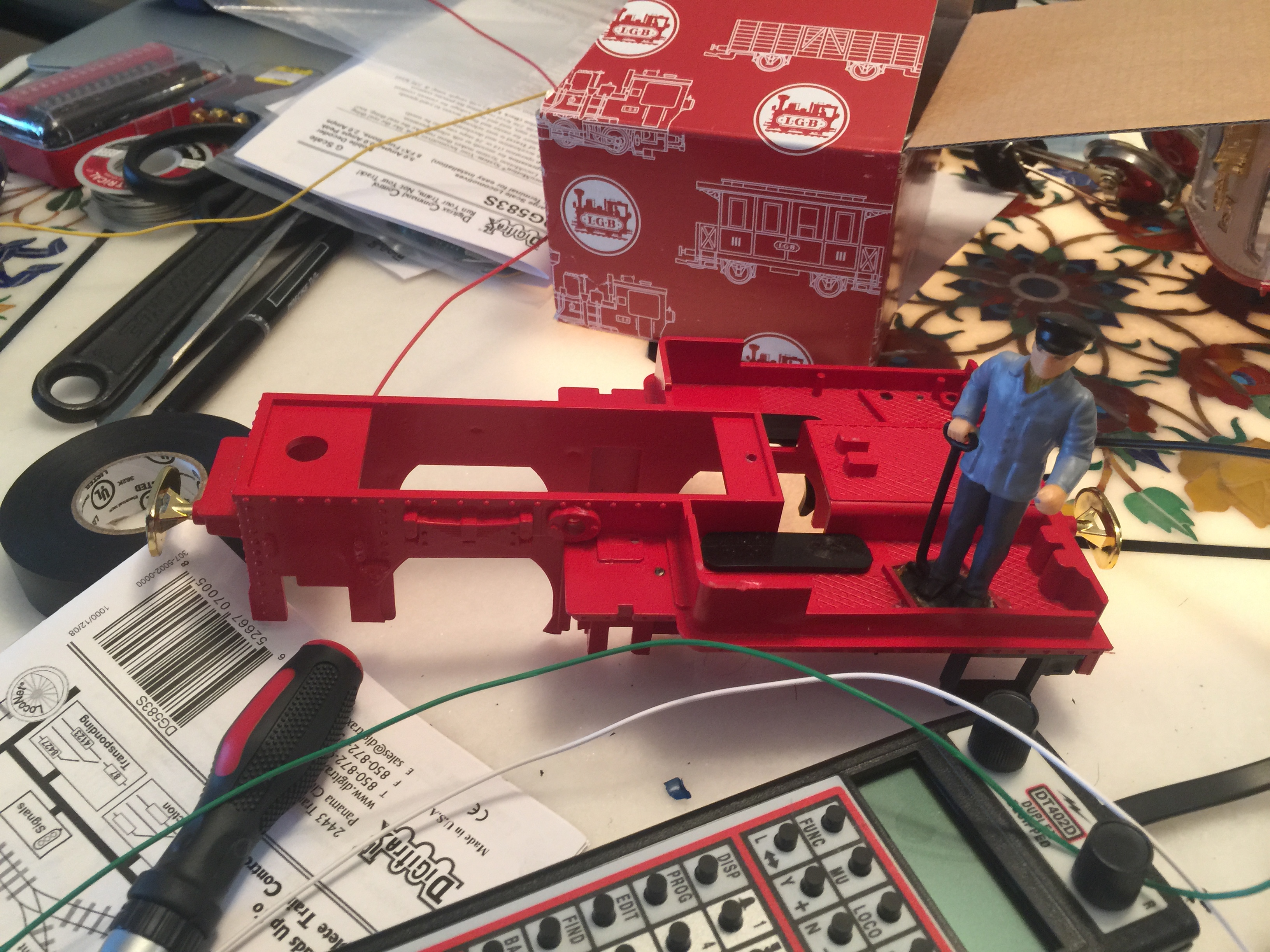The circus train was a lot more complex. Typical of the Germans. Once I saw how the Kalamzoo Toy Train locomotive motor box came out I used the same technique for the LGN 202 Circus Train Locomotive. Again no room in the locomotive so I need to put the electonics in a different car. This train is different because I also have the powered coal car and a sound car (train sounds) so I have to decide on the layout for everything. I had some problem isolating the motor from the pickup leads so I will be back to update you on the plan for the LGB Circus Train and how I plan on getting everything set up.