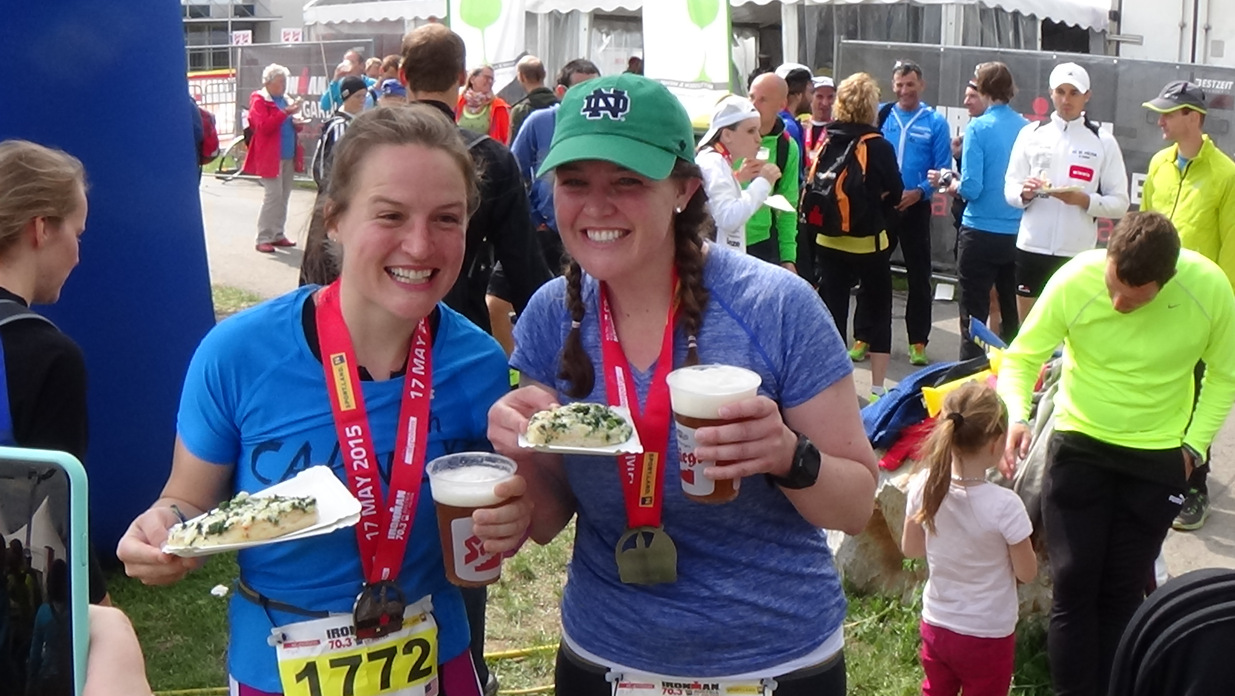 Erin and Haley finished in style. They biked and ran together most of the way. In fact they were so close at one point on the bikes that Erin got a 5 minute penalty for being too close (3 bike lengths instead of 5 bike lengths, the Austrians were very strict in all parts of the race… Haley got a 15 second penalty for removing her bike helmut too early).
