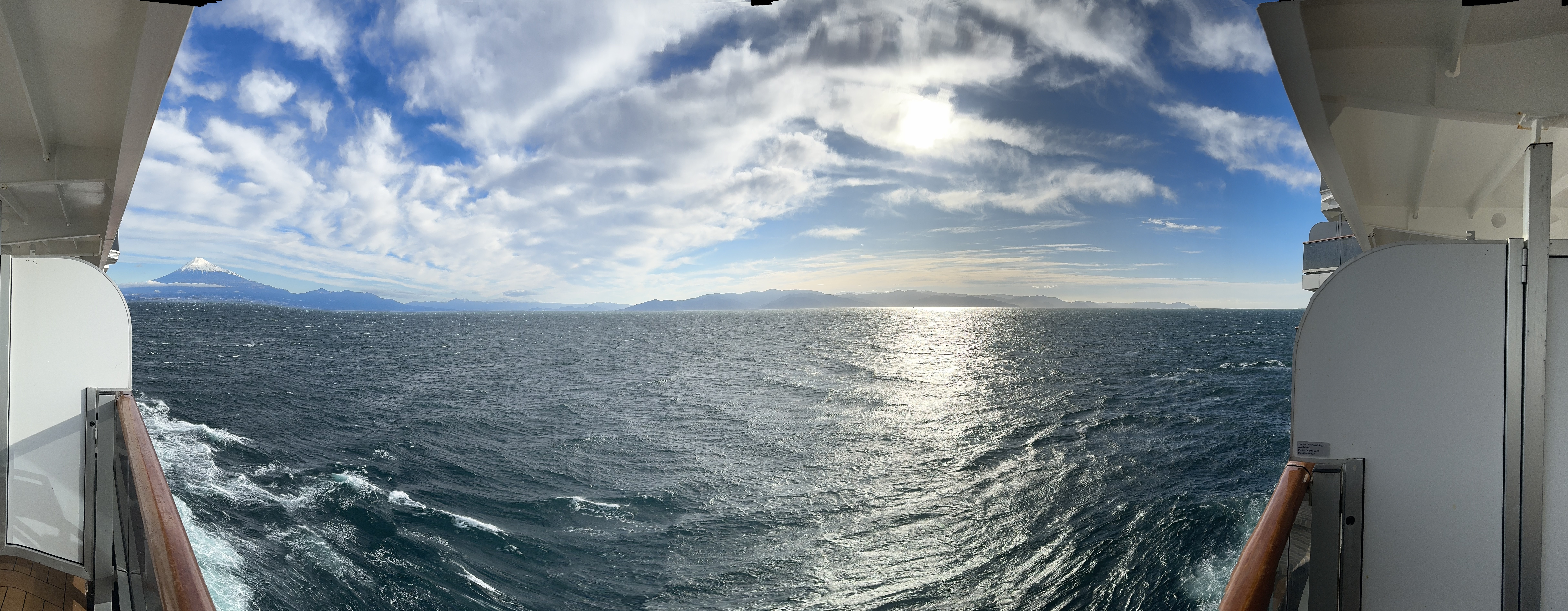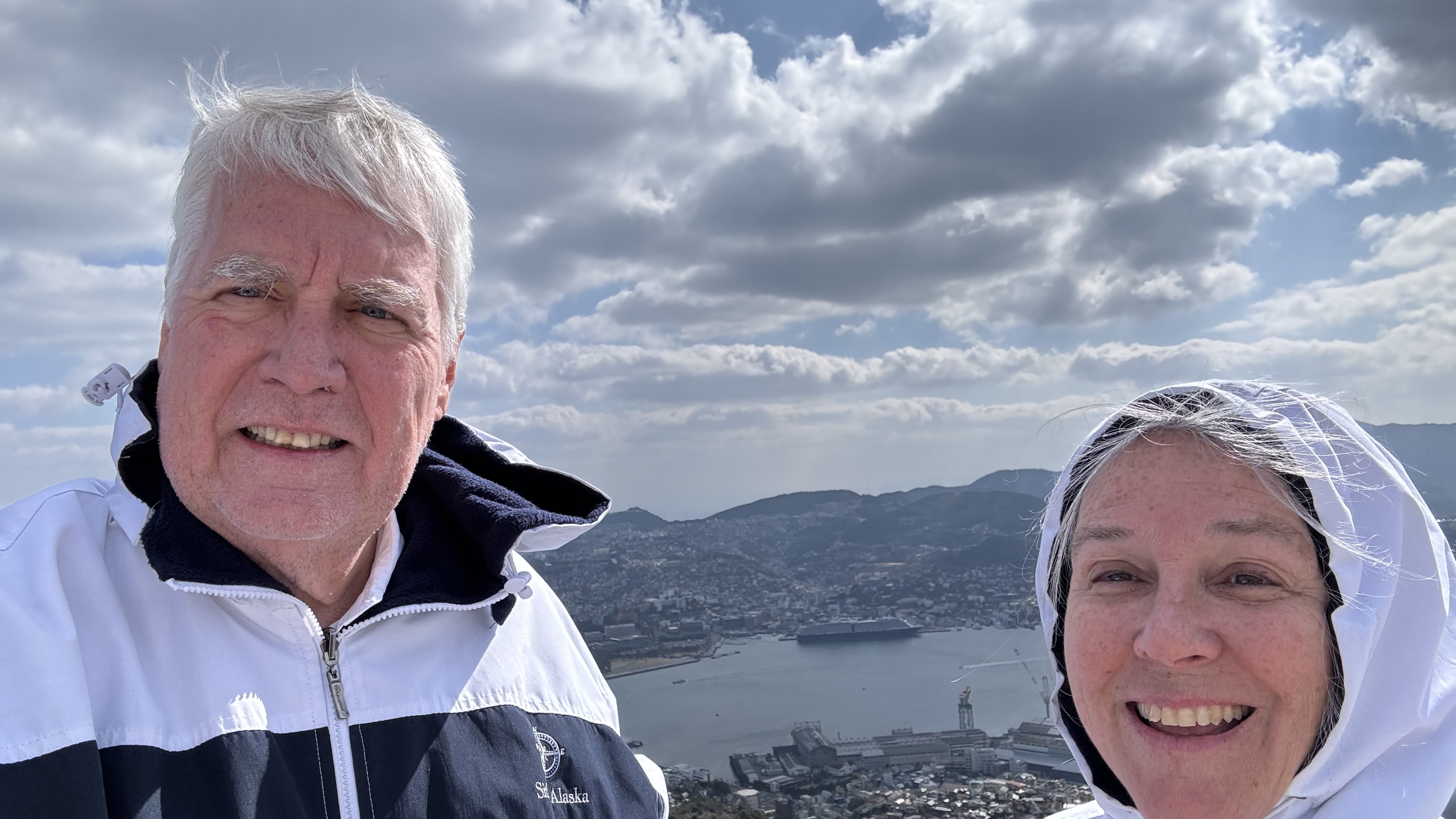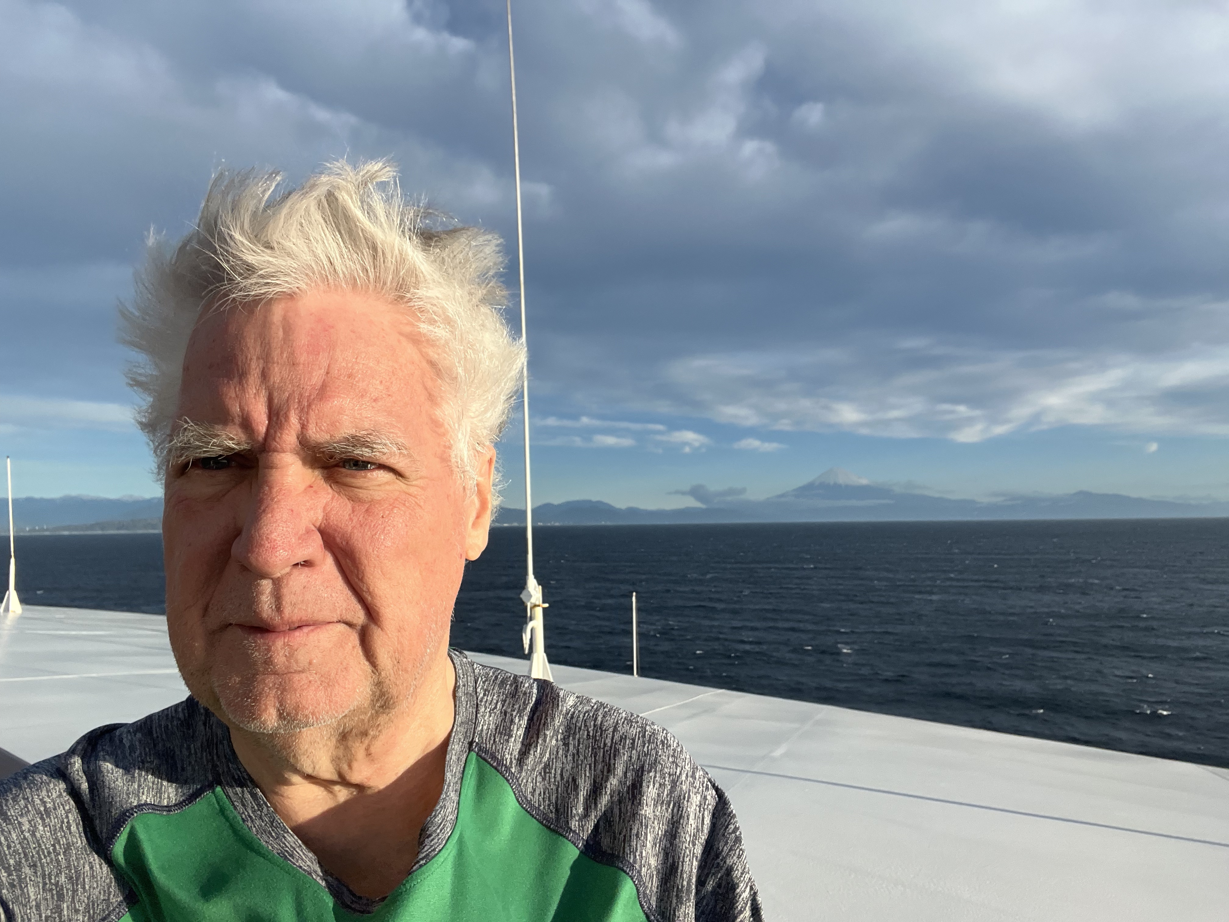 Today (February 16, 2024) we stopped in Shimizu, Japan. Nana and I took a break from excursions today and just stayed on the ship. The highlight of the day was seeing Mt. Fuji.  We were told it was very very rare to see the top. Some gorgeous views. It was very windy and cold as you can see from the photos.  Later in the day you can see it started to cloud over.