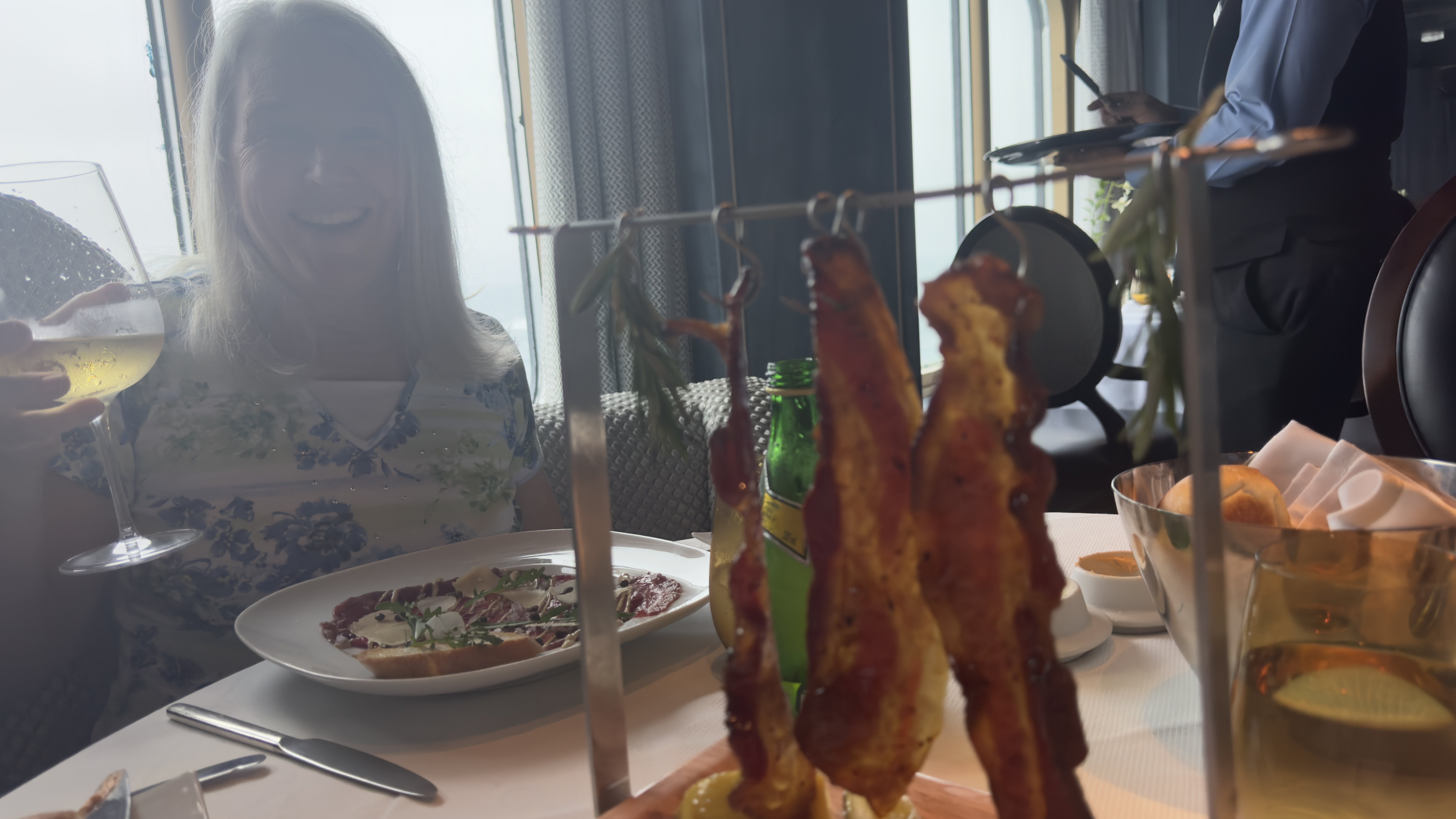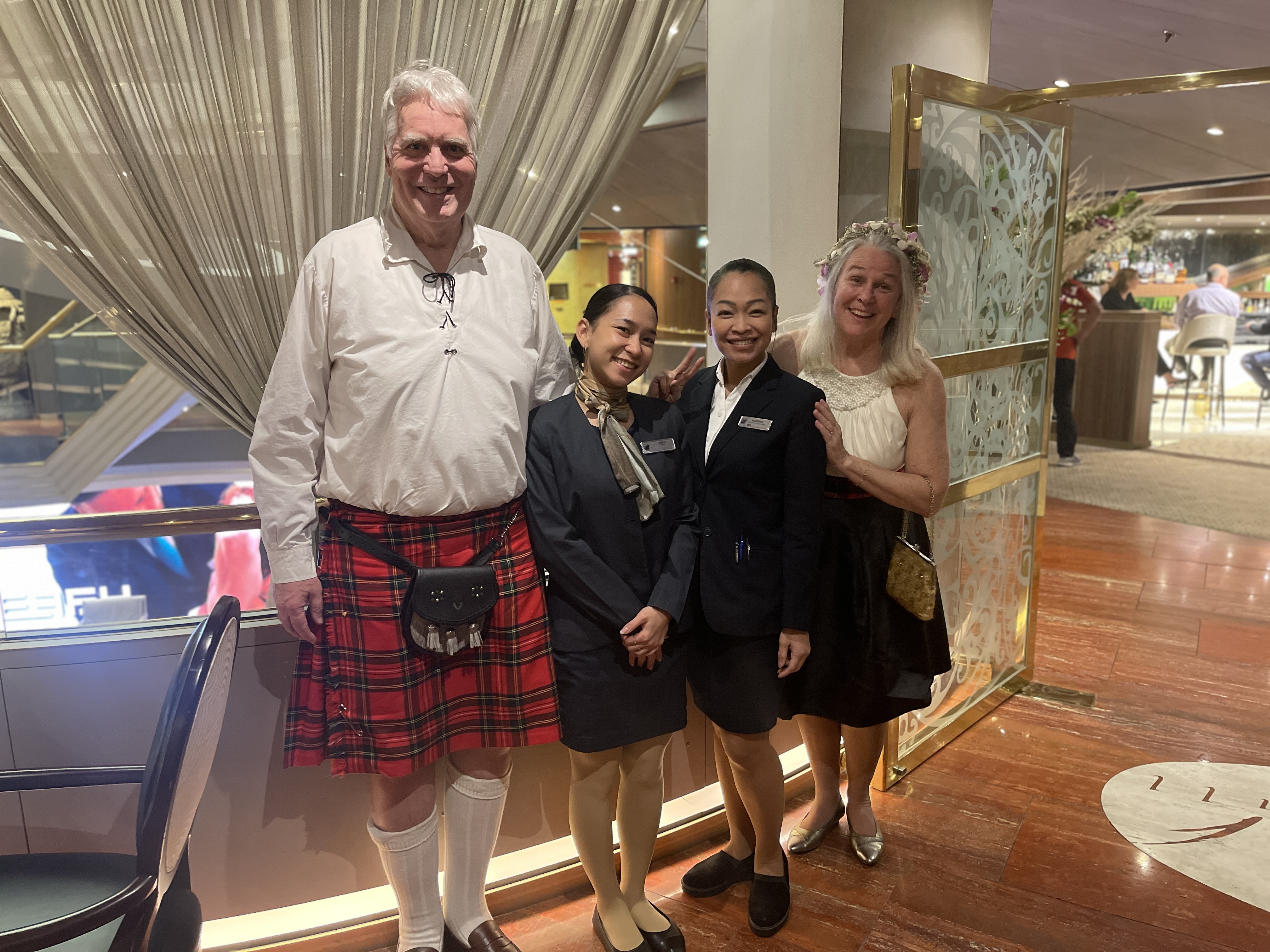 We finished up day getting dressed up for dinner at the Pinnacle Grill. Nana loves here man in a kilt ! Papa sampled their famous candied bacon appetizer. Everywhere we go the crew wants to take our picture with them.