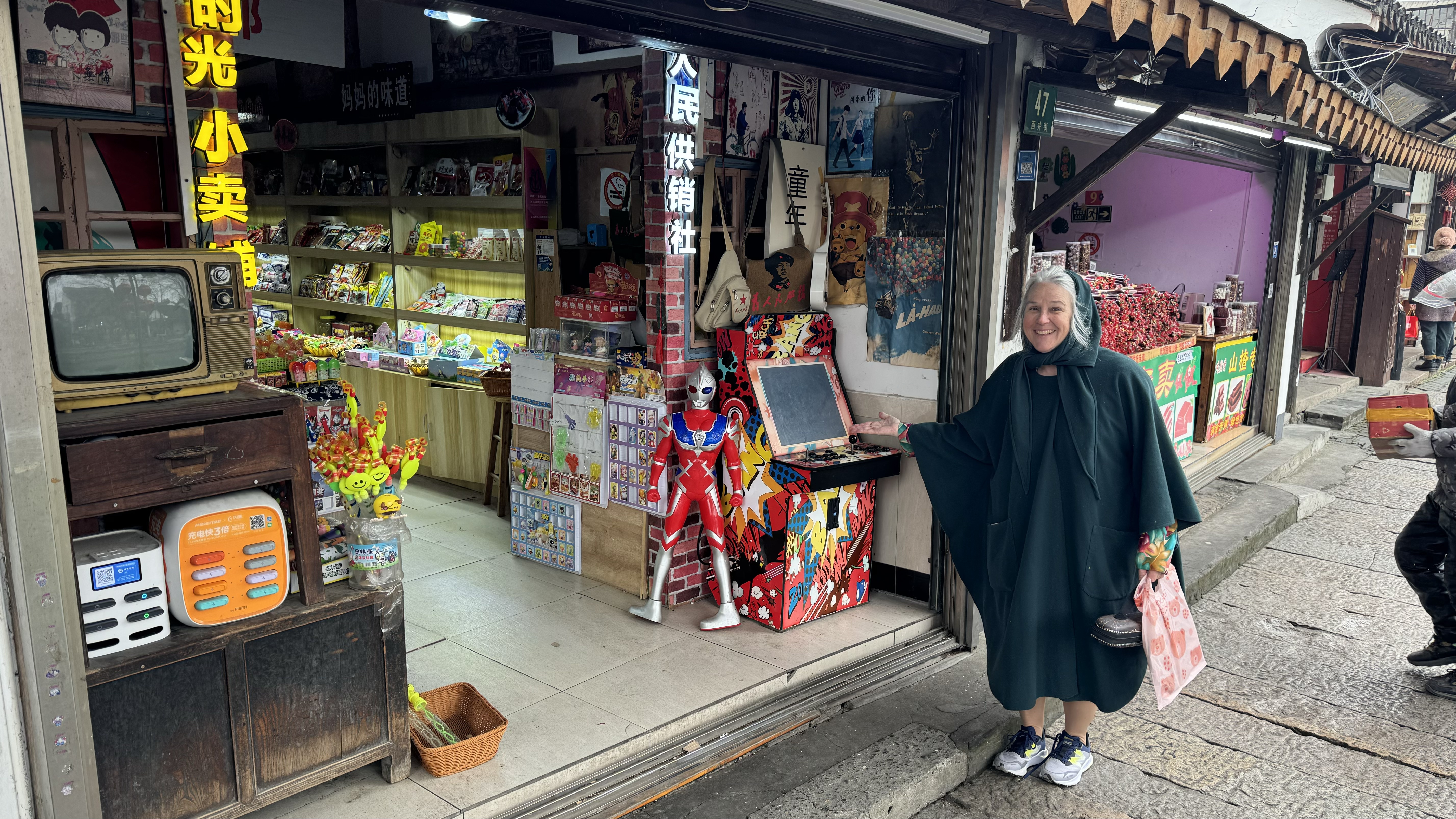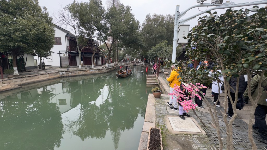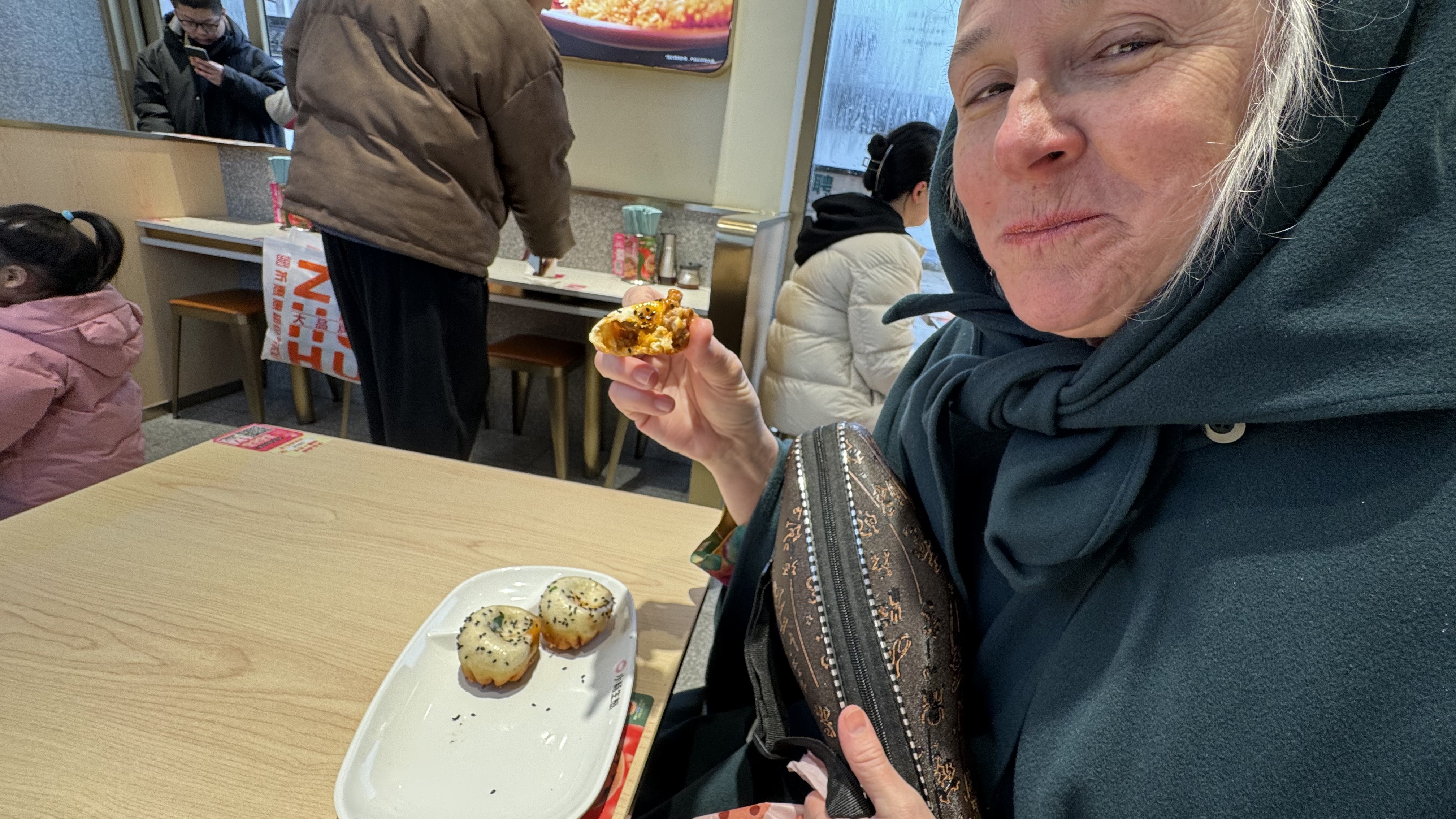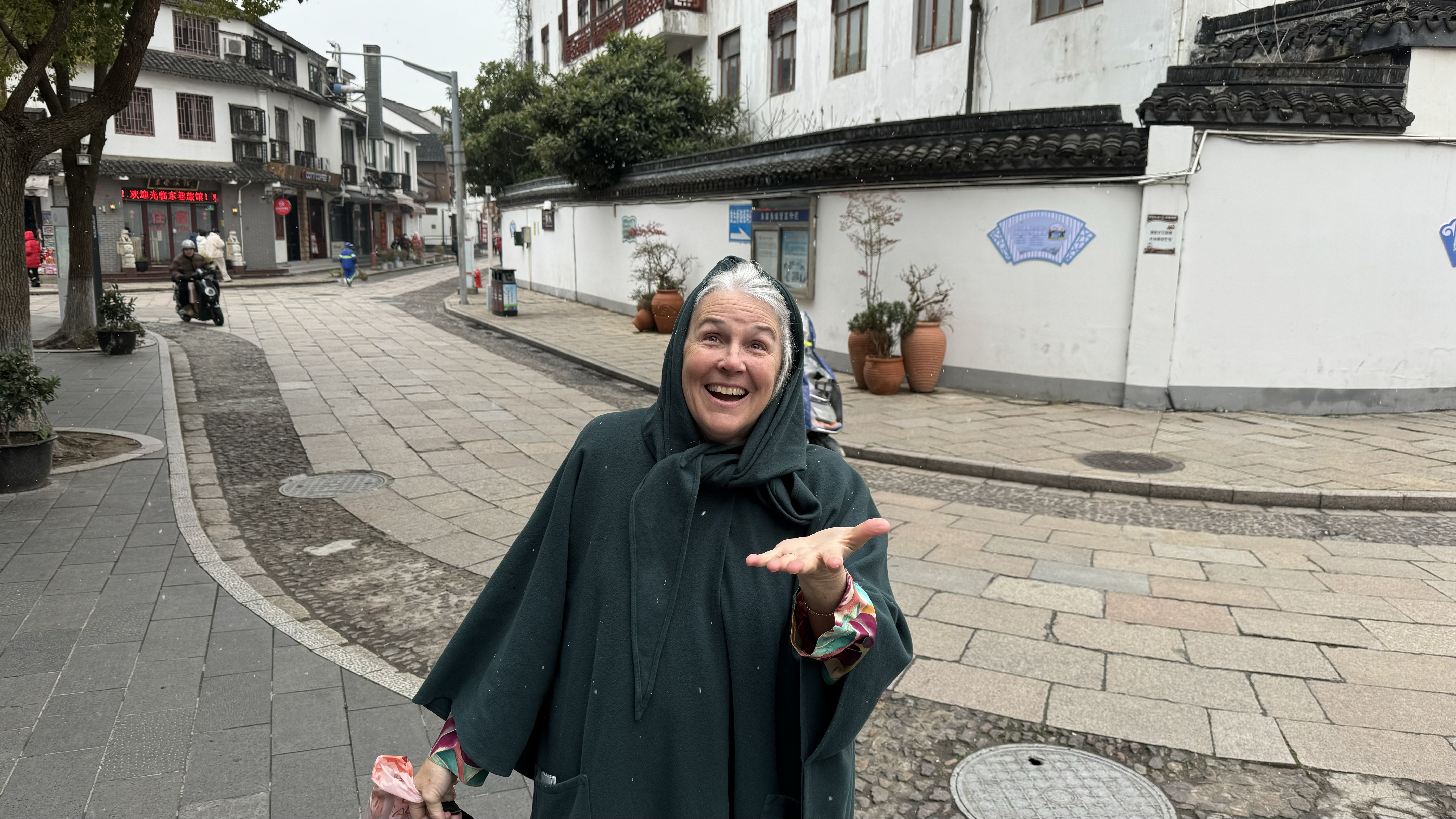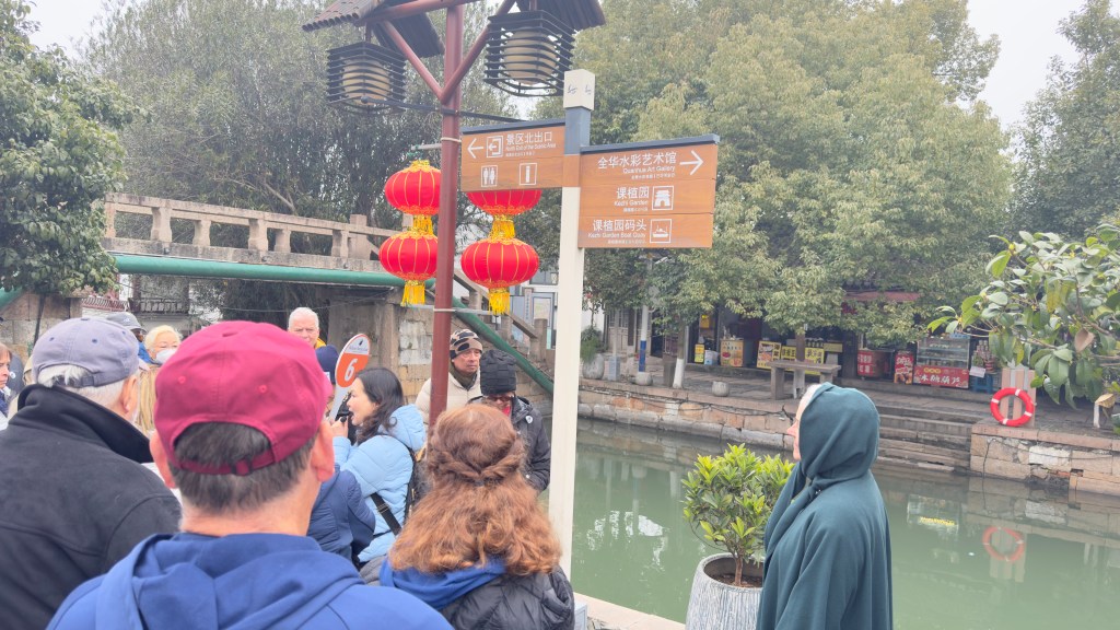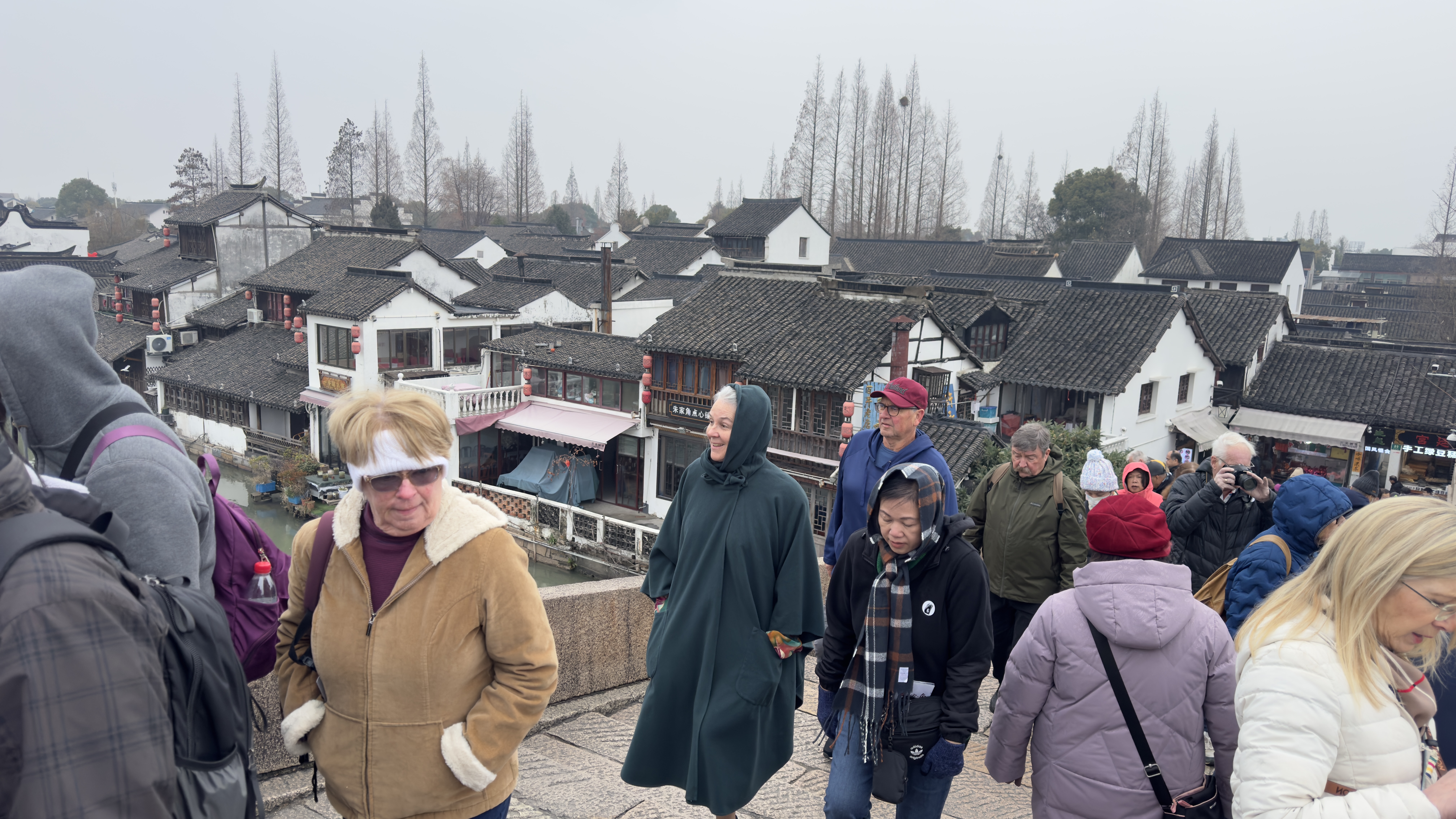 Today our excursion was to Watertown. Watertown is a 500 year old community build around canals like  Venice. Small passageways with many businesses. There were many food stands with all types foods, deserts , and dishes that I didn’t know.  It actually snowed while we were walking around and Nana tried to catch some with her hand. We went to a local store for some dumplings which were fantastic. We found a little boy dressed up as a dragon just playing in the street. Nana found a store with lot’s of action figures which the grandchildren would have loved to explore.