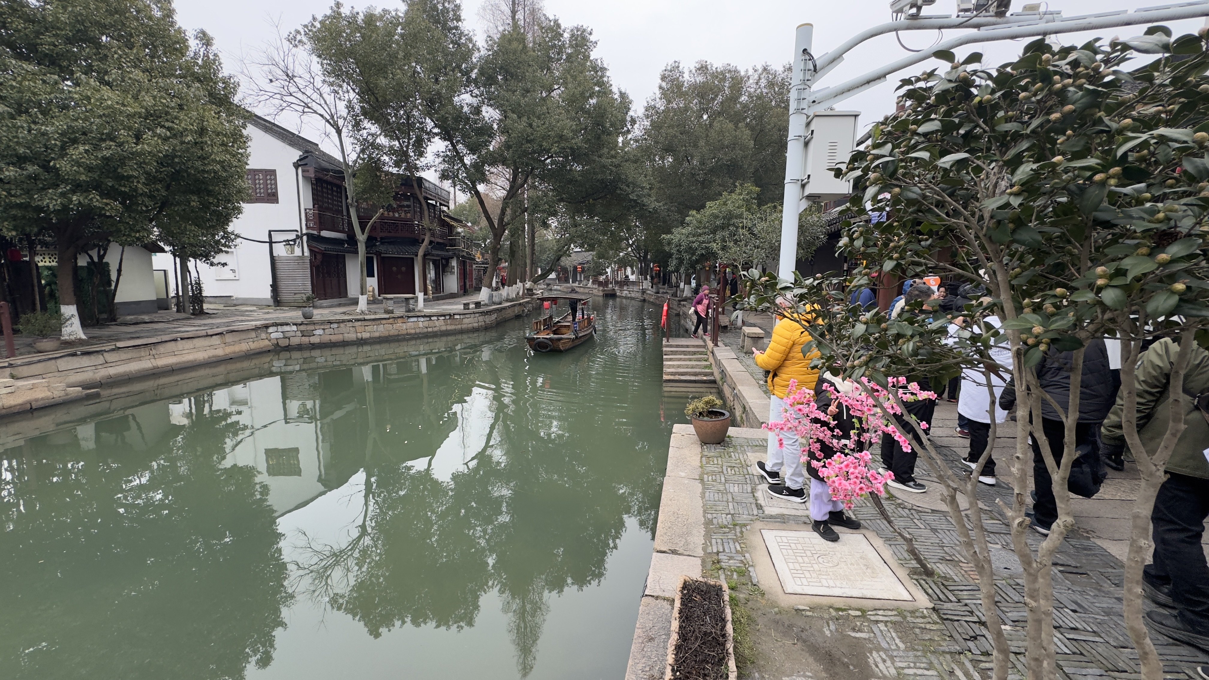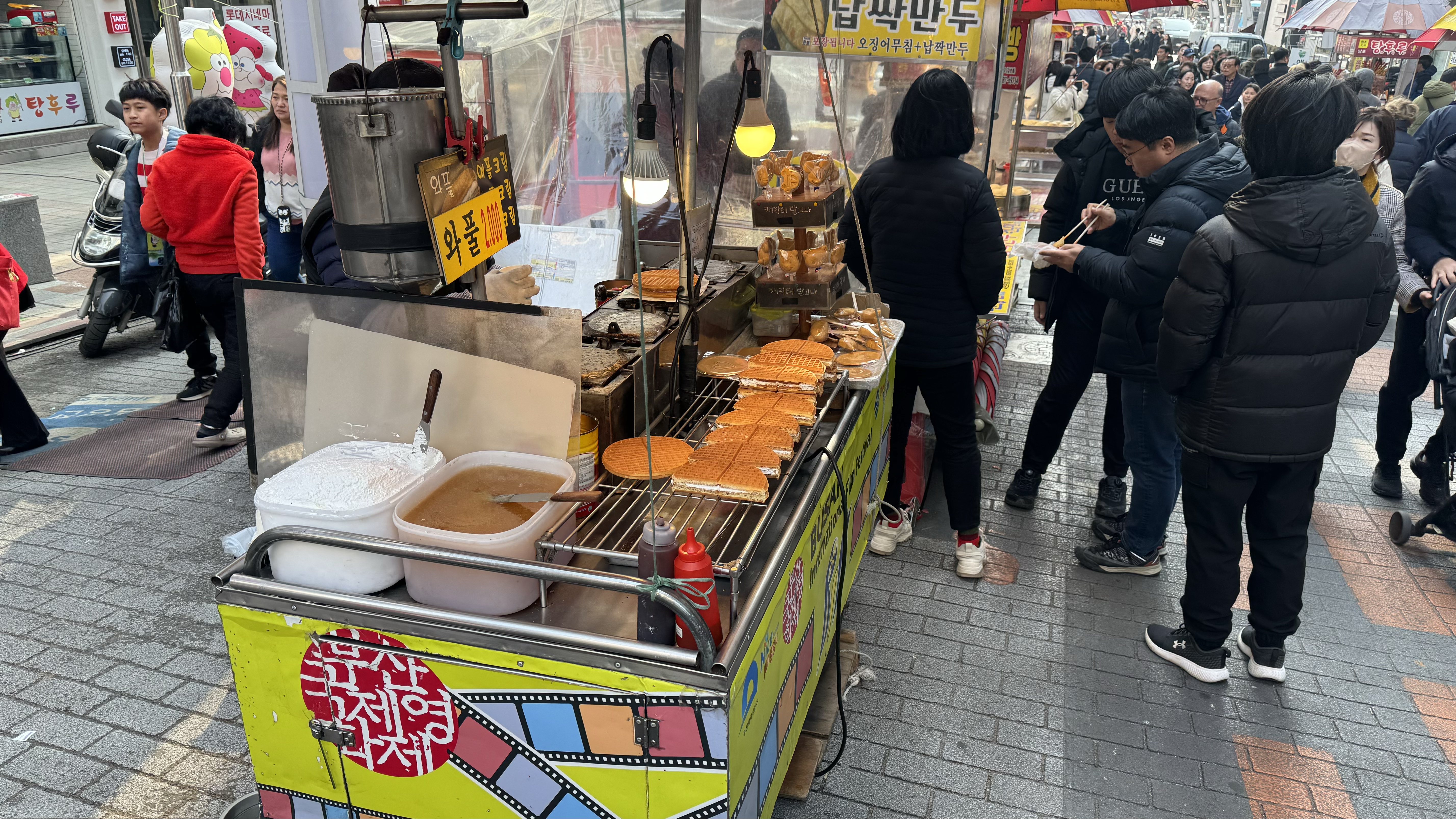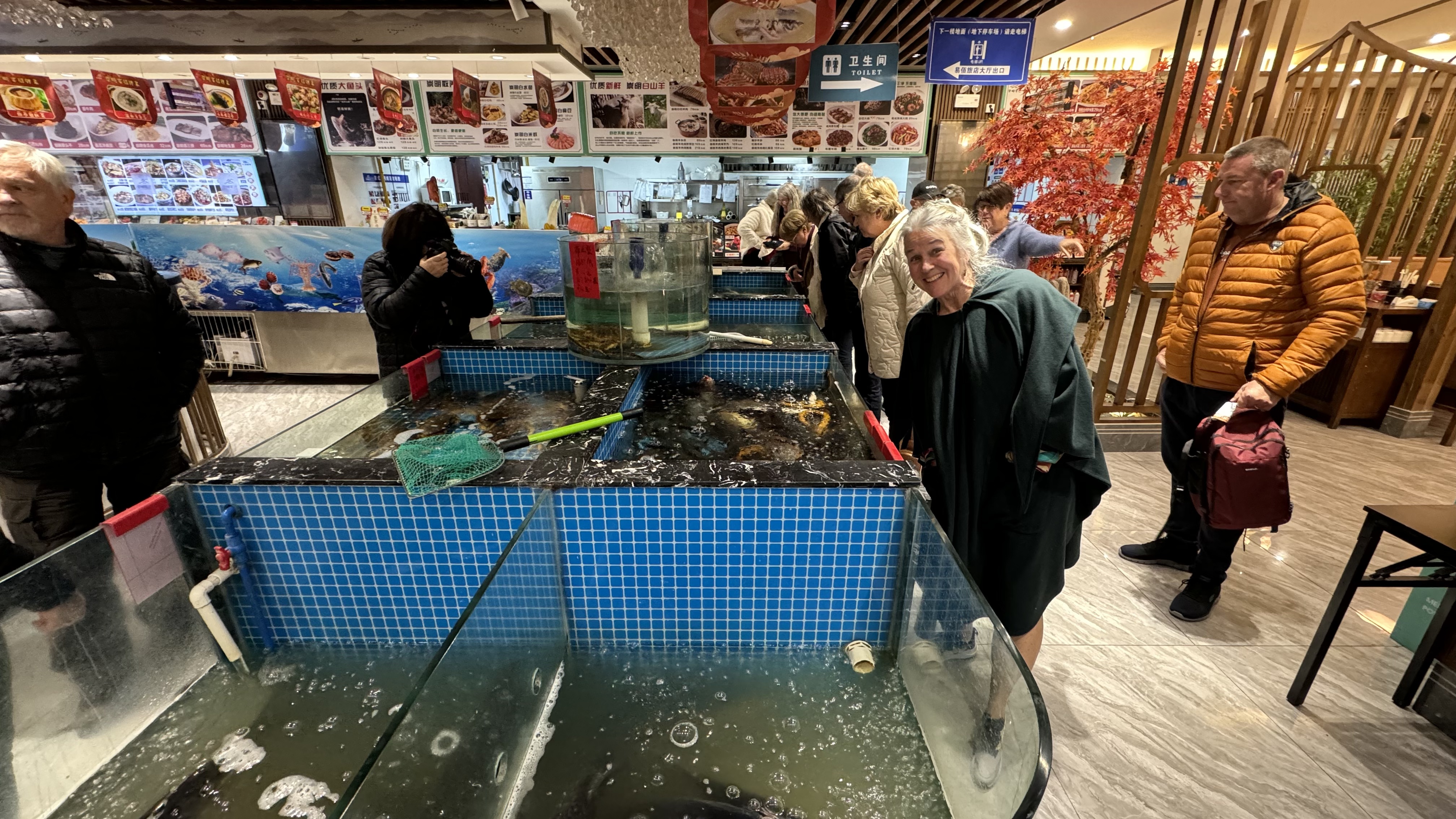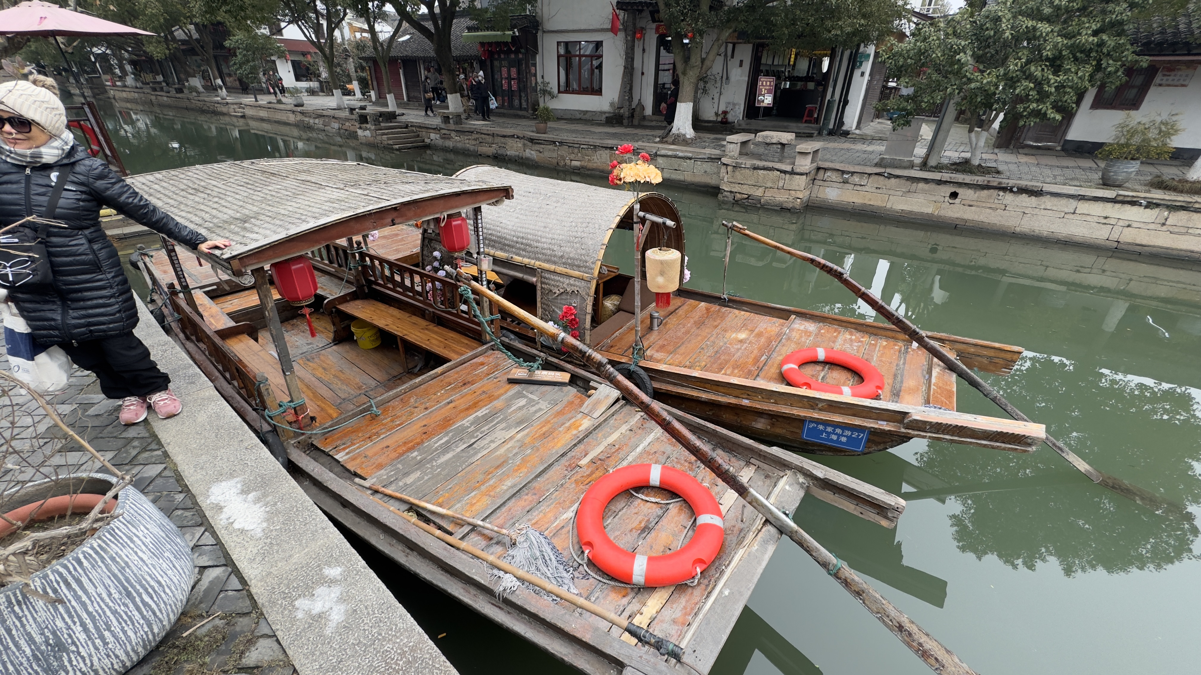 Today our excursion was to Watertown. Watertown is a 500 year old community build around canals like  Venice. Small passageways with many businesses. There were many food stands with all types foods, deserts , and dishes that I didn’t know.  It actually snowed while we were walking around and Nana tried to catch some with her hand. We went to a local store for some dumplings which were fantastic. We found a little boy dressed up as a dragon just playing in the street. Nana found a store with lot’s of action figures which the grandchildren would have loved to explore.