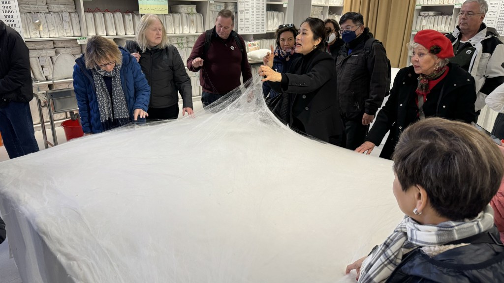Last stop was the silk factory. We learned how silk is made by the silkworms and then woven into bedspreads, shirts and pajamas.