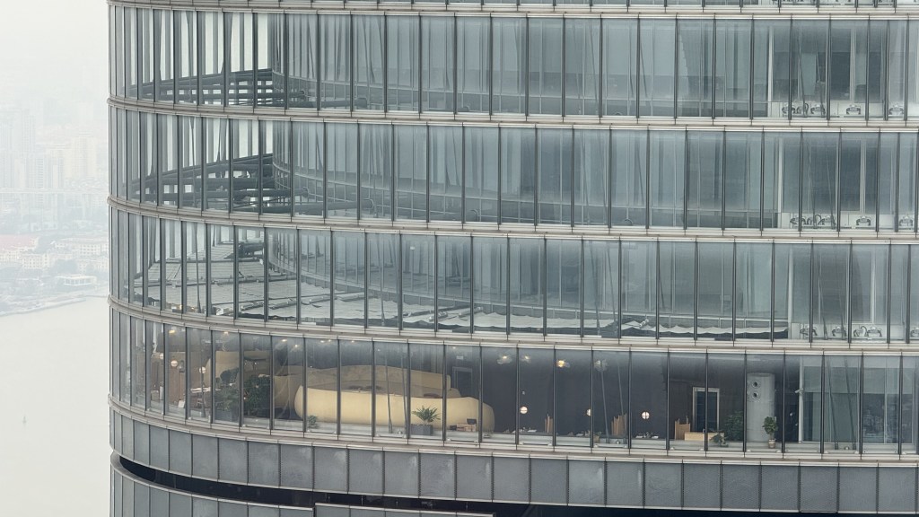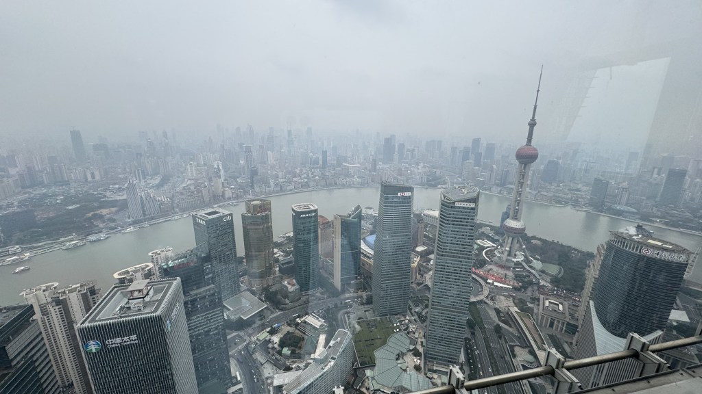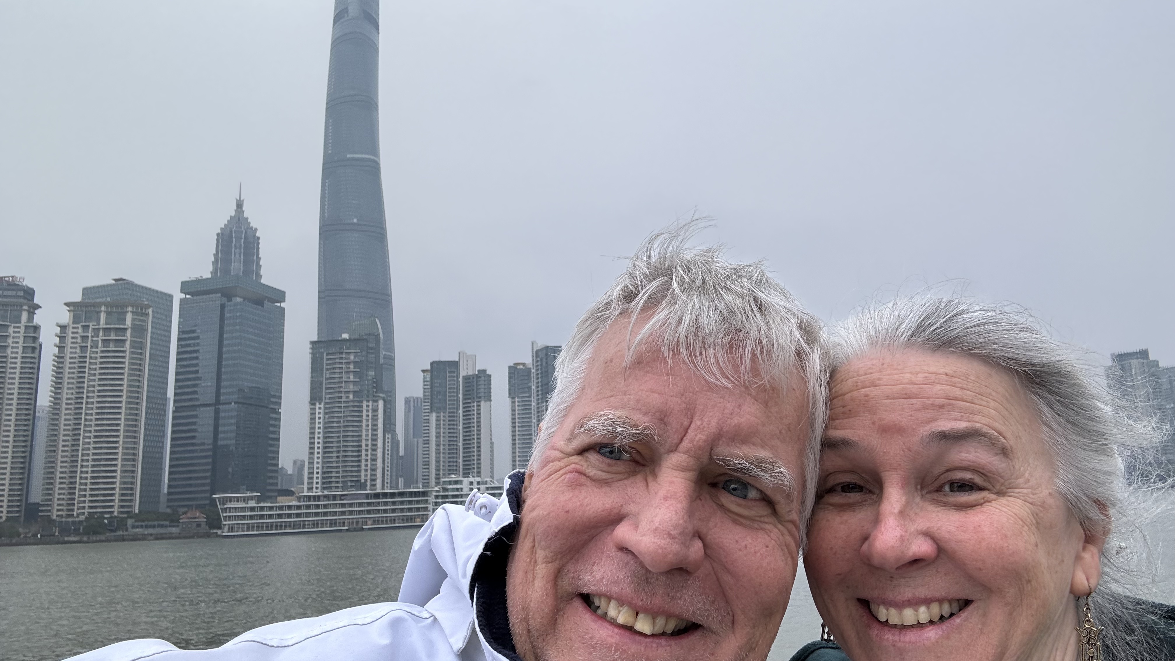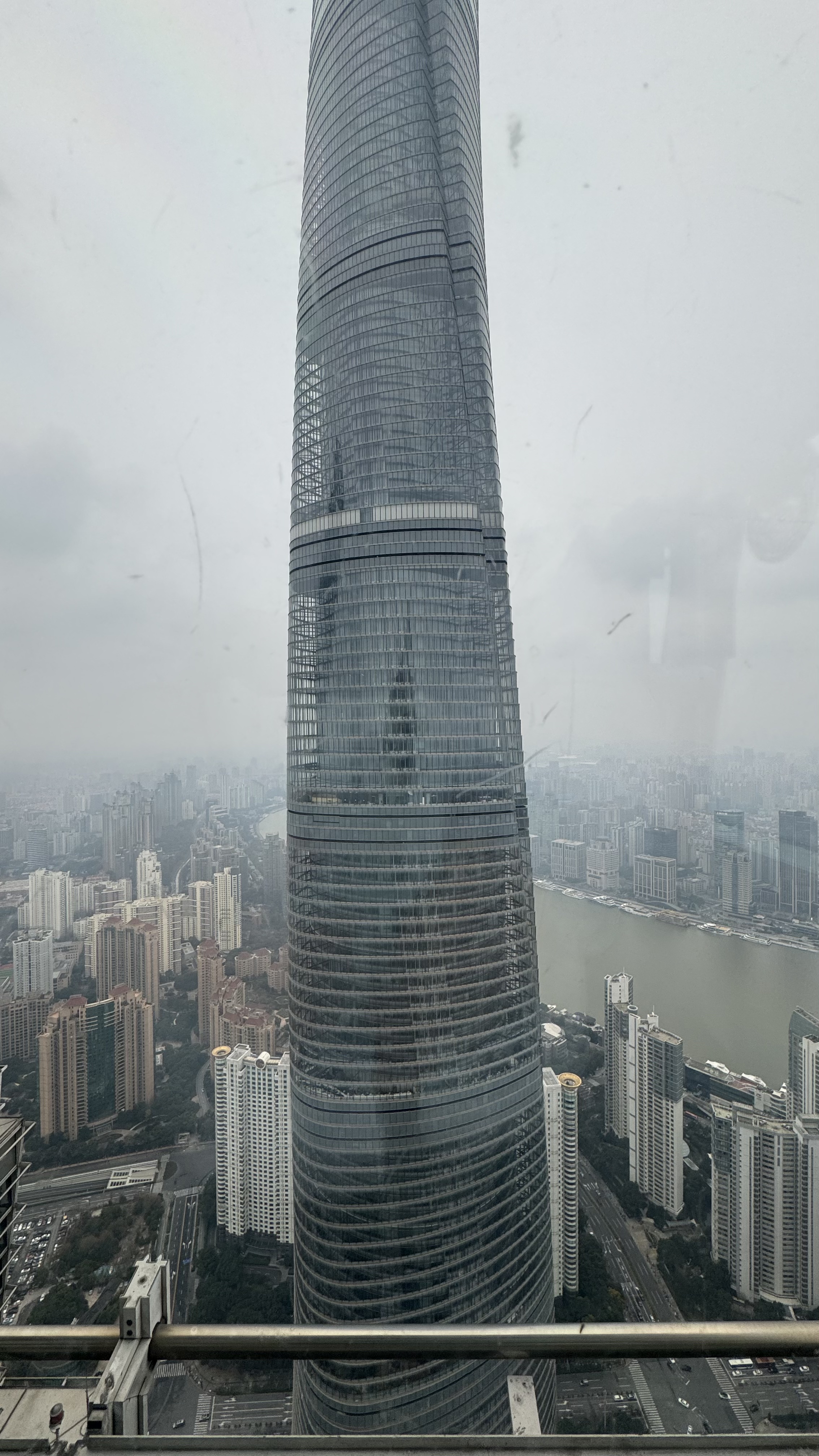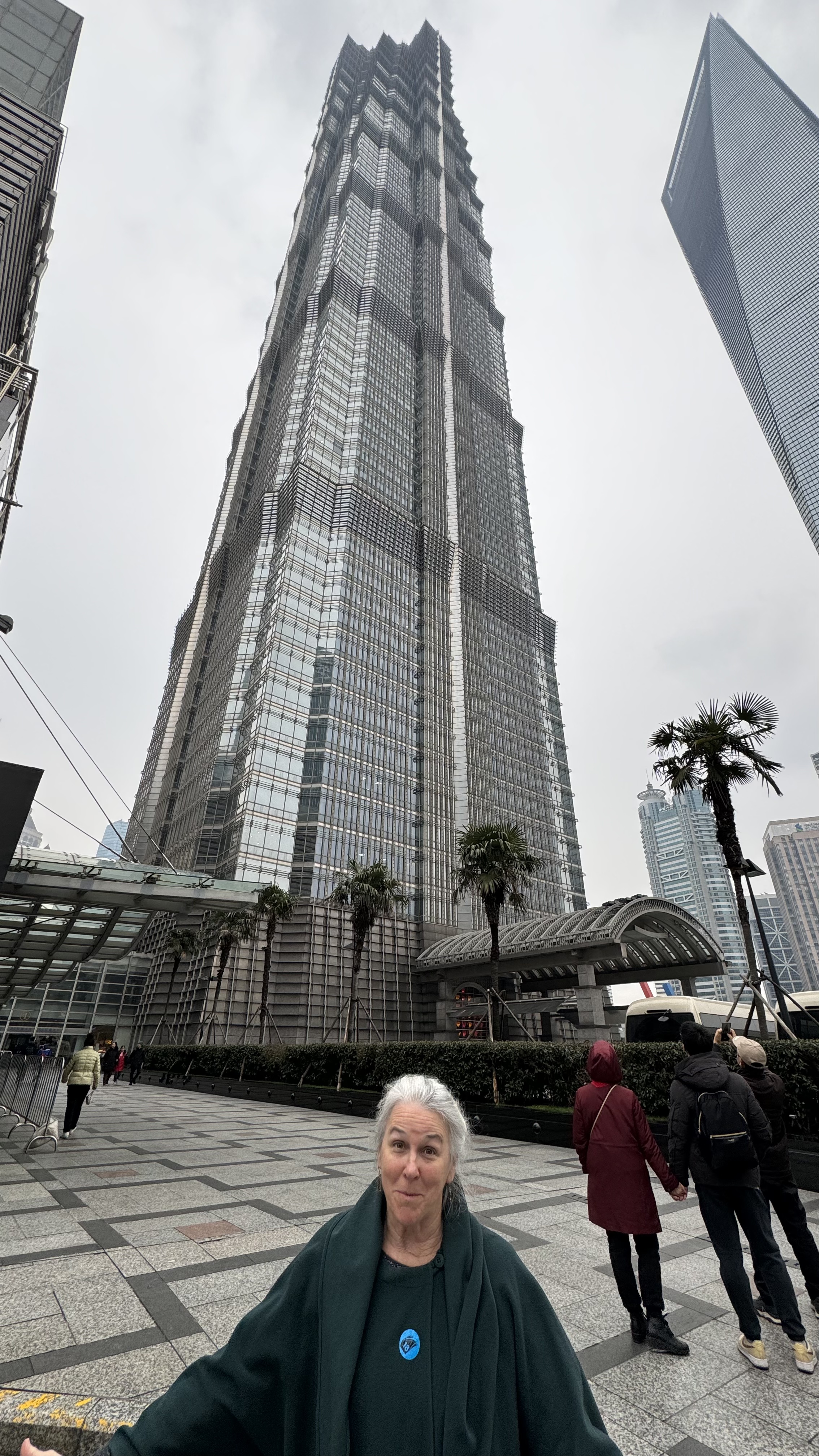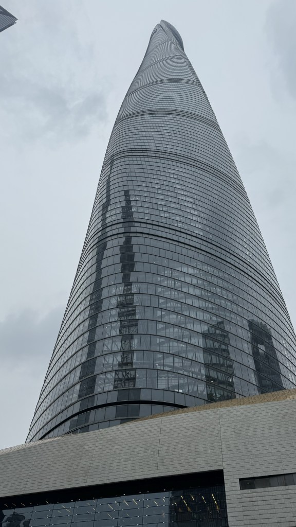 Our guide talked a lot about the trials that the Chinese people endured during covid. China implemented a zero covid policy and Shanghai was under quarantine for over 3 months in the 4 years of covid for China. This meant that nobody was allowed to leave their apartment except for certain people that were allowed to deliver food. I cannot imagine being not allowed to leave a small apartment for 3 months. Our tour guide (50 years old) had only been in the tourist industry here entire life so nothing happened in China for almost 4 years. She was so happy to be on a tour with us. Next stop is a very high building in Shanghai with views of the city.  Shanghai is expansive and very modern. We saw some very interesting high rises (not the building that has an odd shape but the core is same and there are varying sizes of windows around the building to give it the interesting look.