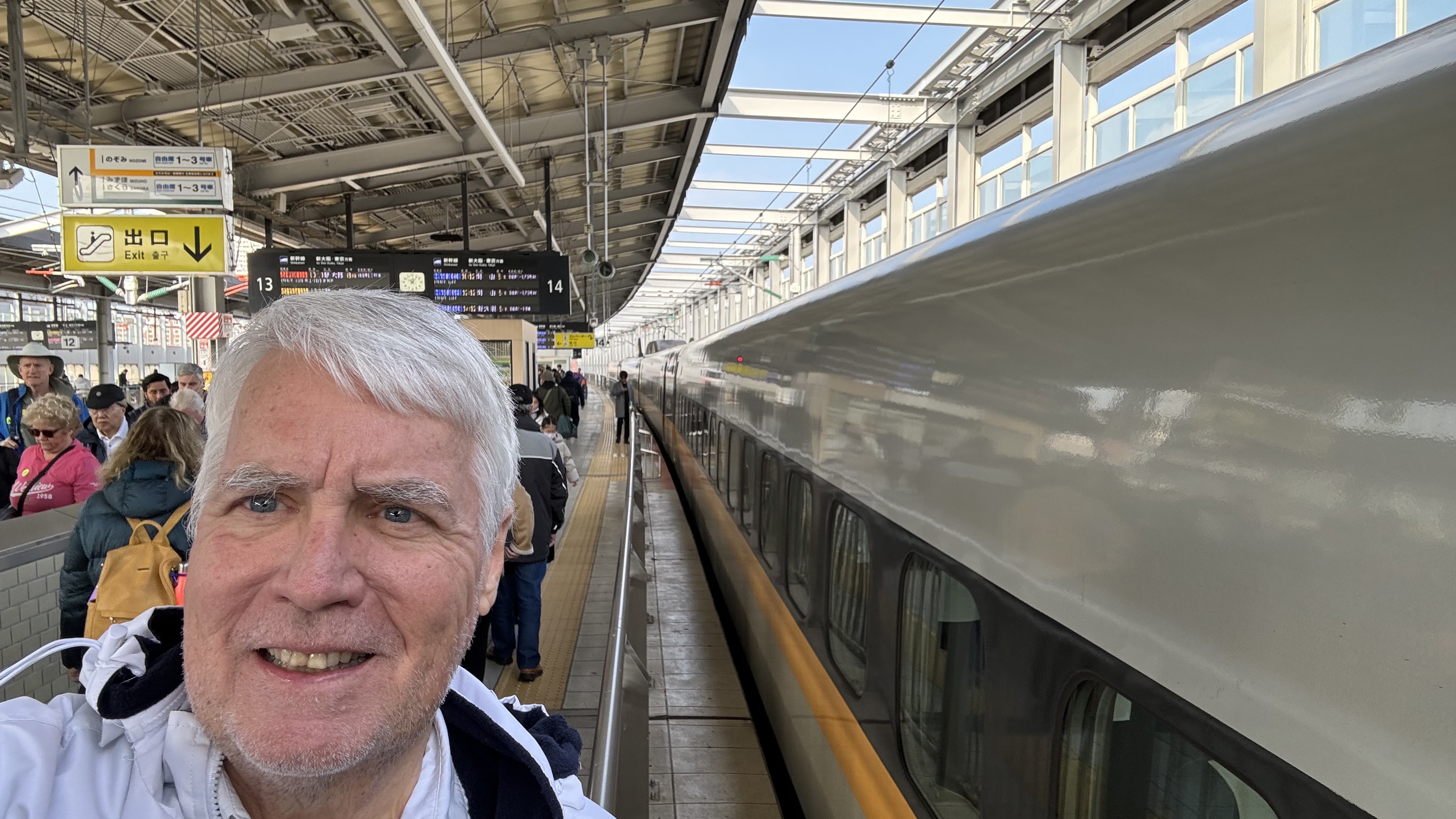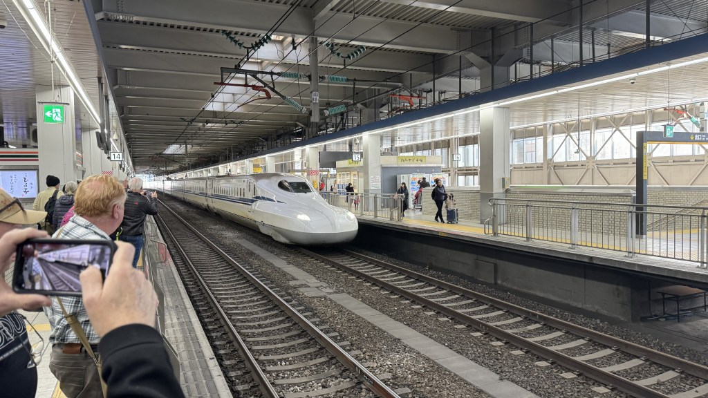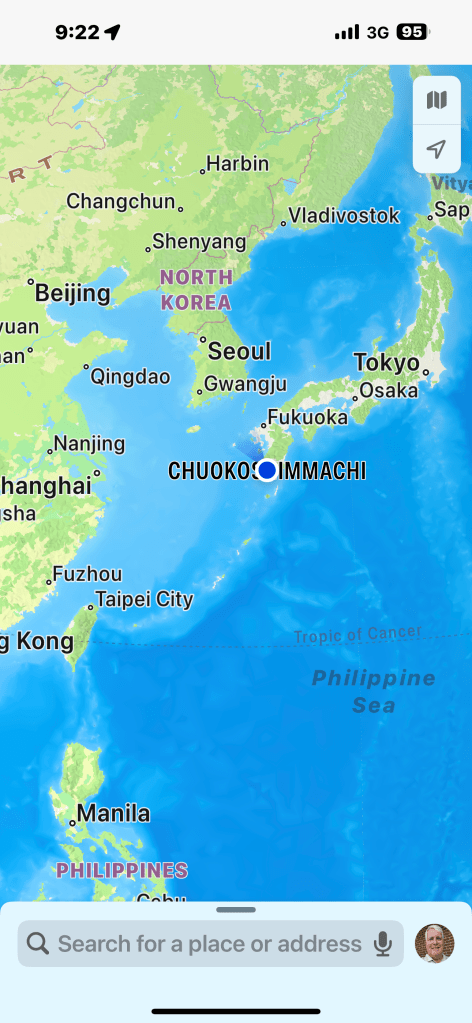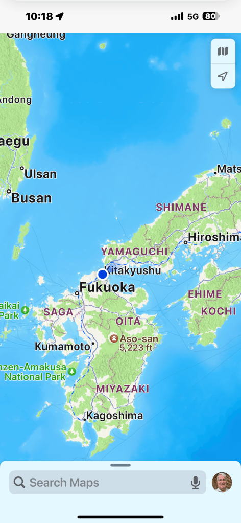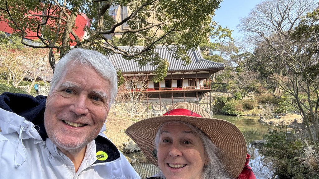 Today another train ride, the infamous Japanese Bullet Train.   We boarded in Fukuoka, Japan where our ship docked. The bullet train runs on rails and we achieved 125 mph and our trip took 25 minutes to Kitakyusha.  Very smooth and fast ride. Nana almost didn’t come because she wanted to watch the Super Bowl. The ship though wasn’t planning on broadcasting the game but at the last minute figured out how to do it. By then Nana had already committed to going with Papa. Papa promised to work on getting it streamed on his iPad which he was able to do. Nana watched the game even on the train and walking around.  She watched the game all the way through the overtime win for the Chiefs.