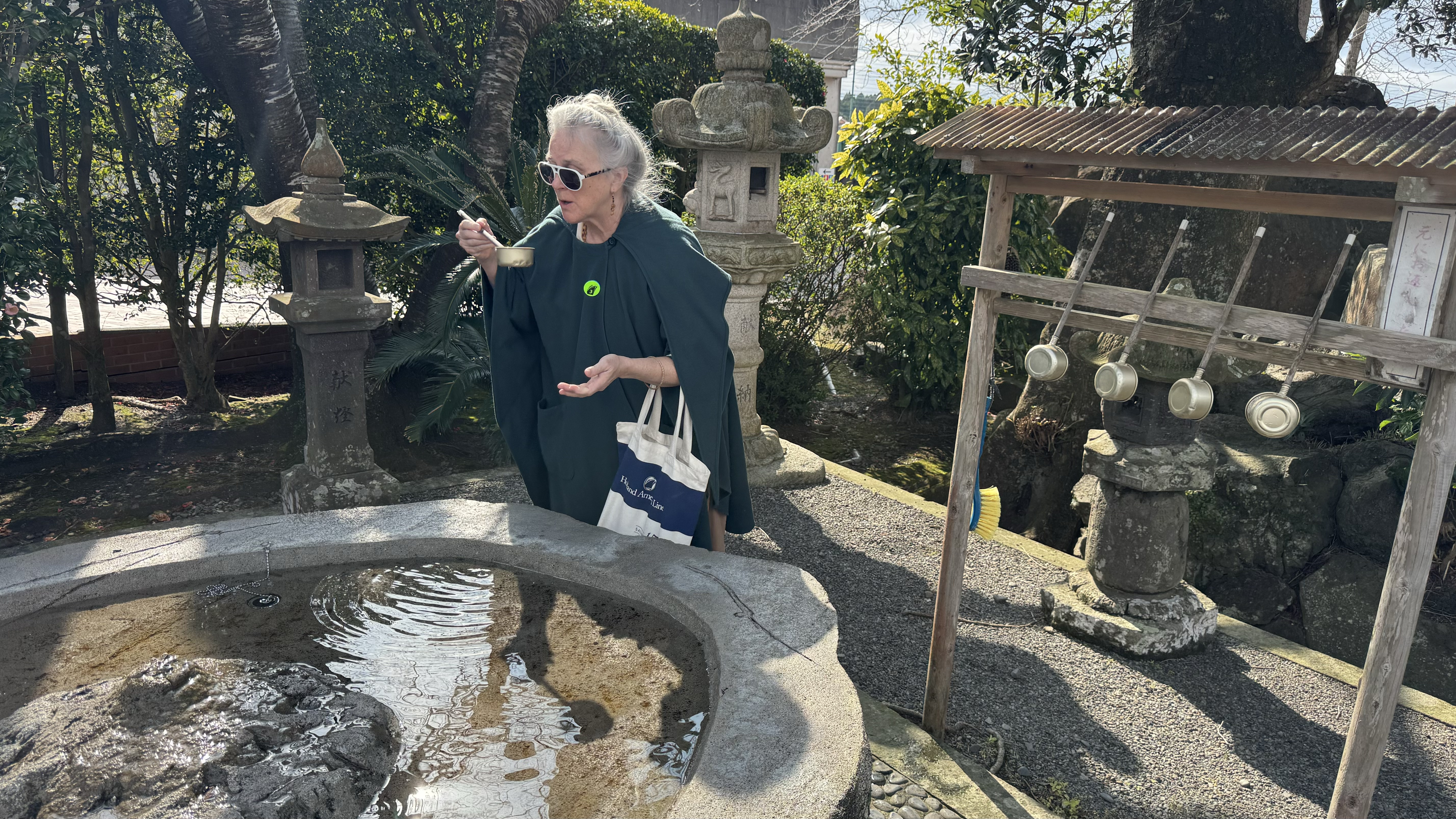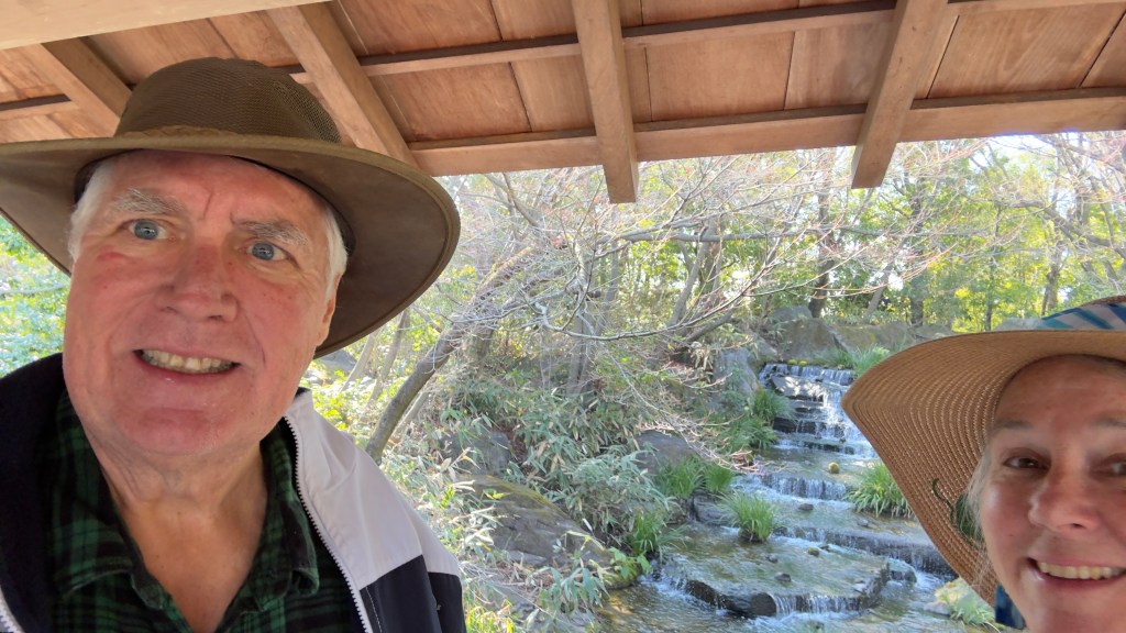 Our excursion today took us to the Kamikaze Museum that honored the pilots who were suicide pilot bombers. A tragic story at the end of WWII when Japan was desperate, running out of fuel and mistakenly thought this would deter the Americans. There were over 1,000 Kamikaze pilots from this area and 90% of them crashed into the sea without hitting a target, The others hit their target and all the pilots died. Nana is cleansing herself of evil spirits before she prays. Papa is in front of the Jap Zero fighter that the kamikaze pilots used.