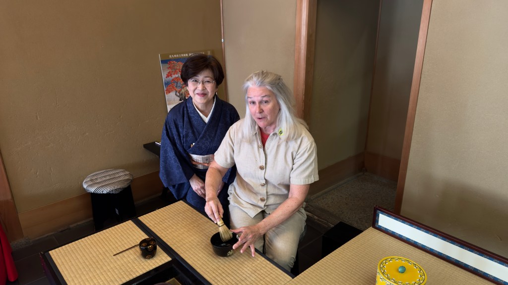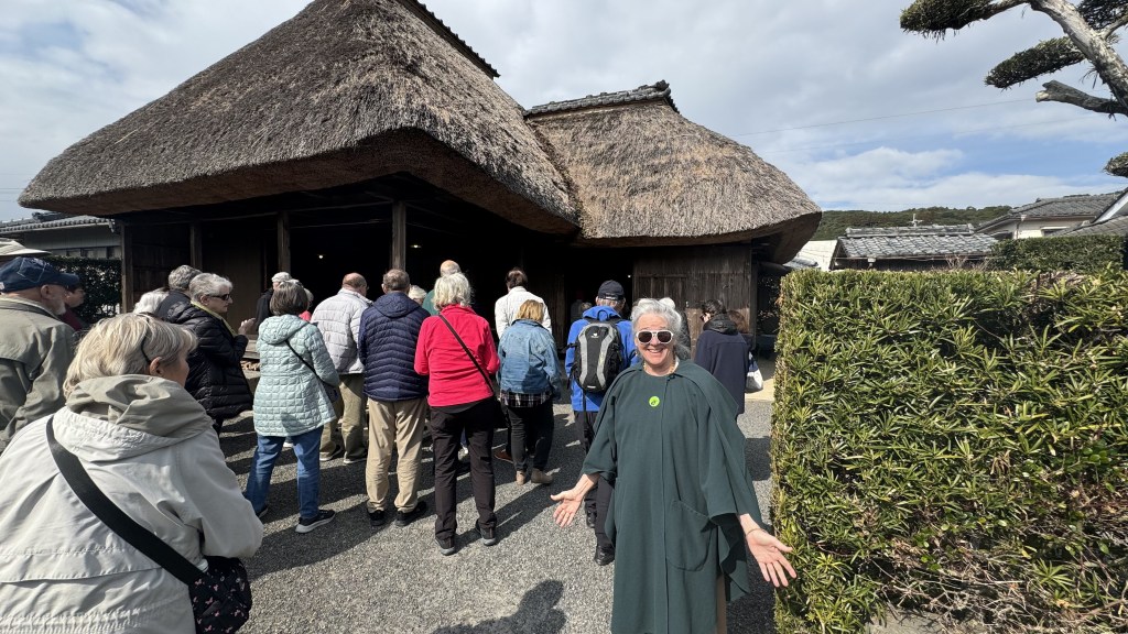 2nd stop was an historic Samurai village. We toured several Japanese gardens that were a part of every house  We also sampled some traditional Japanese green tea.   Nana brought back some special green tea for the grandchildren’s tea party if the they are willing to try.  The Samurai houses reminded me of the movie, The Last Samurai.  Our guide said the movie was historical correct but did not depict any one person. We will be watching this movie tonight, Nana has not seen it.  Nana also found some flowers that she wanted everyone to see.