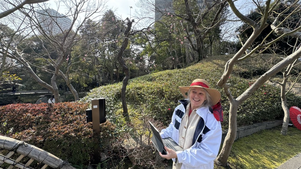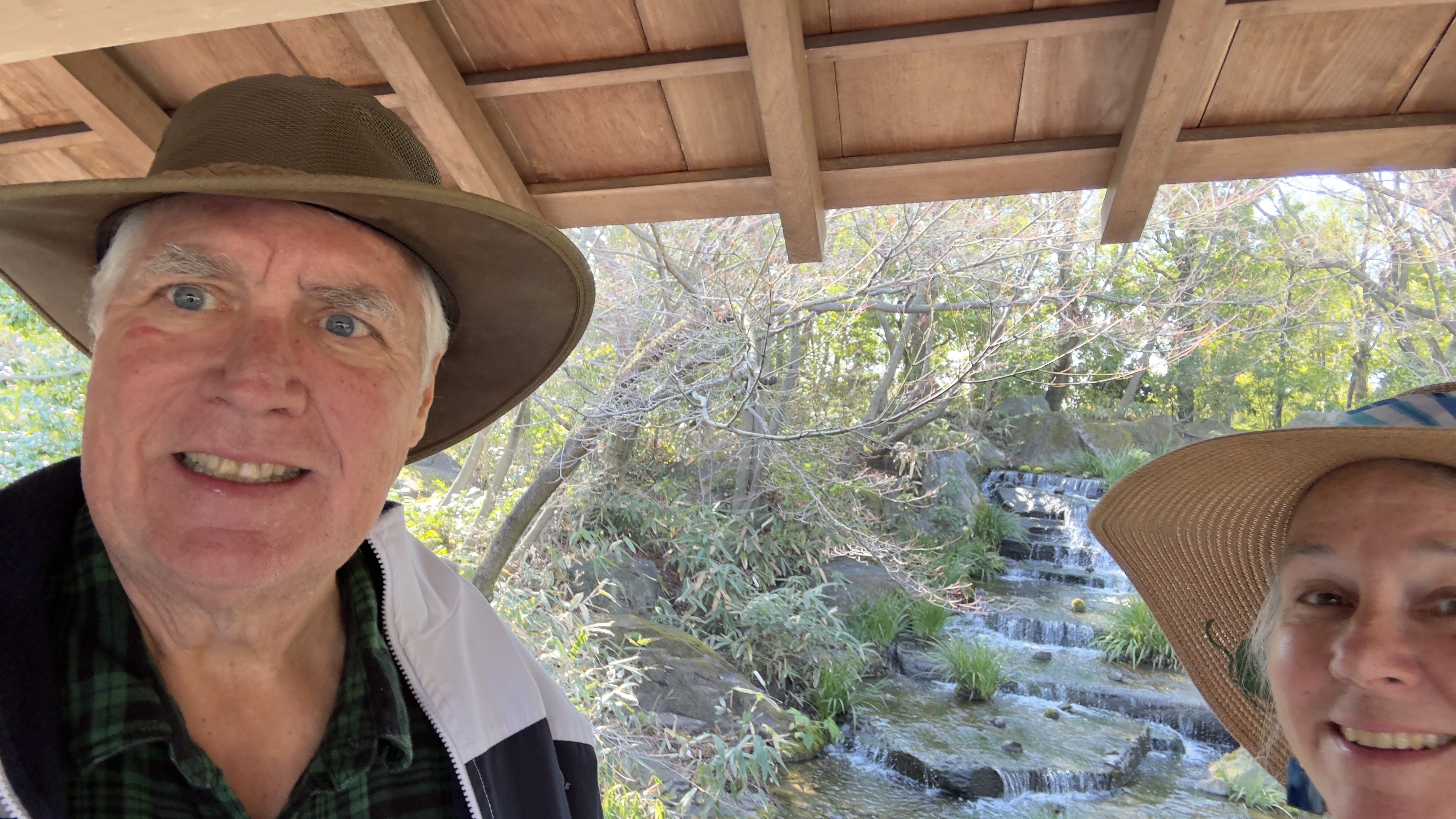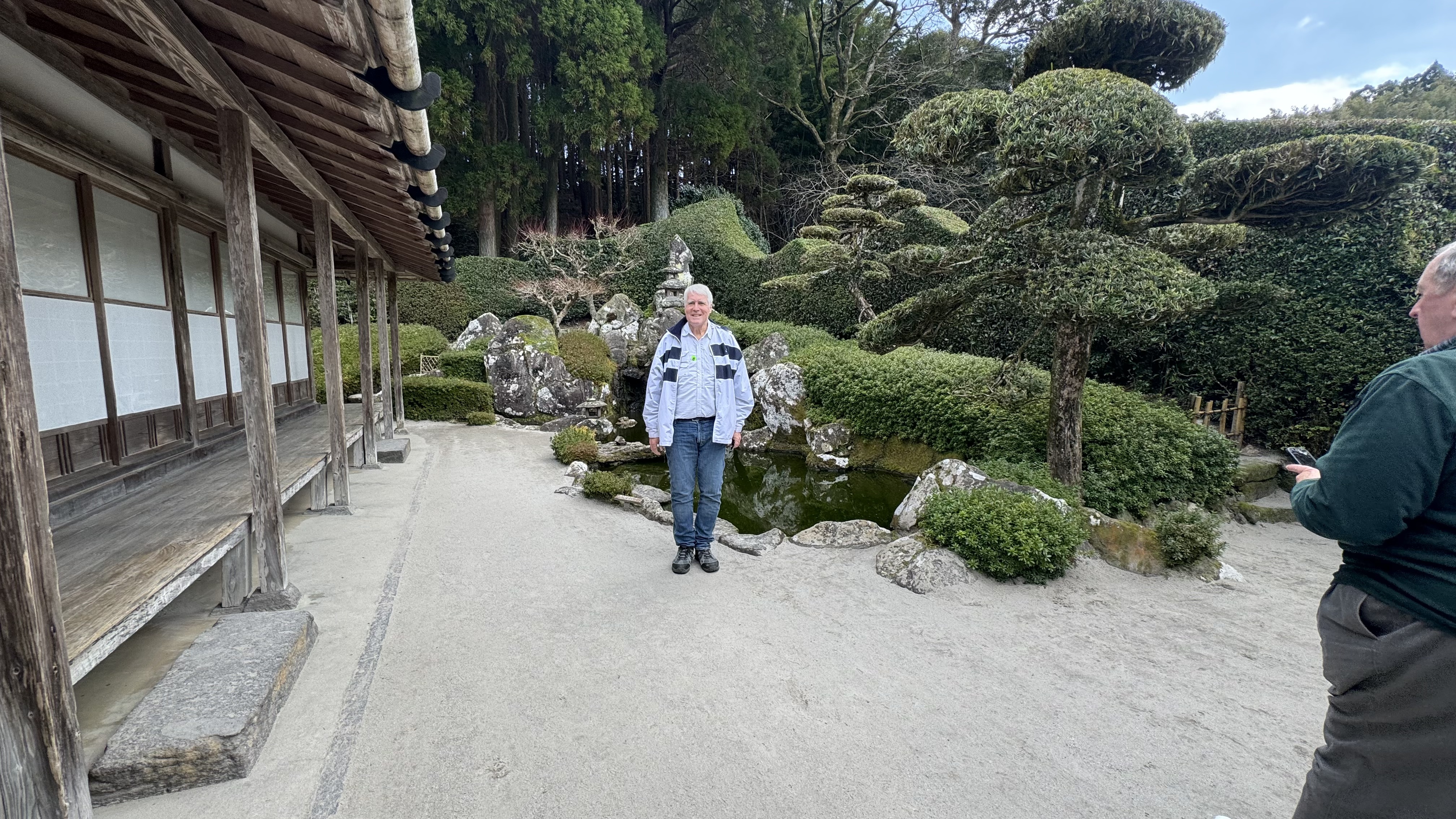 We next visited a traditional Japanese garden. Nana enjoyed walking around with iPad watching the game.