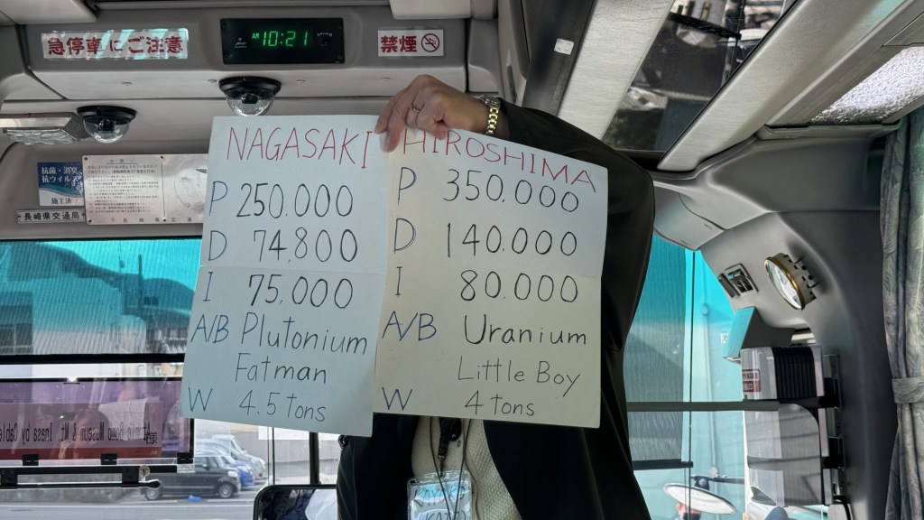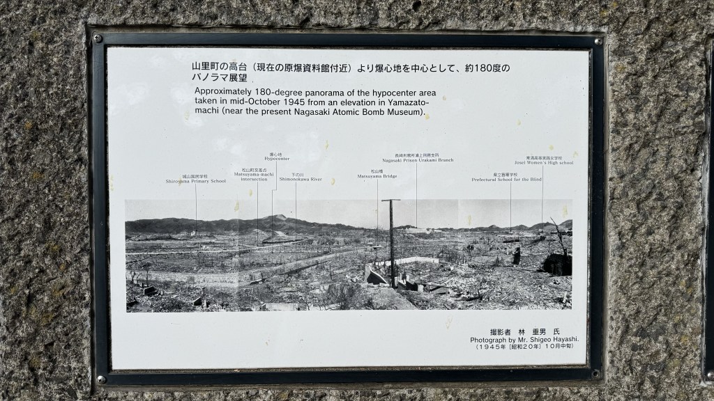 Then we visited the museum where learned what happened and how Nagasaki was selected. Another city was selected but due to overcast weather, the bomb was dropped on Nagasaki. A mockup of the bomb dropped was on display.