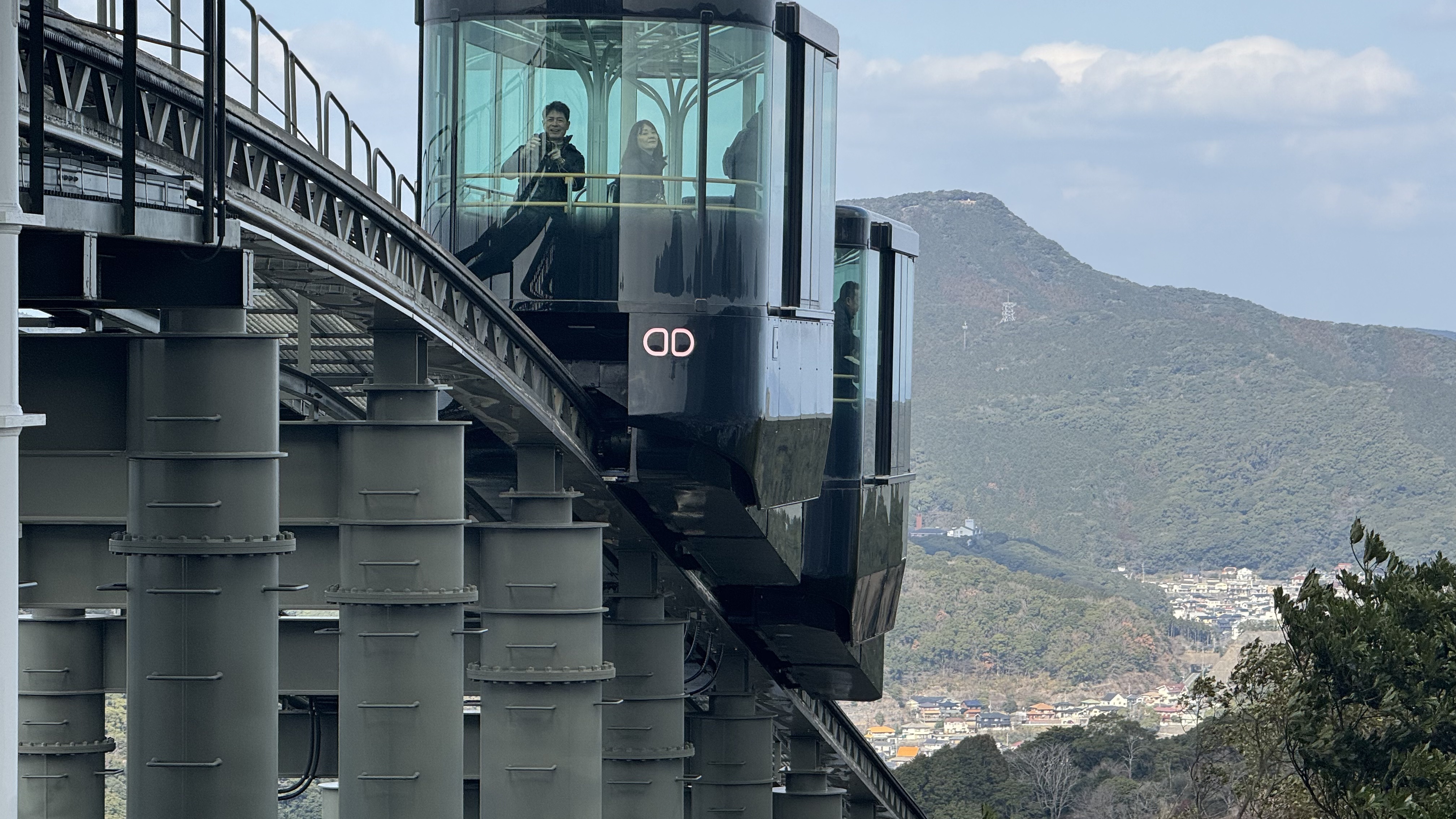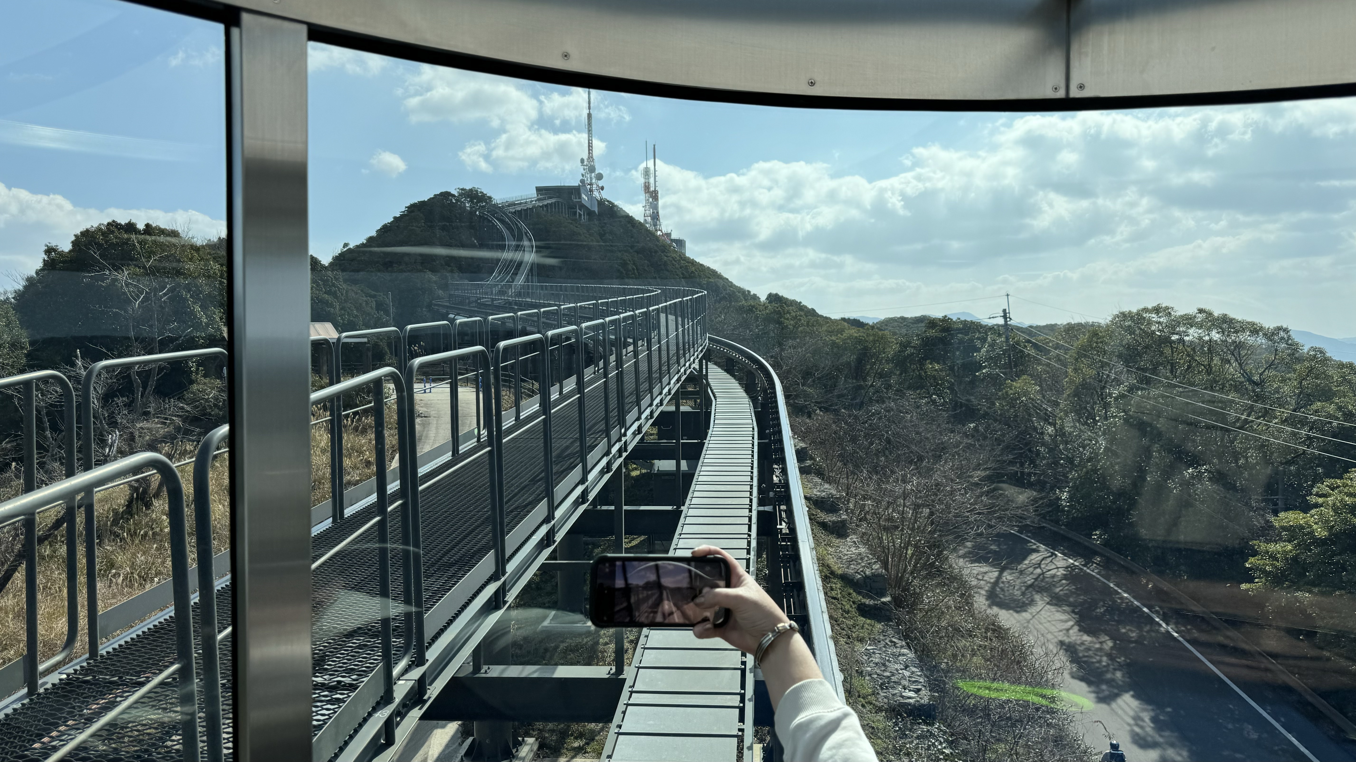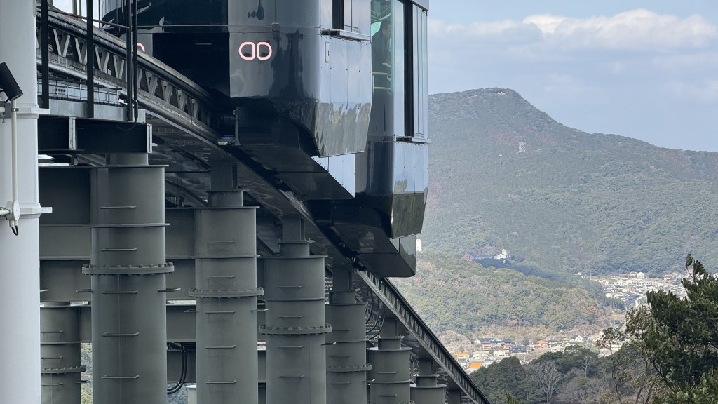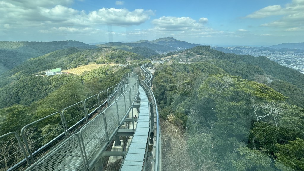 Last stop is the slope car train …… what another train ride!……to the top of  Mount Imasa.  First time for us on a slope train car. Very interesting design, Nana and I snuck under the track to see how it worked, we are engineers. Gorgeous views up top as you can the whole city, the harbor, and the mountains.