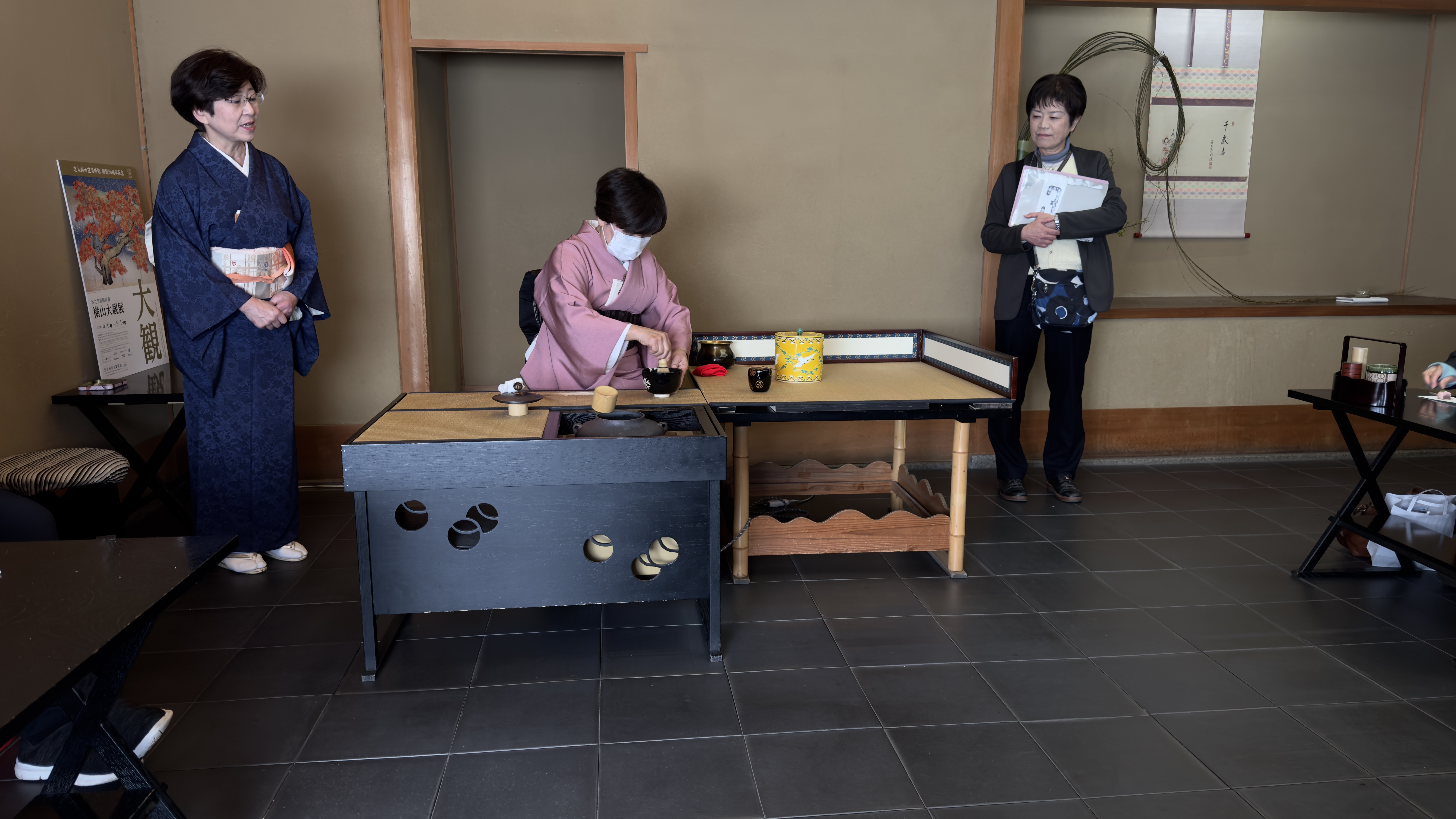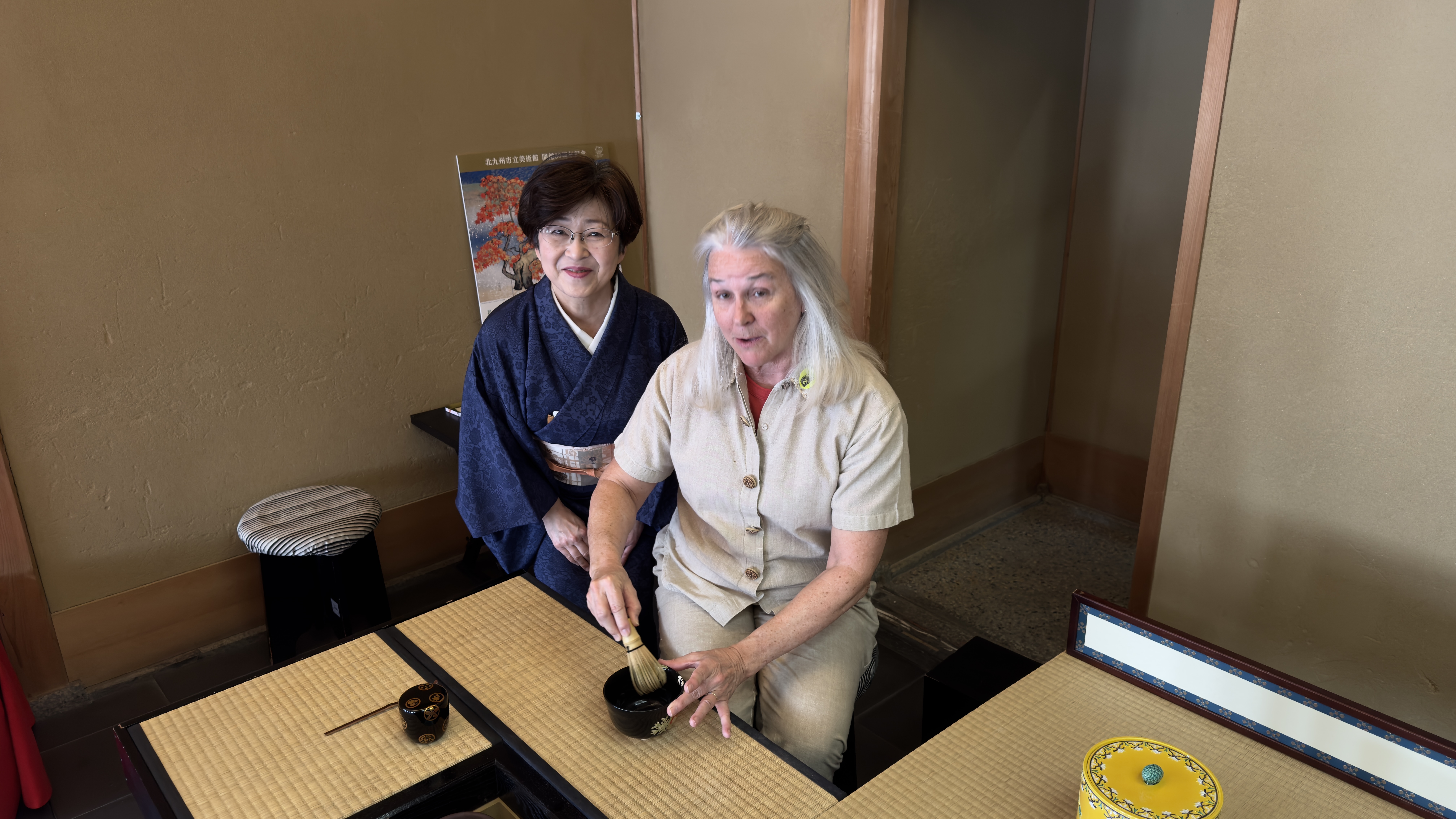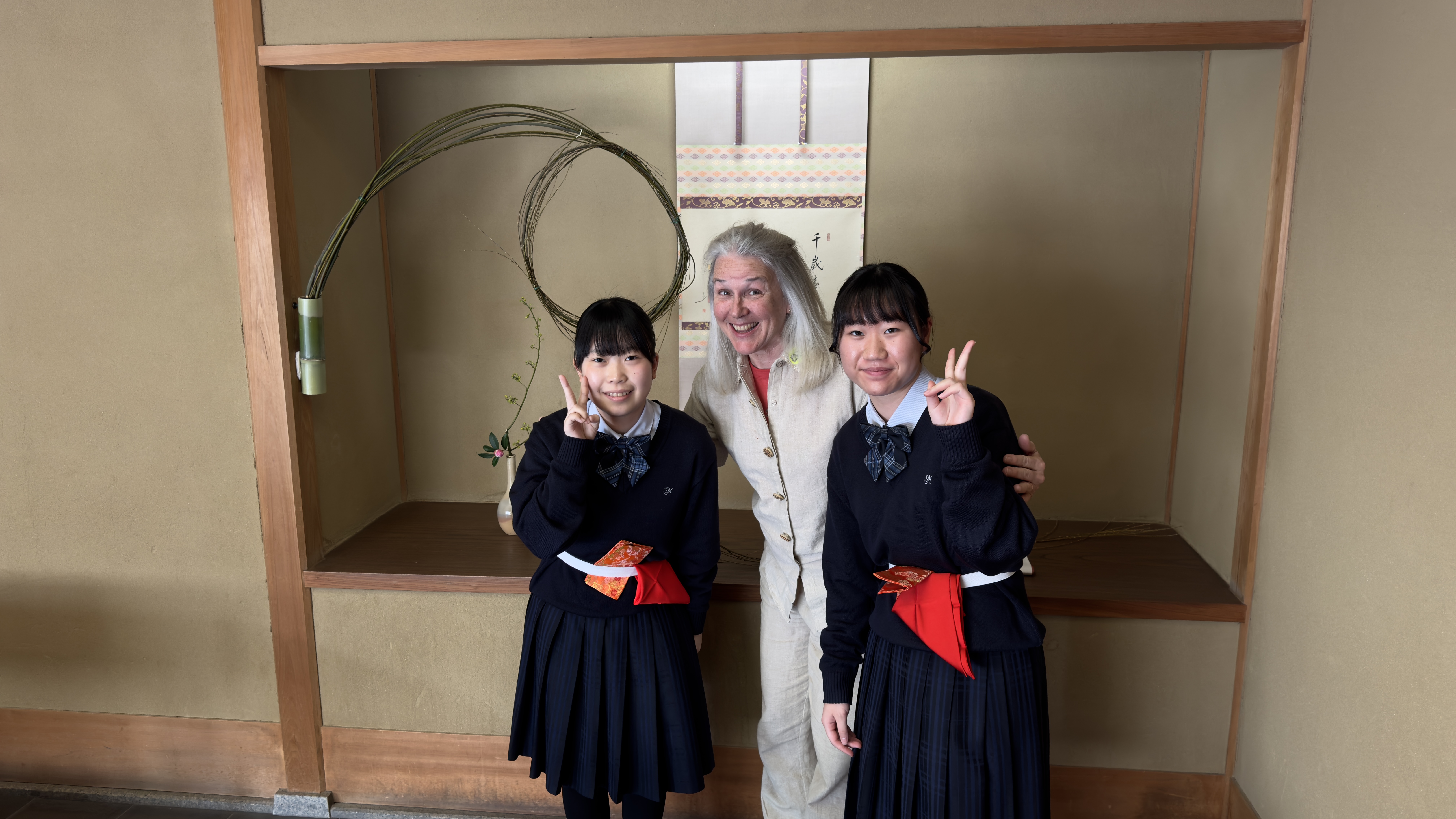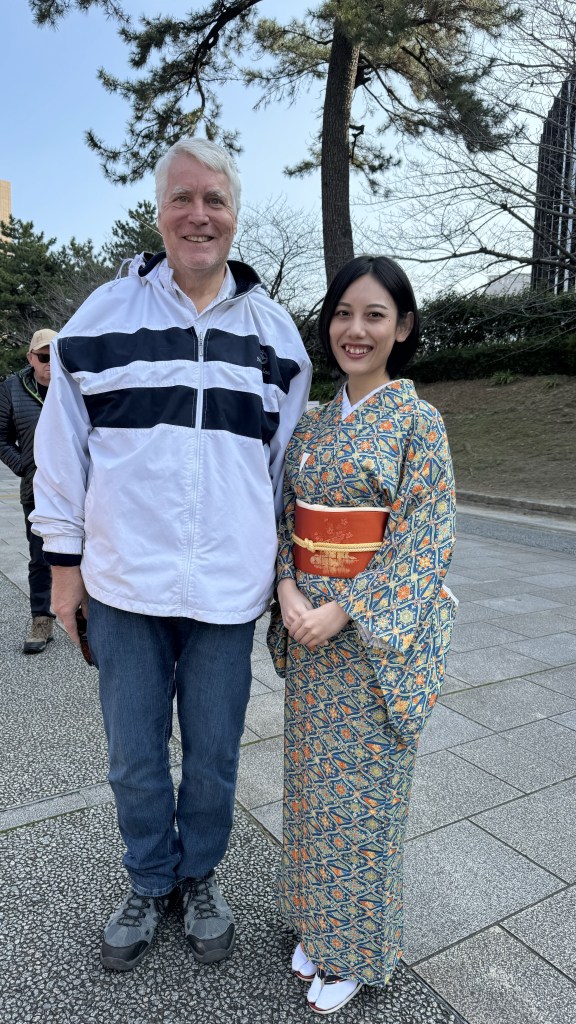 Next stop was the traditional tea ceremony. Reminded me of the movie Mulan where Mulan was being thought the correct way to serve tea. There is a whole ritual which girls got to special classes to learn. Nana had a blast and thanked the two high girls that helped out. Papa took some time to take a picture with a Japanese girl who was helping out with the tea ceremony.