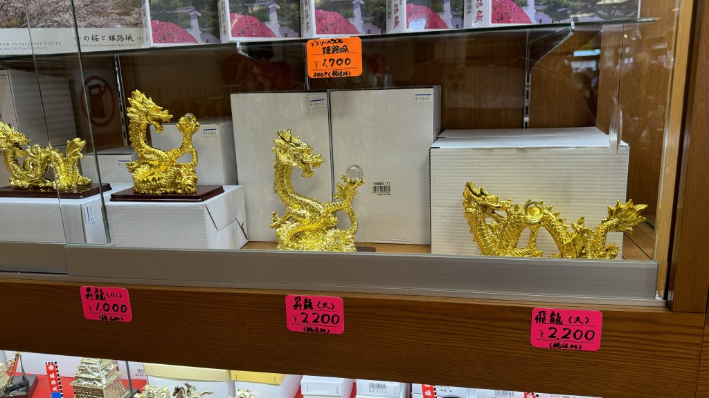 Now up to the castle. A long wind climb through many gates to protect the castle.   Gorgeous castle and it could be well defended.  Castles are so much different here in Japan.  Papa found a dragon for his train mountain.  Nana found some more animals for Noah’s ark.