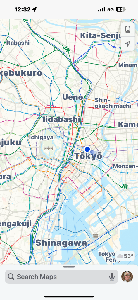 Today, day 24 is a sea day.  Nana was up at her exercise class and Papa was working out on the weight machines.  We had a zoo break this morning on the Lido deck and lot’s of animals just hanging around. This morning we passed the Kanmon Strait which separates the southern half of Japan from the Northern part.  Some gorgeous views.  Now we will be visiting some eastern cities in Northern Japan.