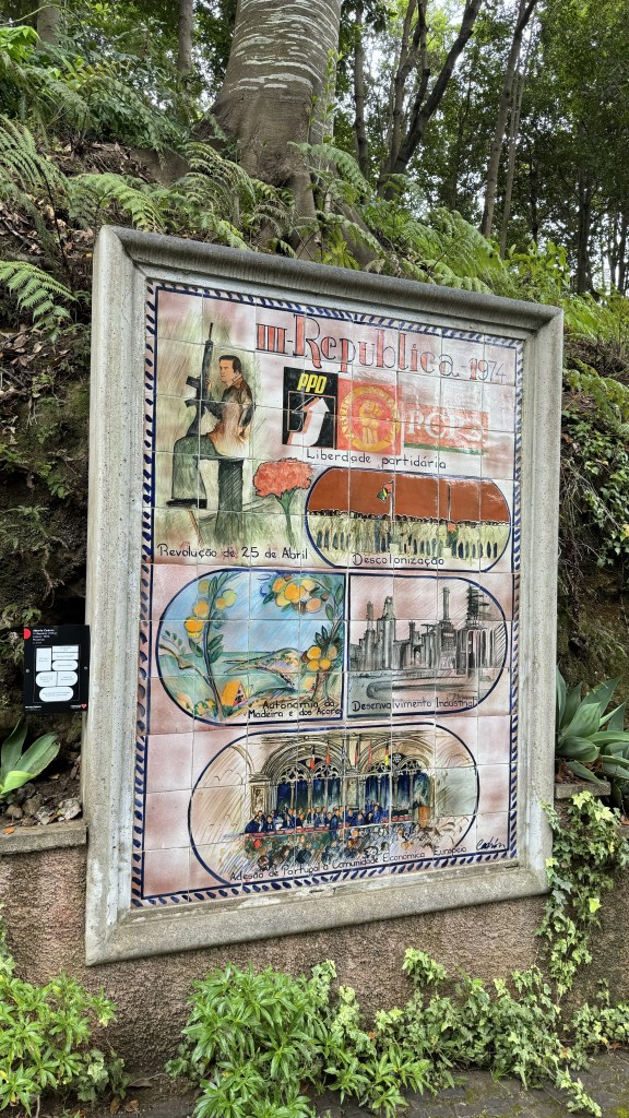 After our coffee, we then went to the up the gondola to the top of the mountain.  At the top we then visited the Jardim Botanic de Madeira.  This is an old palace with a fabulous botanical garden,  You start at the top and walk down many levels.  The plants, water features and landscaping were fantastic.  It was a very long walk down and as the old adage goes what must come down must go back up.