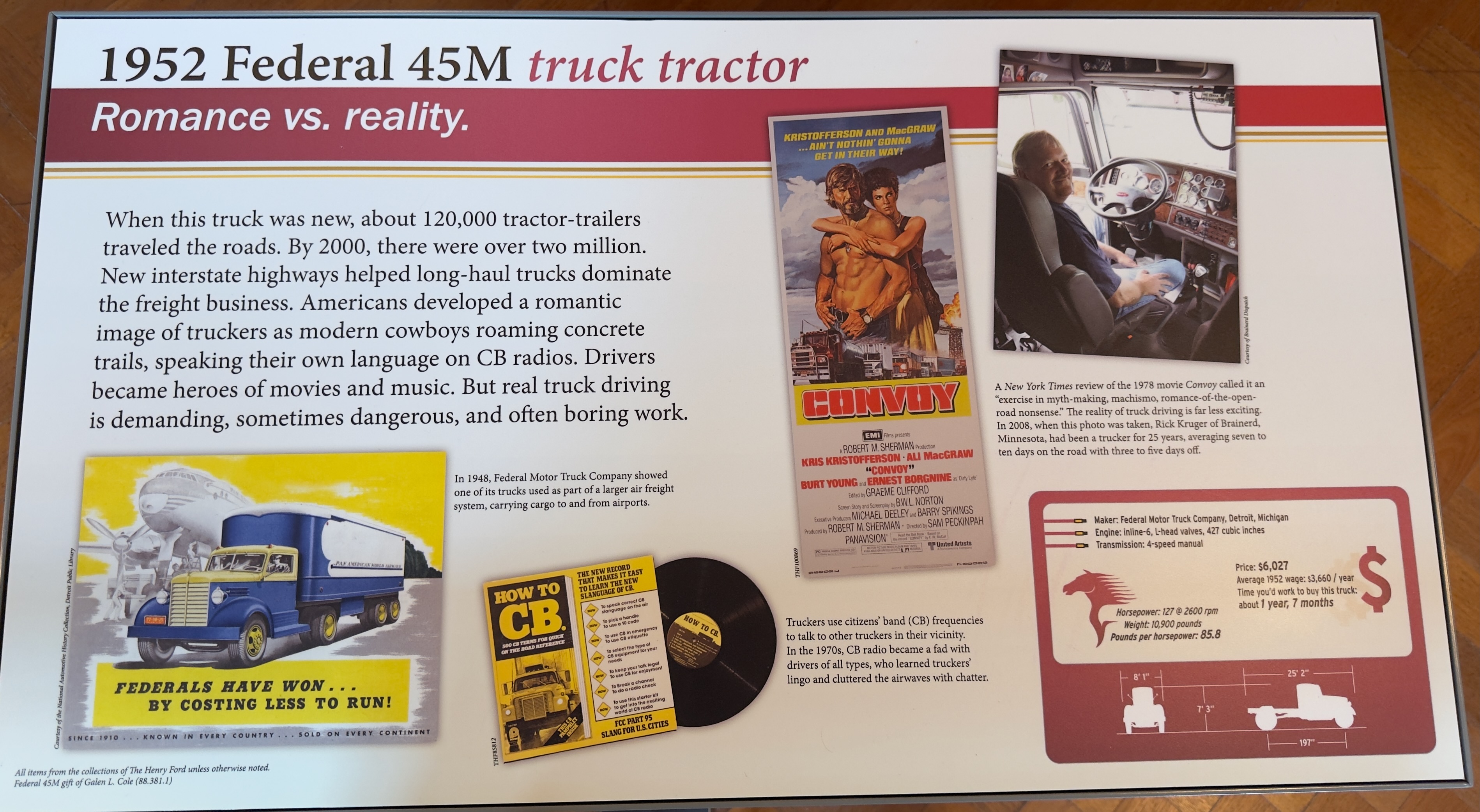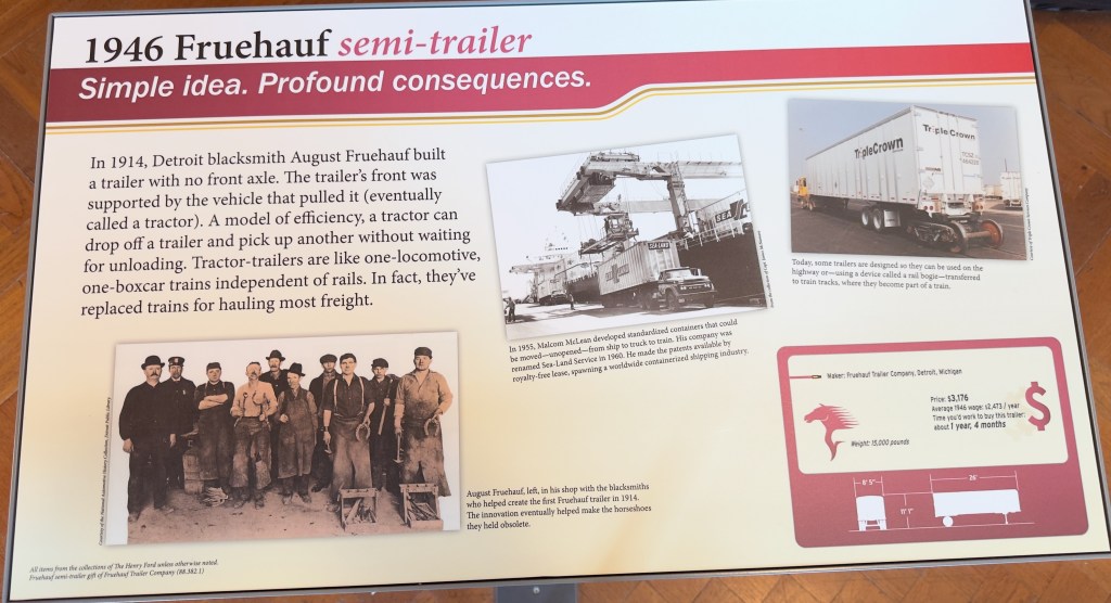 We saw details on the assembly line for the Model T, which revoluntionized manufacturing. We also saw the car the President Kennedy was assinated in.