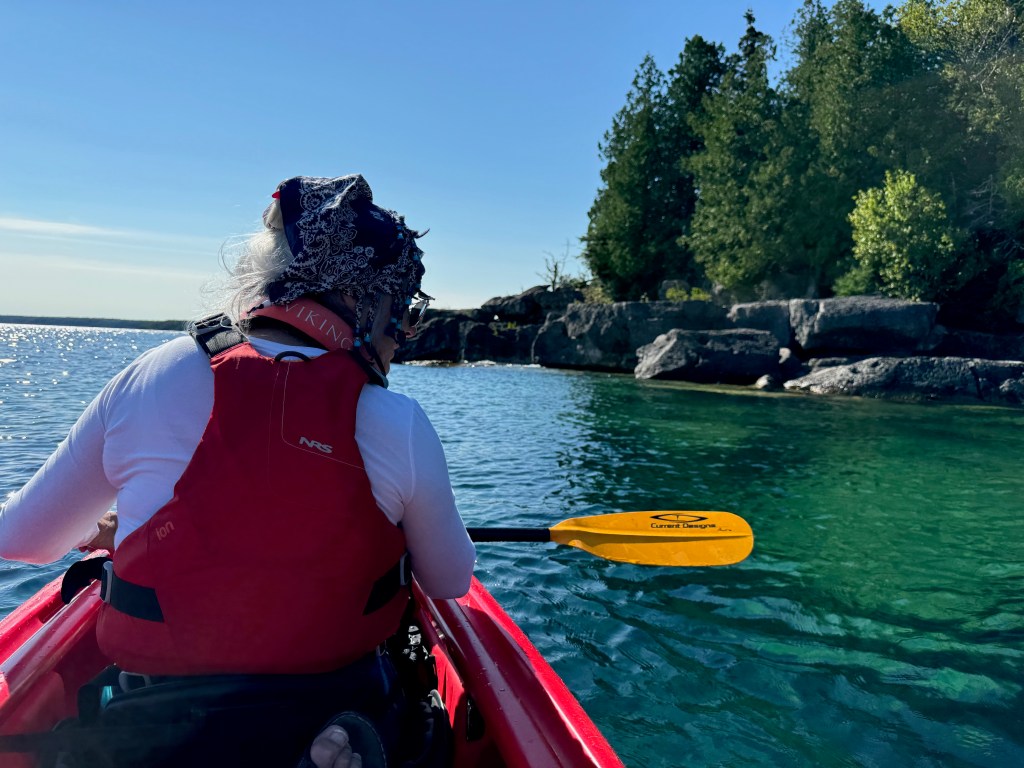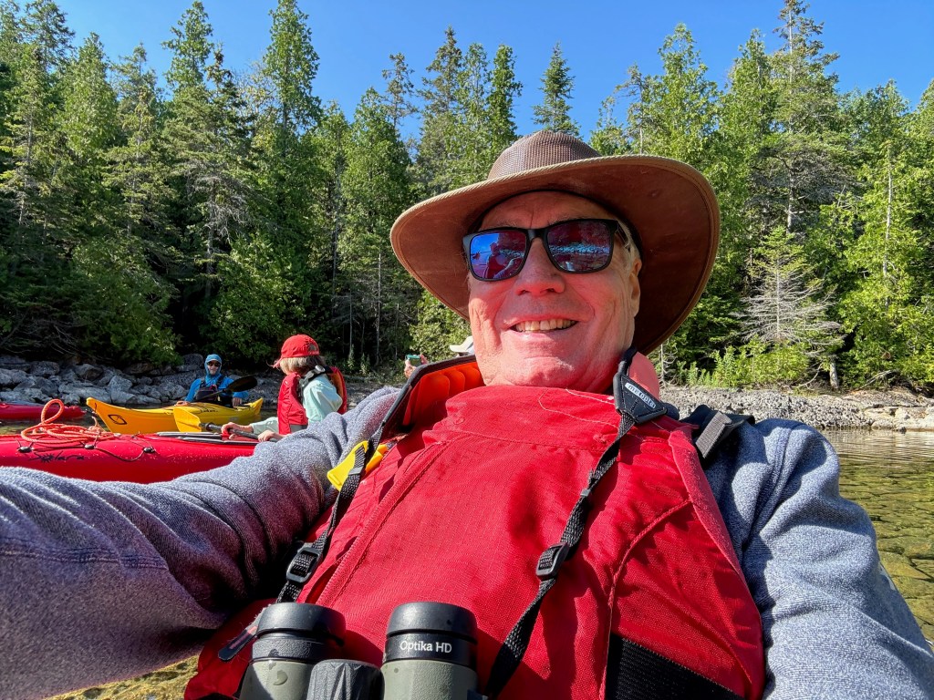 Our training for getting in and out of the kayaks was good and all of us made it into the kayaks. We had a wonderful time exploring some coves and kayaking around in pristine waters. The temperature was cool but nice.