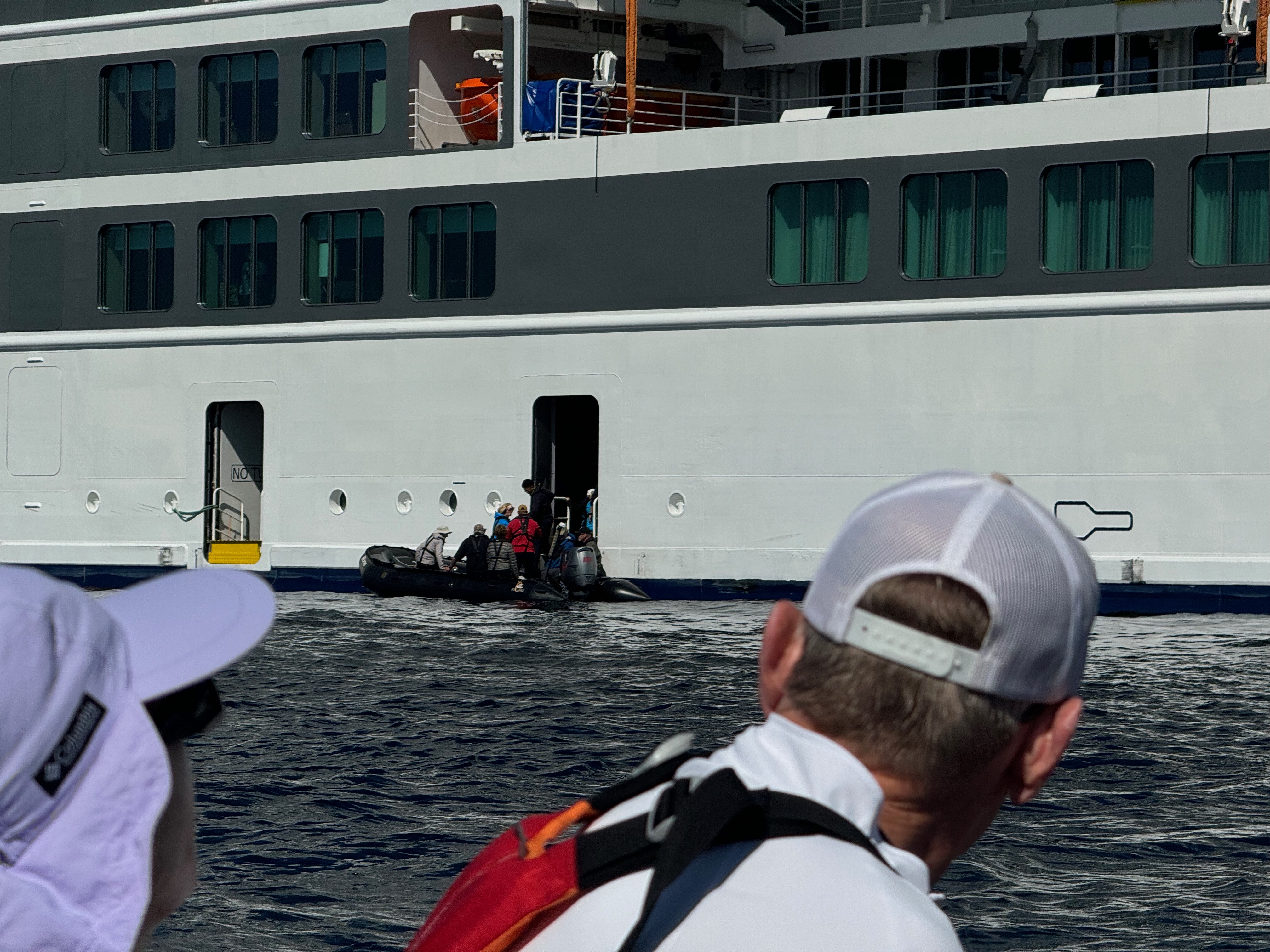 We then loaded back up, left the kayaks at a buoy and went back to the ship. Since we didn’t have kayaks in tow, we went faster and got pretty wet from the spray of the waves.