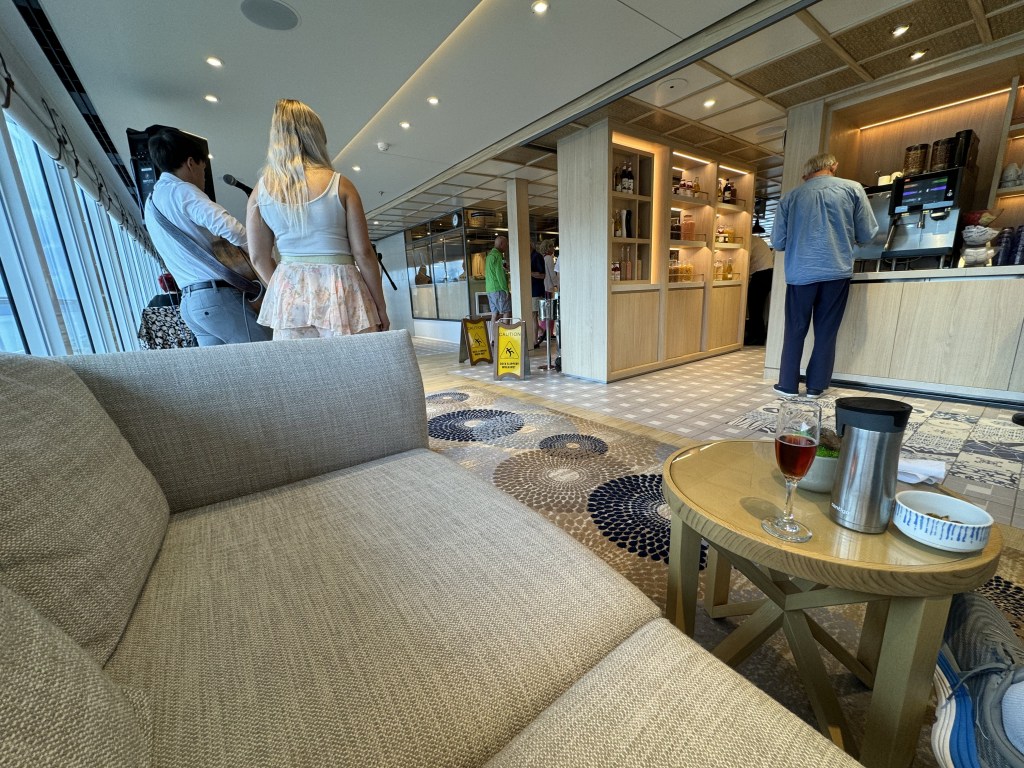 Since we had our barbecue cancelled, they had a special lunch for us on board the ship. Lobster rolls and the normal fare along with a champagne drink…. as much you wanted. Some interesting facts that my friend from ND, John, told me, over the course of two weeks, Viking serves over 5,000 lobster tails. While we had lobster rolls today, you can get lobster tails every single night in the World Cafe. Each tail is somewhere between 8-9 ounces each. That is a lot of lobster. We were also entertained by the contemporary duo with some wonderful songs. I was confused when they said barbecue becuase I was thinking like a Southerner and thinking of pulled pork, baked beans, and barbecue sauce. What they meant was that they were cooking out hot dogs and hamburgers. Different words mean different things depending on what part of the work you are in. When I lived in Ohio, I though barbecue was cooking out, now that I live in Georgia, I think of barbecue as pork or chicken seasoned.