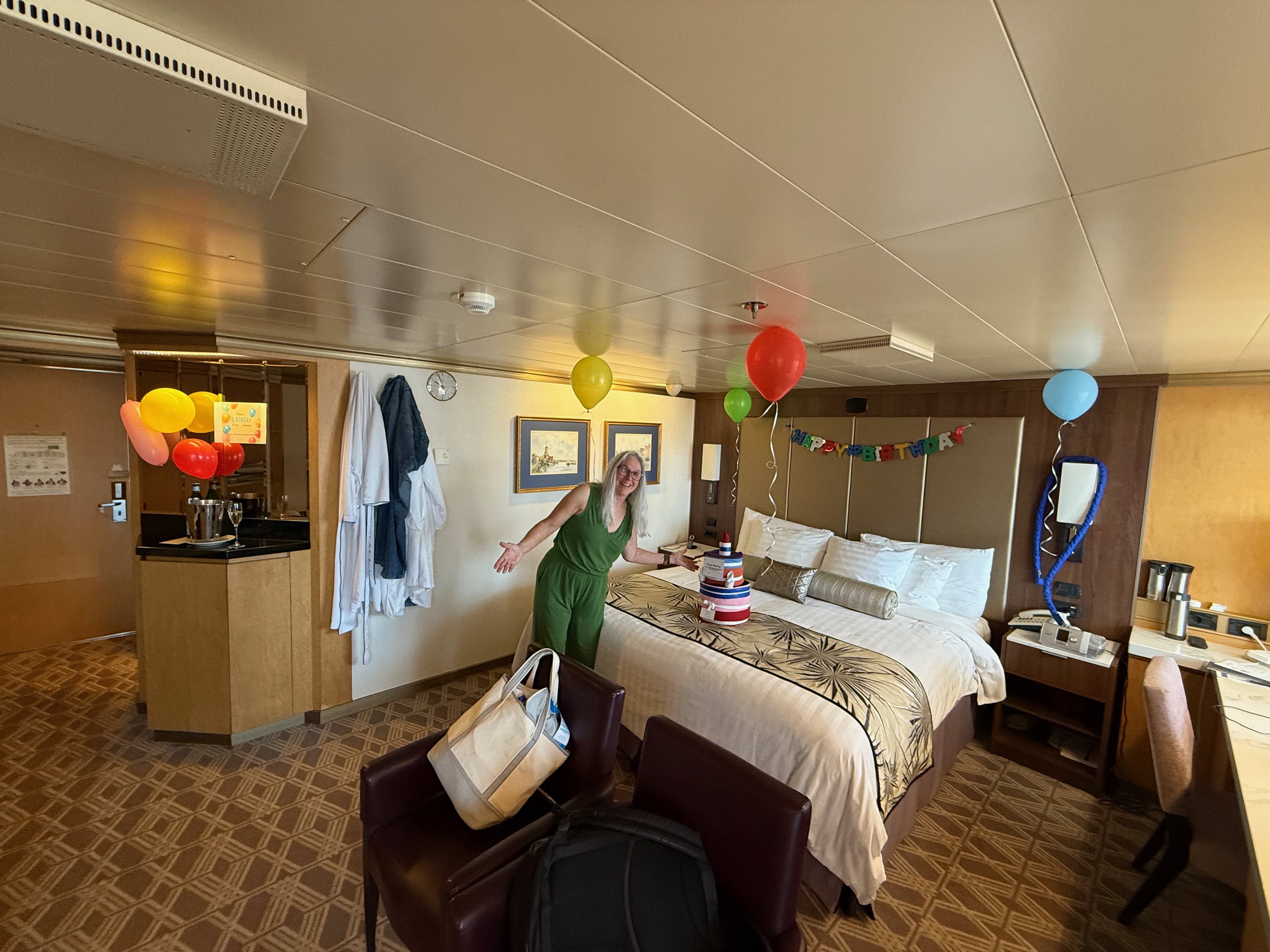 A fantastic journey and one of Nana’s favorite birthdays ! We found our room all decorated for Nana’s birthday when we got back to the ship.