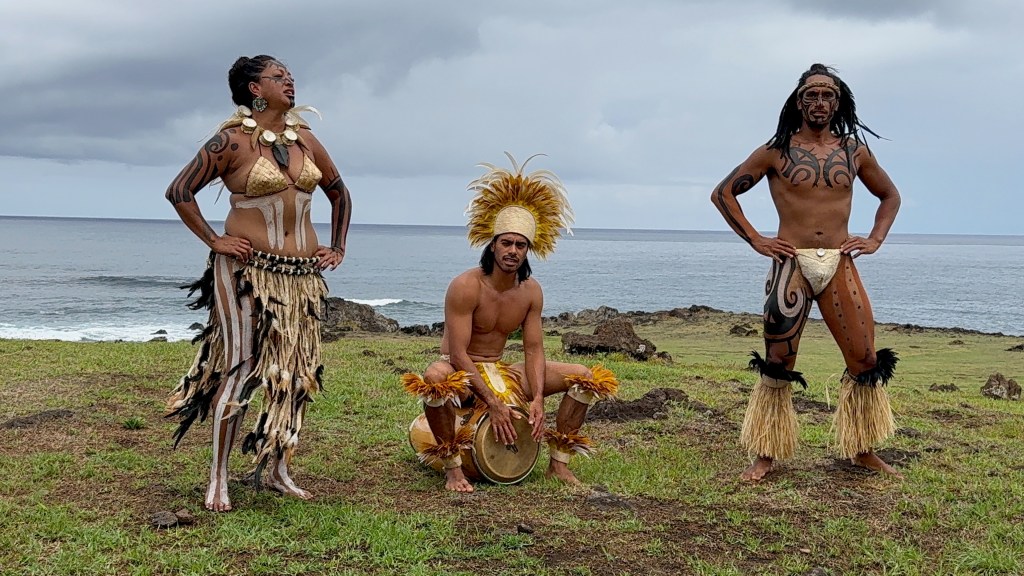 Afterward, we took a short walk to meet our Rapa Nui hosts. During our time with these gentle people, they will taught us about their tribal dances. They showed of the use of kie’a. The latter is a form of natural paint that was used in ancient times for body painting (takona). Nana just had to get her body painted and became a warrior for a day.
