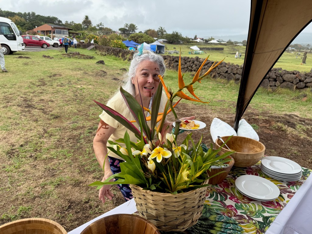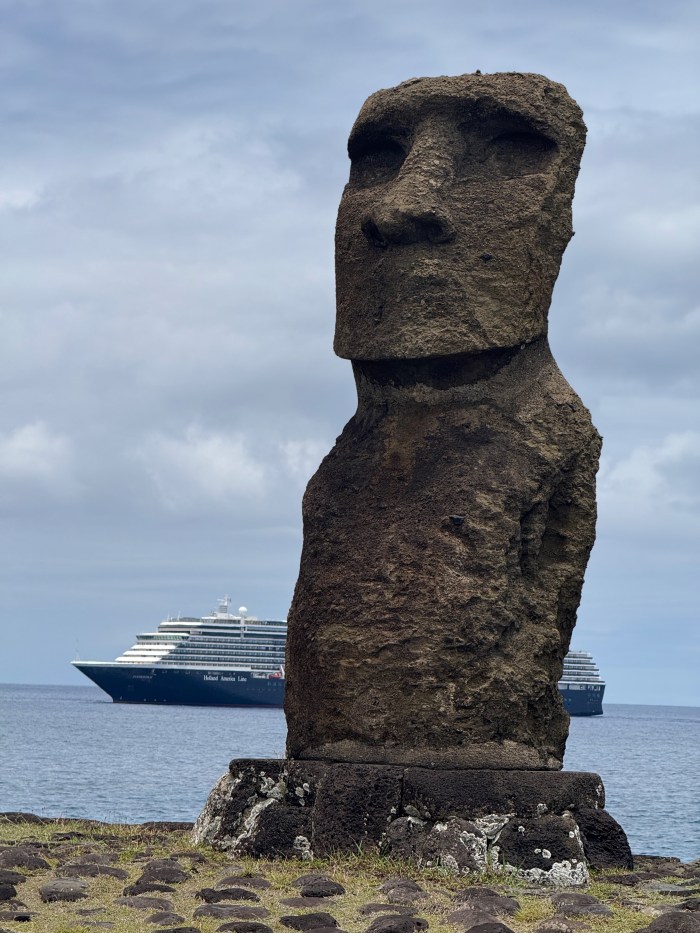 Today we embarked onto Easter Island. The ship was able to anchor successfully and tender operations ran all day. Nana and I took an excursion “Deep Dive into the history of Easter Island” The captain has been so worried that we would not be able to anchor off Easter Island or if we did anchor, the tender operation would be too rough. It was a lovely calmer day, swells we about 3-4 feet and everything worked for the ship. It was a little rougher than I thought it would be for getting onto the tender and then getting off on shore was a challenge because the dock did not match our tender and we had to step down and then step up. The crew were very helpful and assisted everyone. It was interesting that they made many announcements about what to expect, no walkers or wheel chairs allowed but people still with some serious mobility issues boarded the tender anyway and had problems.