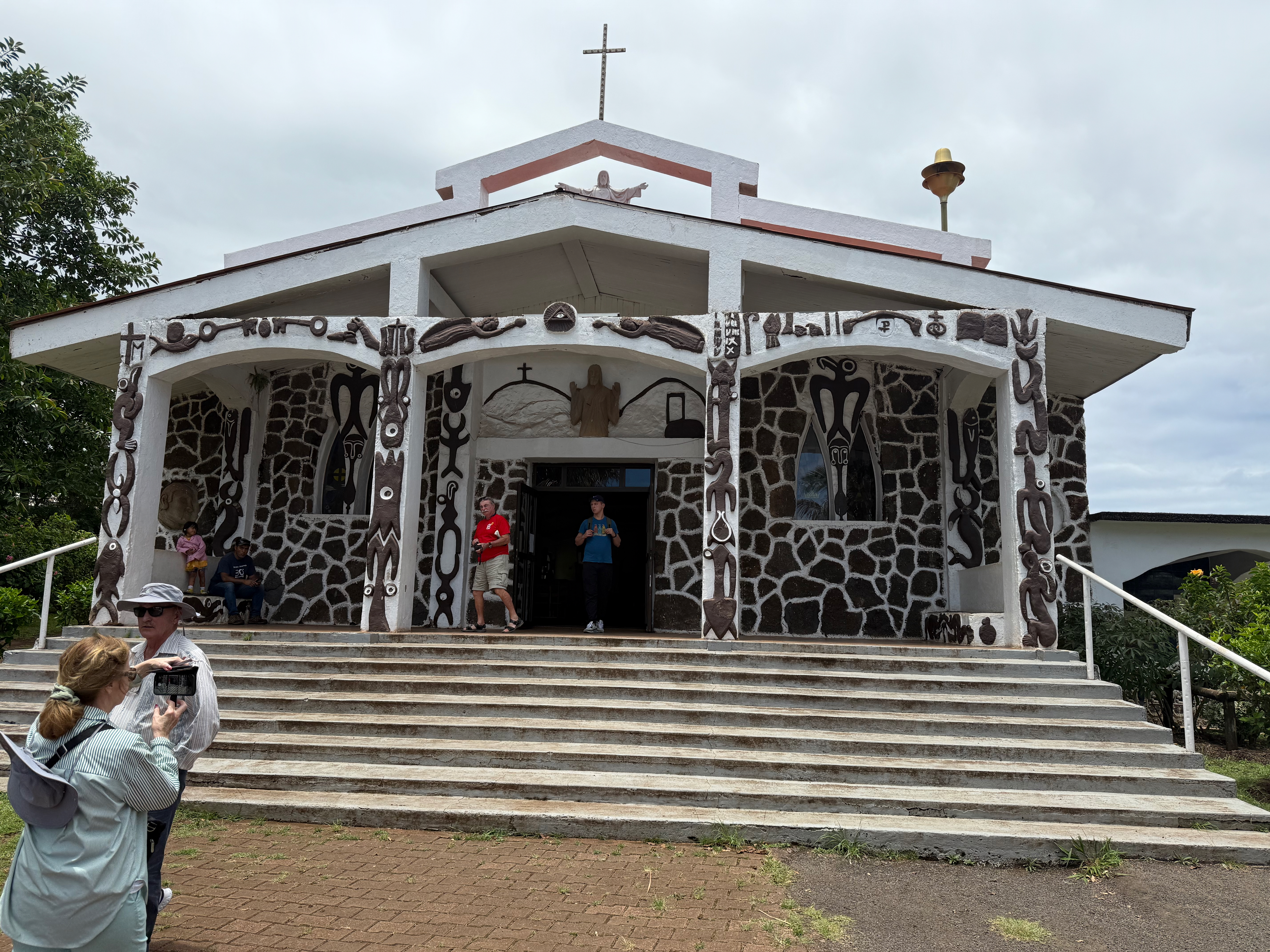 After visiting with the Rapa Nui people, we visited a Catholic church. This church was an interested blend between the older cultures and the Catholic faith. Our guide called it a compromise. Interestingly, our gude said her Great Grandfather donated the land on which the church was built.