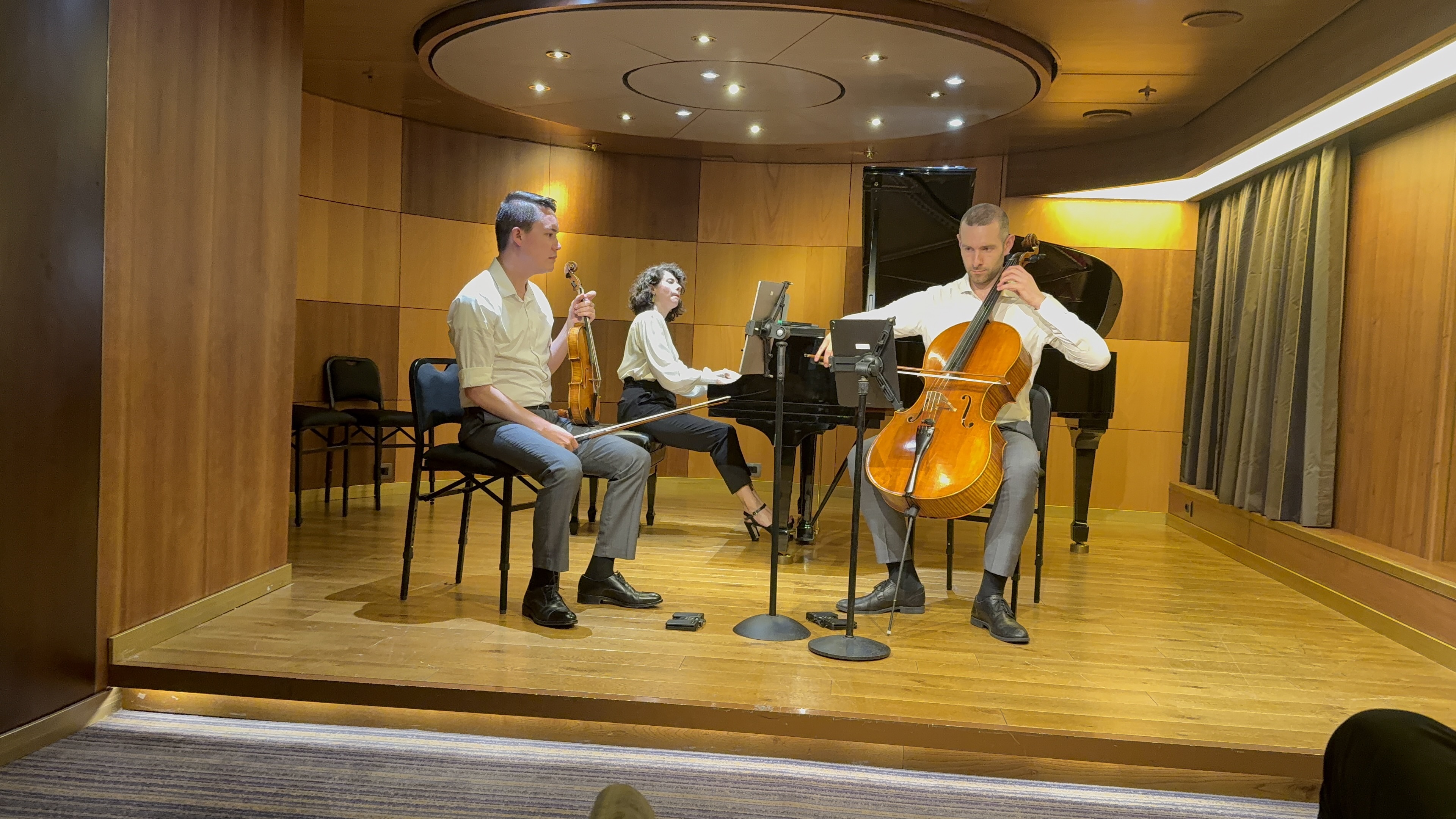 A daily show that we like to take in is the string quartet. Three fabulous musicians that play wonderfuly together. The violinist and Piano are married but we didn’t find that out until the cruise director talk with the 3 of them. They all have very interesting backgrounds.