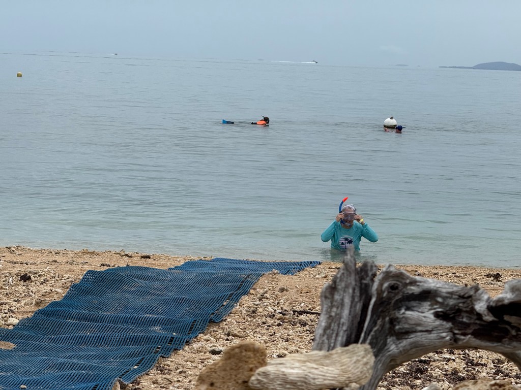We then embarked on a second excursion to Duck Island Marine Reserve. We had a short van ride from the ship to a zodiac where it whisked us away to a small island that has been designated as a marine reserve. There we went snorkeling and some colorful coral as well as many varieties of fishes and marine life. They even had a “snorkeling path” that you could take to see different sights. Nana really enjoyed her snorkeling and Papa had a great time too. The island had a restaurant and bar on it but not much was happening other than people from the ship.