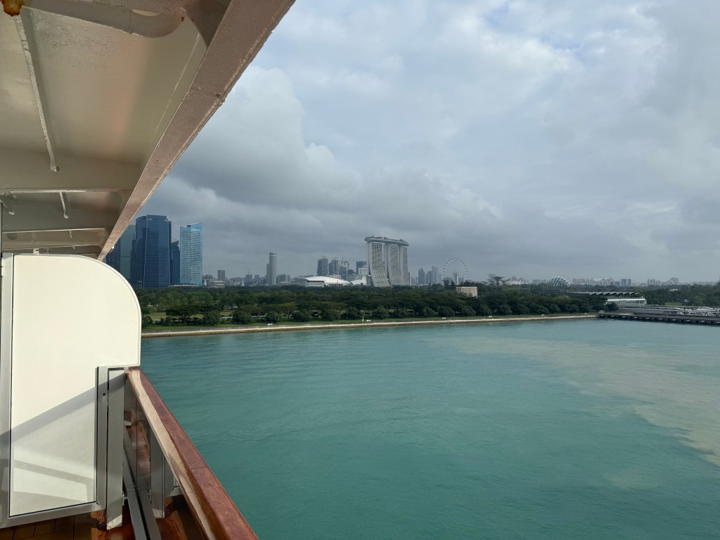 Our stop in Singapore was to let off about 200 guests and we took on 200 guests. Ship’s complement is still around 1,350.