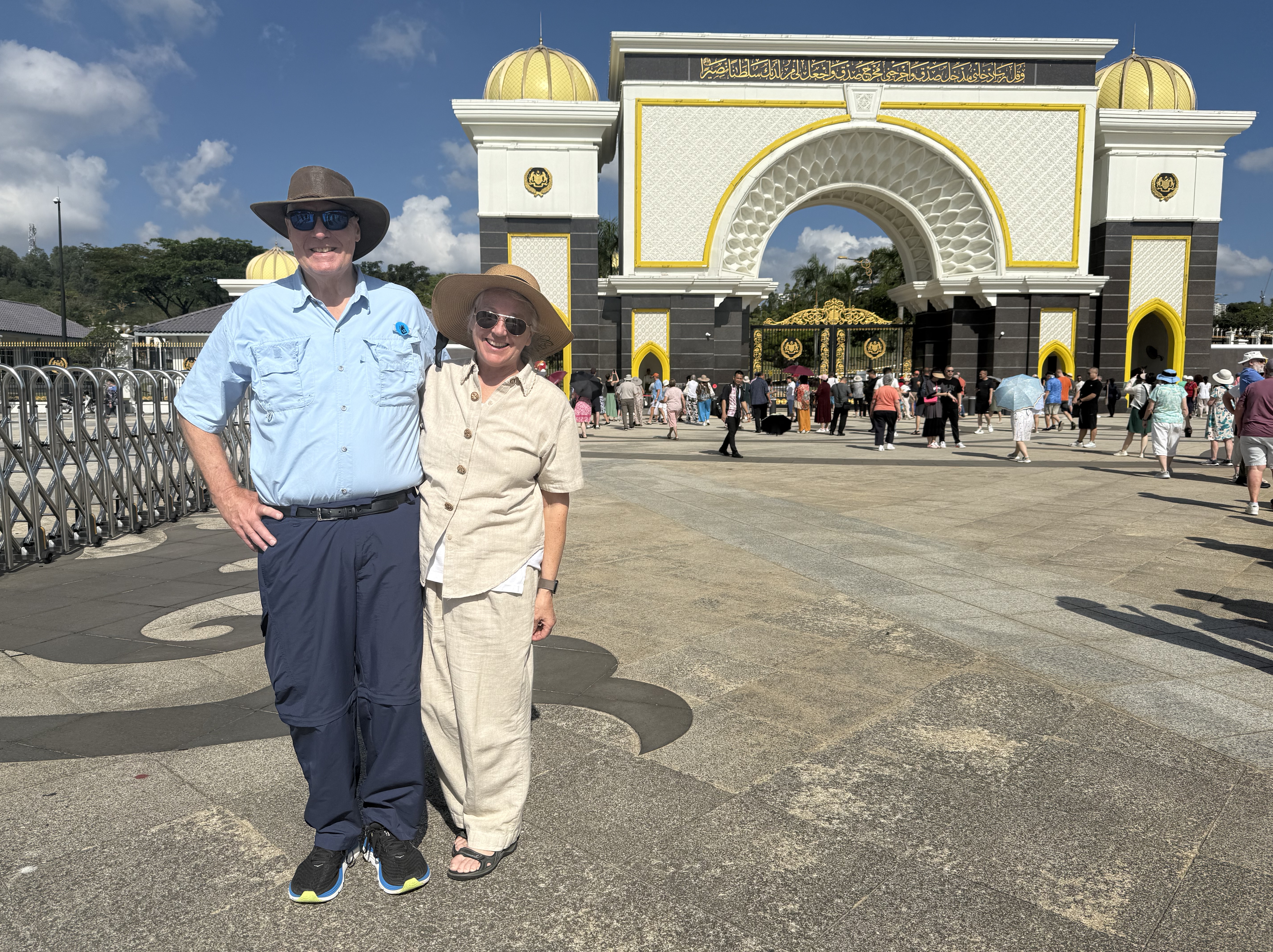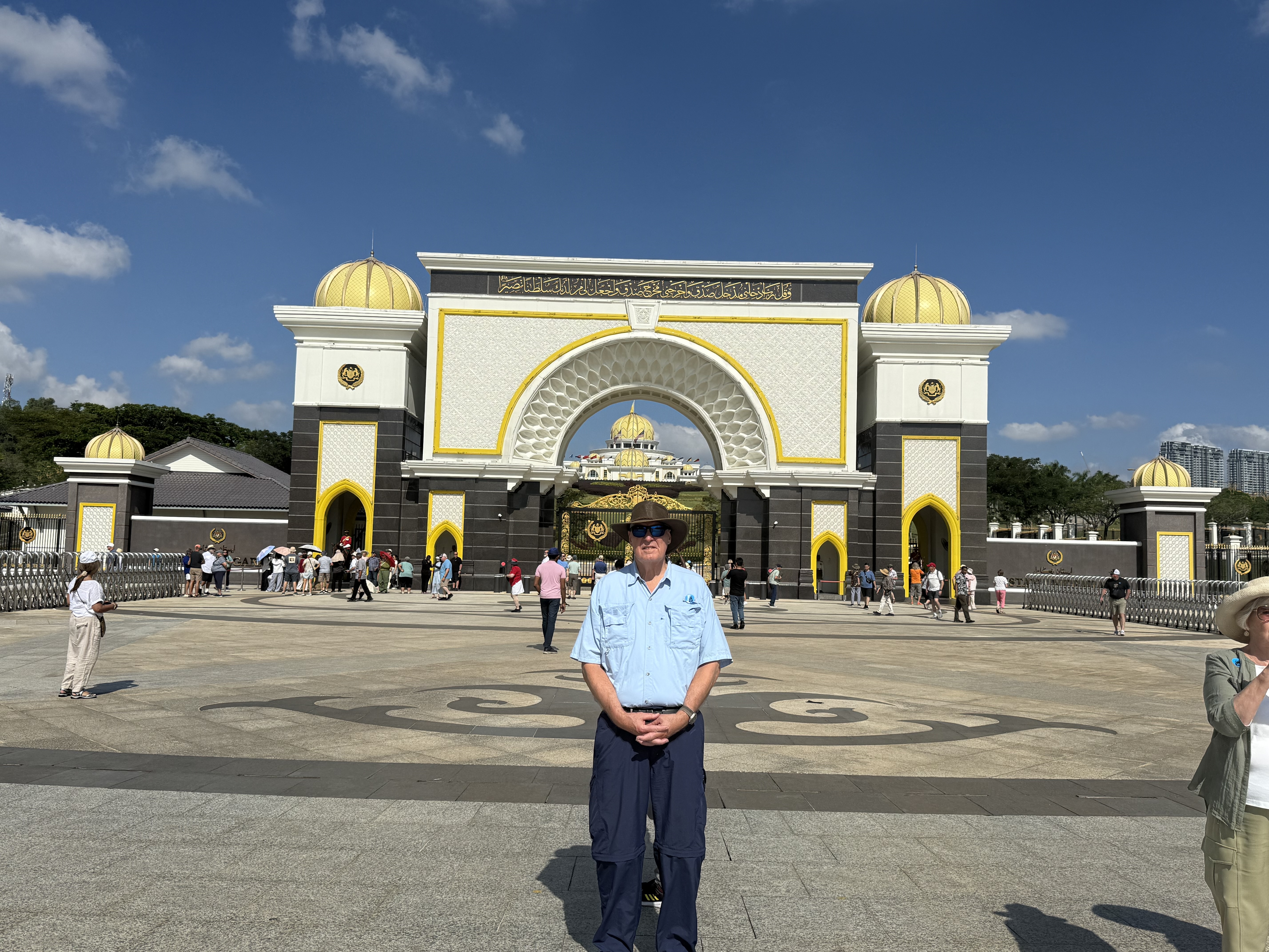 We started our visit of the day to the Presidents Palace and then the National Mosque, which embodies a contemporary expression of traditional Islamic art, calligraphy and ornamentation. A minaret that towers some 240 feet dominates its multi-fold umbrella-like roof. Located adjacent to the National Mosque is the impressive Old Railway Station. This grand old station, inspired by Mughali architecture, features seven stately minarets. We continued to Independence Square. The former playing field of the Royal Selangor Club, the square is also the site where important events are held such as National Day celebrations and streets parades. Located within is the Royal Selangor Club — a charming mock-Tudor structure. Another remarkable edifice is the Sultan Abdul Samad Building, which served as the government administration during the British era. Next we stopped at the magnificent Petronas Twin Towers . The Petronas Towers were once the tallest building in the world (1998-2004) and still the tallest twin towers globally. We visited Suria KLCC, a 6 story shopping mall located at the foot of the Petronas At the Twin Towers where we had lunch and Nana shopped for shirts.