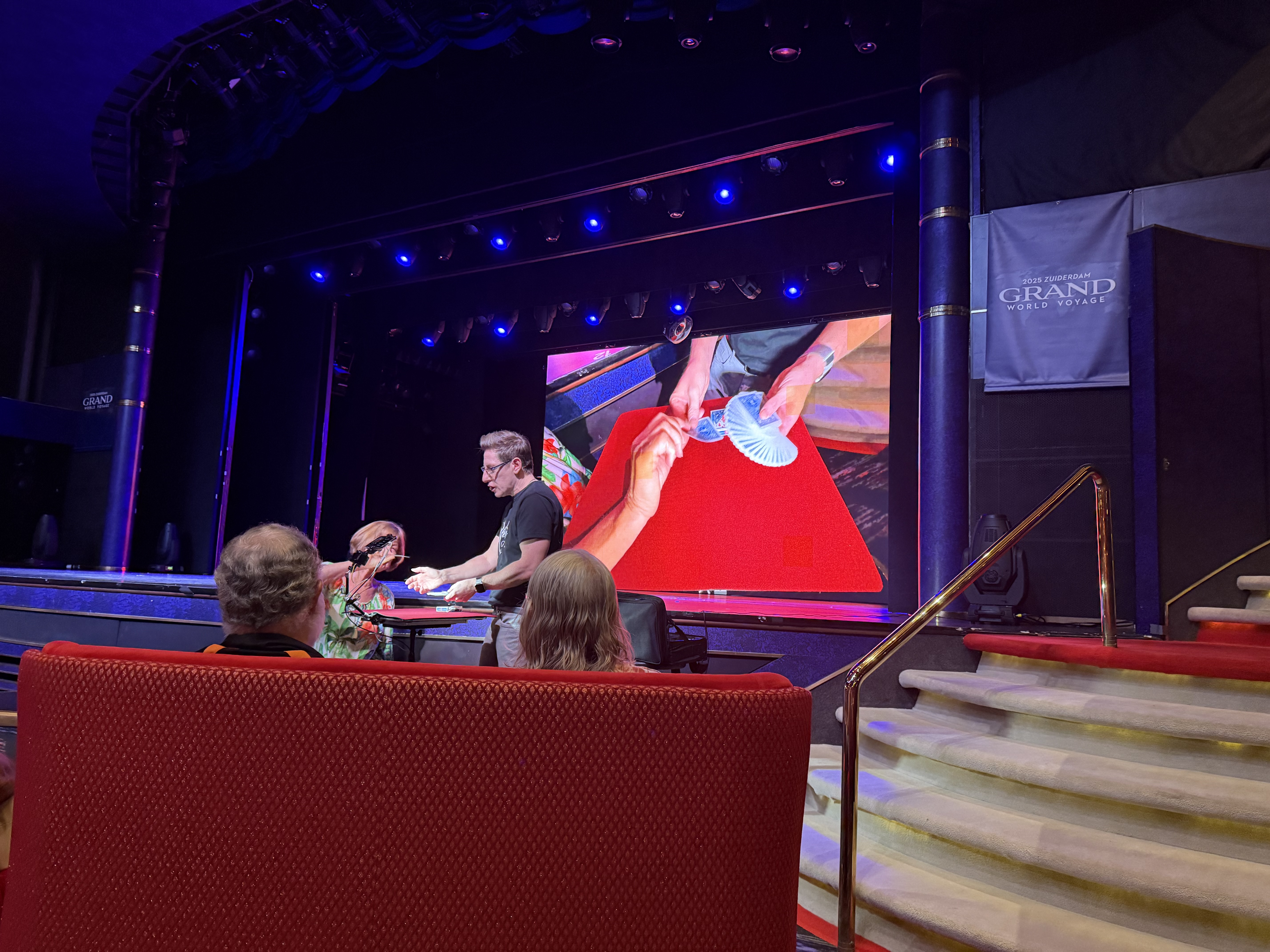 Yesterday Papa took some magic lessons during a sea day from a magician that has been doing shows onthe ship. Hopefully he can practice and show you some new magic tricks during his next visit.