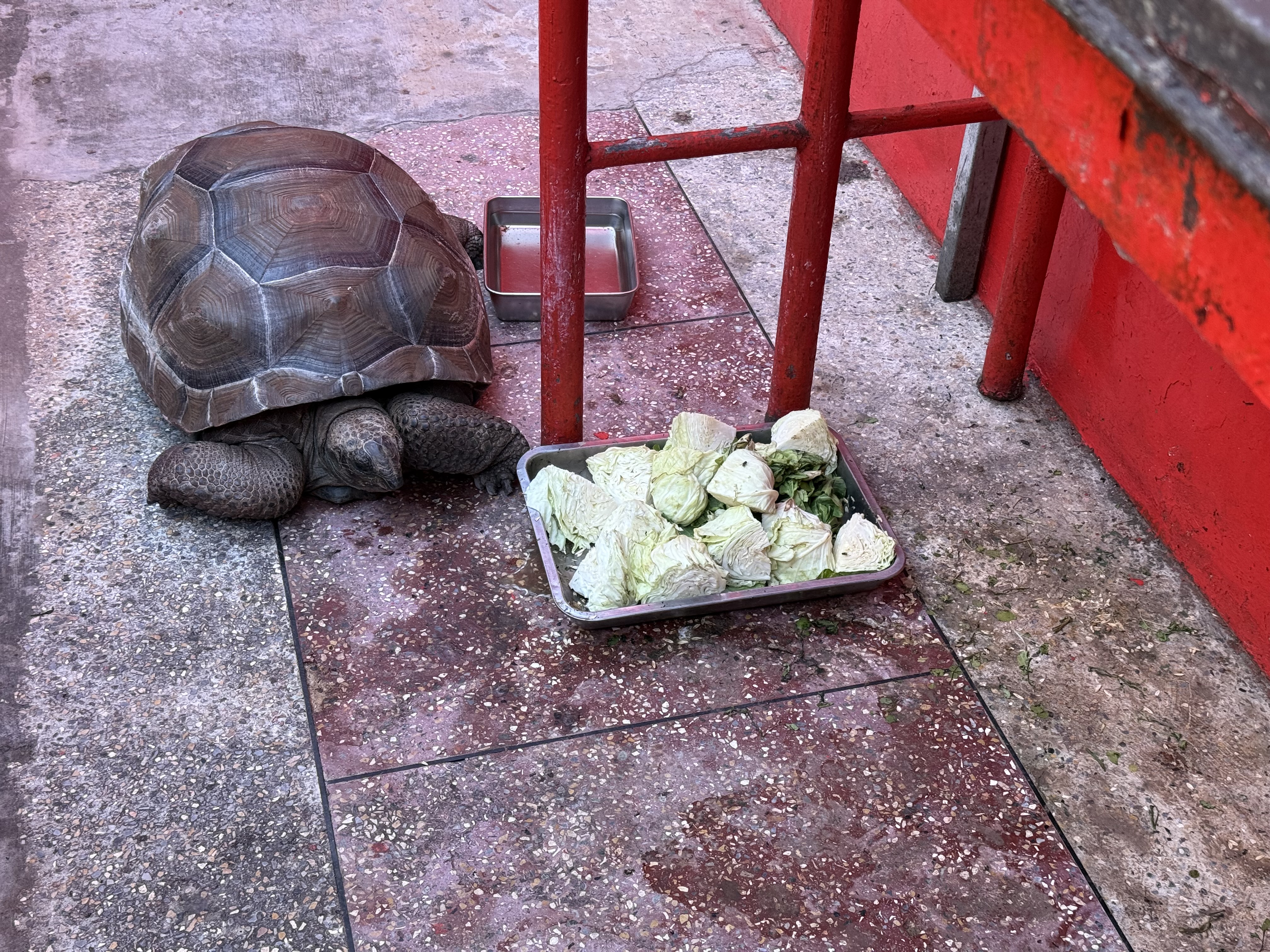 Our excursion today began with the visit to the Chinese Pagoda, The Kwan Tee Pagoda. The Chinese came 180 years ago and helped to settle the island. They had some tortoises there at the Pagoda. Tortoises became extinct on Mauritius due to the fact that many European sailors took them for meet, oil, and their shell. Mauritius brought them from Seychelles to help repopulate the island. See my blog from Seychelles.