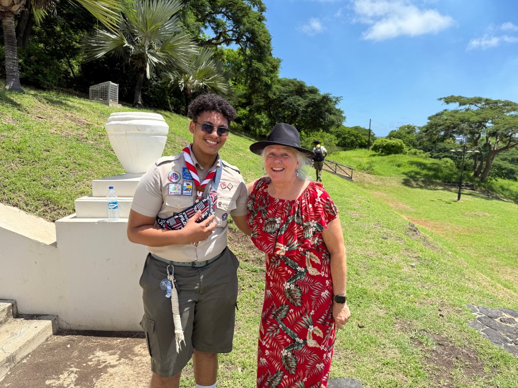 Our last stop was the Marie Reine de la Paix (Mary, Queen of Peace) — an area of greenery that features an open-air church overlooking the city of Port Louis. Situated on the flanks of the Signal Mountain, it also offers a wonderful view of the city’s “high-rise” buildings as well as the mountain that acts as its backdrop. This area was designated a place of worship in 1940 when Priest James Leen went there to pray for Mauritius to be spared from World War II. Since then, it has become a place of great spiritual meaning, as well as a major attraction for visitors. During our visit to all of these sites we saw many boys and girl scouts. Today was a special day where they are help to clean up and pick up trash.
