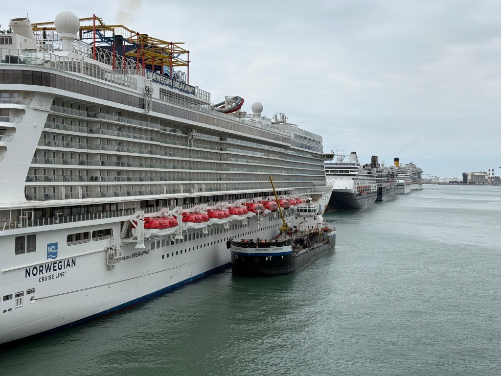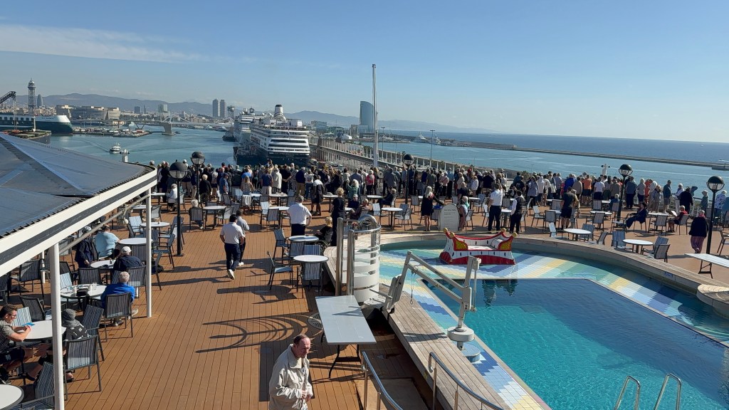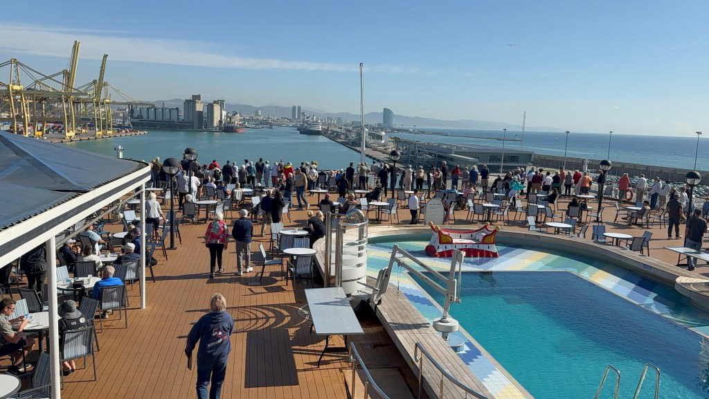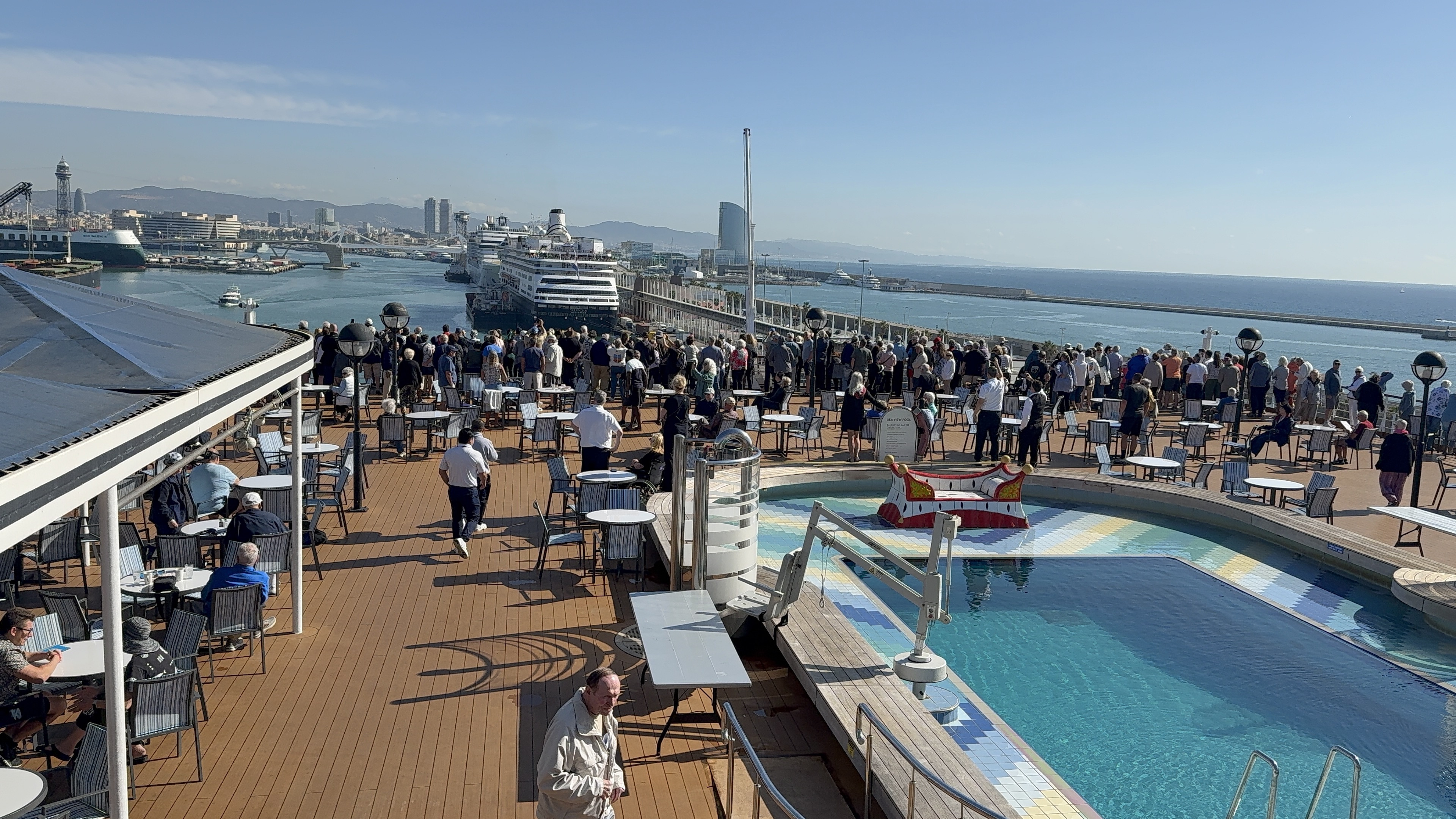 Yesterday we arrived into Barcelona. It has been a busy two days with a party in a castle, visiting the city, meeting up with our sister ship for the World Cruise, Mass at Sagrada Familia, and a drone show last night.