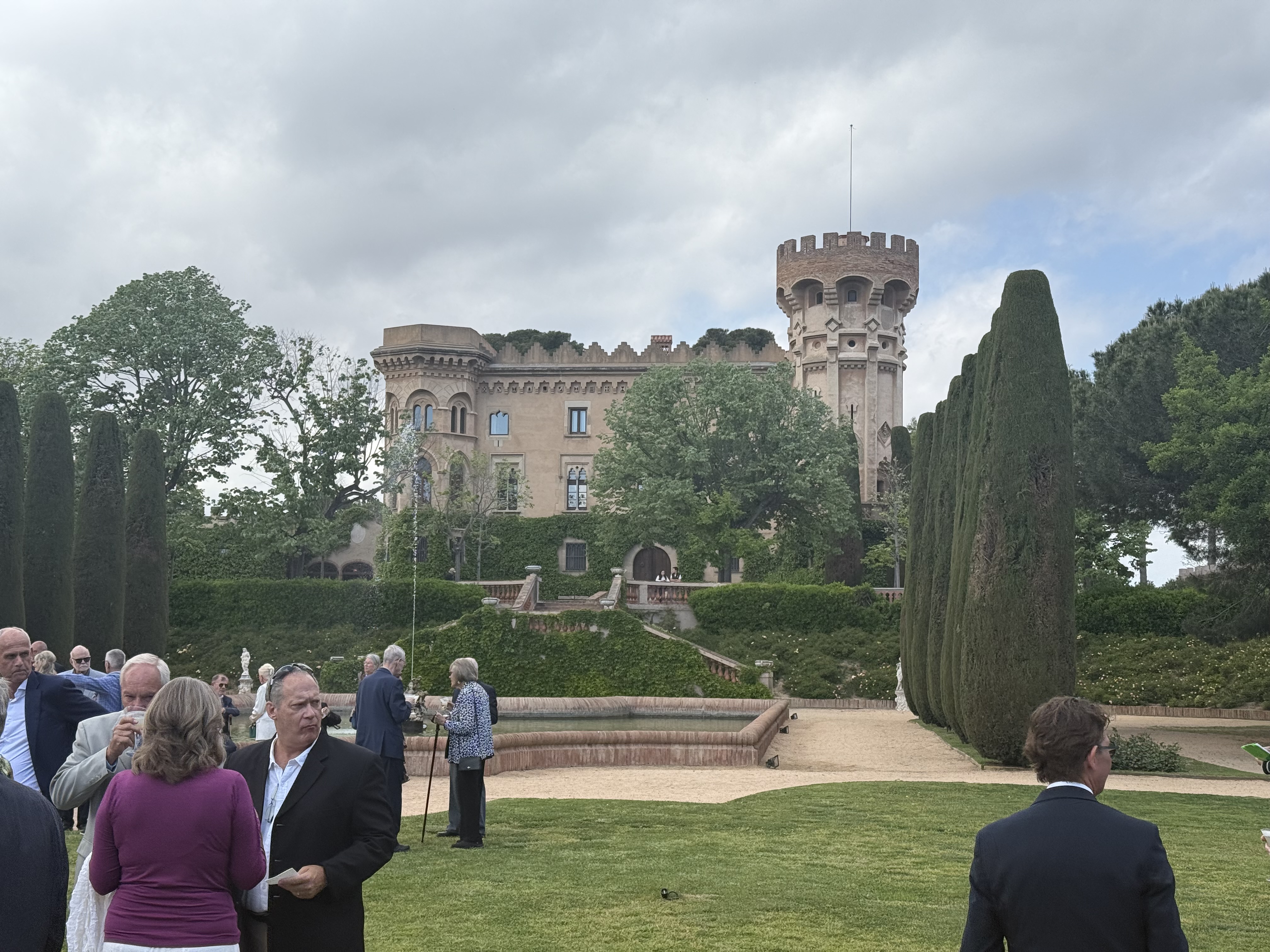 One of the highlight of the last two days was a dinner at a castle. The Castell de Sant Marçal is a historic castle located in Cerdanyola del Vallès, approximately 15 km from Barcelona’s city center. Originally constructed in the early 11th century, the castle was first mentioned in documents in the 12th century when it was granted to Ramón Guillem de Montcada by Count Ramón Berenguer IV. In 1225, it was sold to Ramón de Plegamans, whose descendants, the Marimón family, have maintained ownership for over 700 years. The castle features a square floor plan with a central courtyard, a tower, and a Gothic chapel. In 1895, architect Cayetano Buïgas, known for designing the Columbus Monument in Barcelona, renovated the castle, adding Romanesque and Gothic-inspired decorations.
