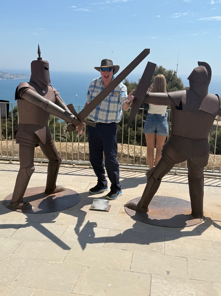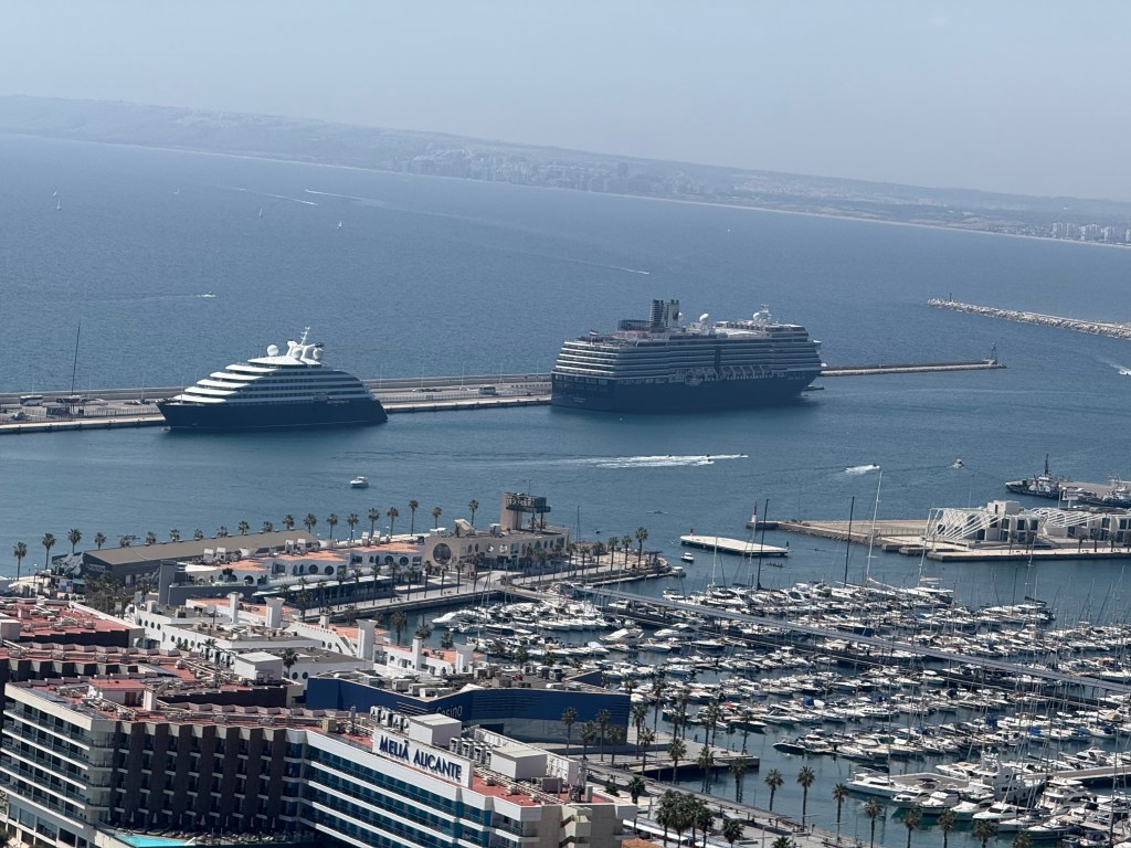 We arrived into Alicante today. Alicante’s story stretches back over 7,000 years, beginning with prehistoric settlers drawn to its sunny shores. The Greeks arrived around 325 BC, naming it Akra Leuke, and later the Romans built Lucentum, whose ruins still whisper of ancient days. In 711, Muslim forces transformed the town into Al-Laqant, a thriving center of trade and culture. Christian forces reclaimed it in the 13th century, and under the Crown of Aragon, Alicante blossomed into a powerful Mediterranean port. Though it faced sieges, plagues, and pirate raids, it continued to thrive, exporting wine, olive oil, and fruit across Europe. The city endured hardships during the Napoleonic Wars and the Spanish Civil War — where it stood among the final Republican holdouts. Today, Alicante thrives anew, its white castle still crowning the hill, its beaches bustling, and its streets alive with a blend of history and Mediterranean spirit. We are so lucky to be at these places and seeing history and learning new things and concepts that we never had the opportunity to learn in the US. So much history here
