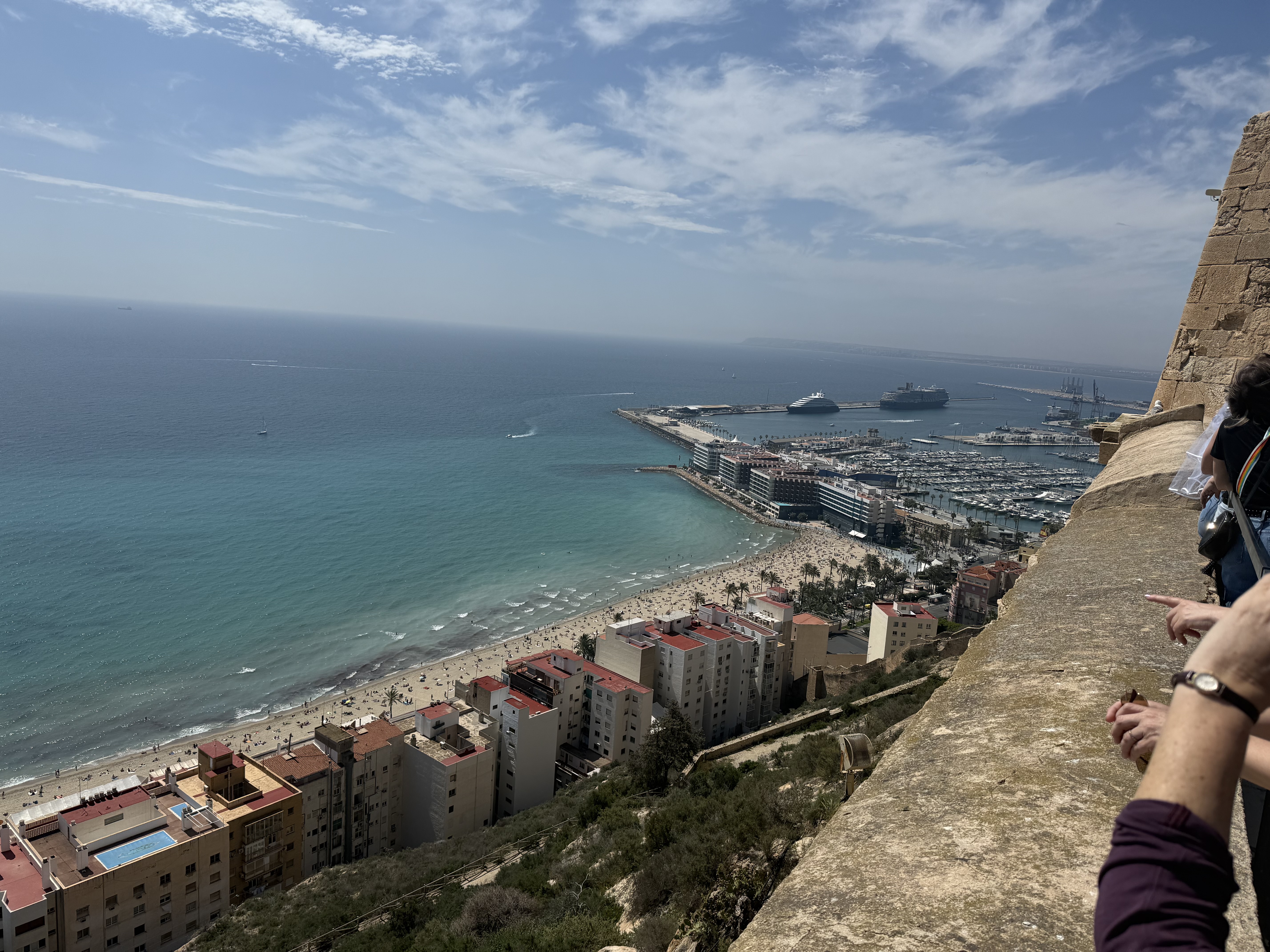 We arrived into Alicante today. Alicante’s story stretches back over 7,000 years, beginning with prehistoric settlers drawn to its sunny shores. The Greeks arrived around 325 BC, naming it Akra Leuke, and later the Romans built Lucentum, whose ruins still whisper of ancient days. In 711, Muslim forces transformed the town into Al-Laqant, a thriving center of trade and culture. Christian forces reclaimed it in the 13th century, and under the Crown of Aragon, Alicante blossomed into a powerful Mediterranean port. Though it faced sieges, plagues, and pirate raids, it continued to thrive, exporting wine, olive oil, and fruit across Europe. The city endured hardships during the Napoleonic Wars and the Spanish Civil War — where it stood among the final Republican holdouts. Today, Alicante thrives anew, its white castle still crowning the hill, its beaches bustling, and its streets alive with a blend of history and Mediterranean spirit. We are so lucky to be at these places and seeing history and learning new things and concepts that we never had the opportunity to learn in the US. So much history here