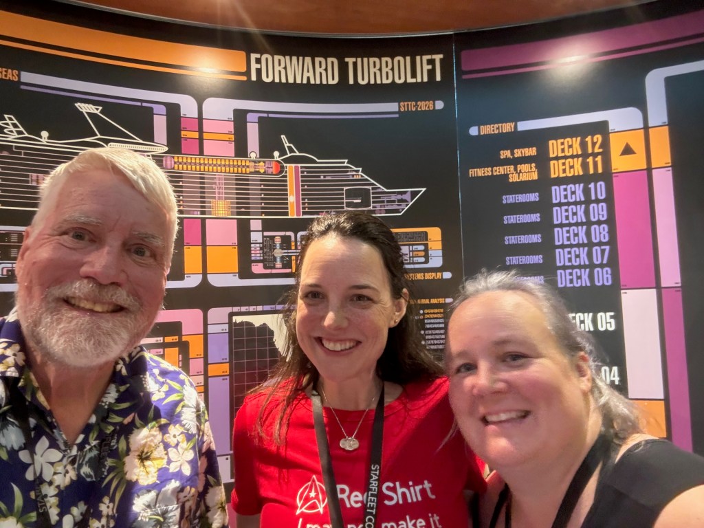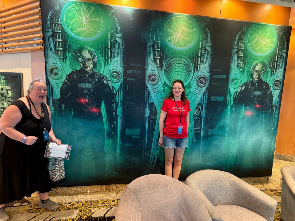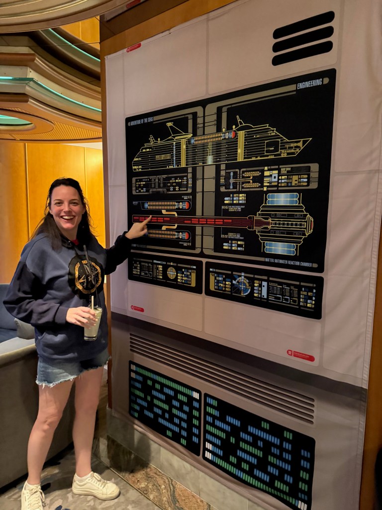 So here we are with two of our children, sharing a family heritage!  We entered the ship to see it completely transformed into Star Trek History. Every bar was themed, Quarks Bar, Scotty’s bar, the Cube and many more. The elevator turned into turbo lift, a Deep Space 9 promenade, and much more.