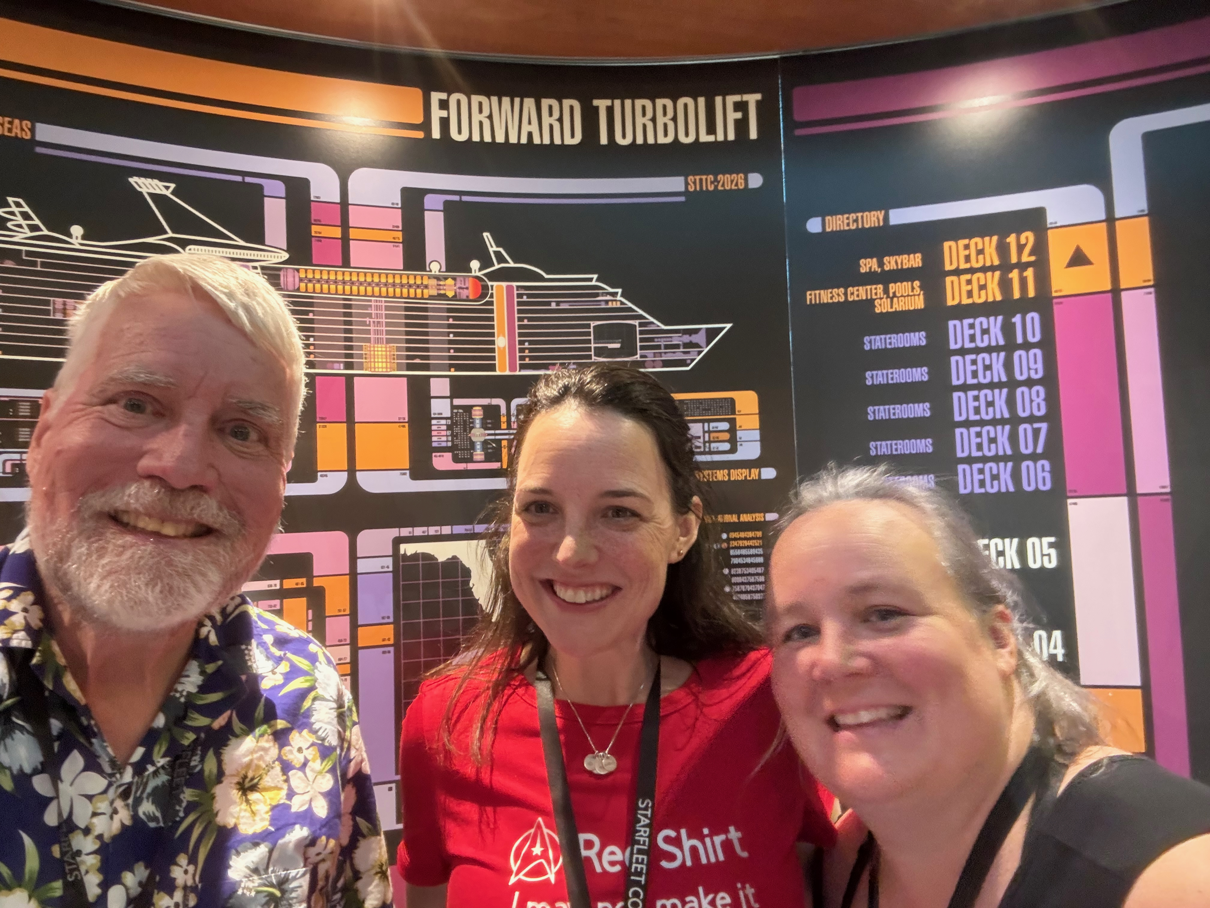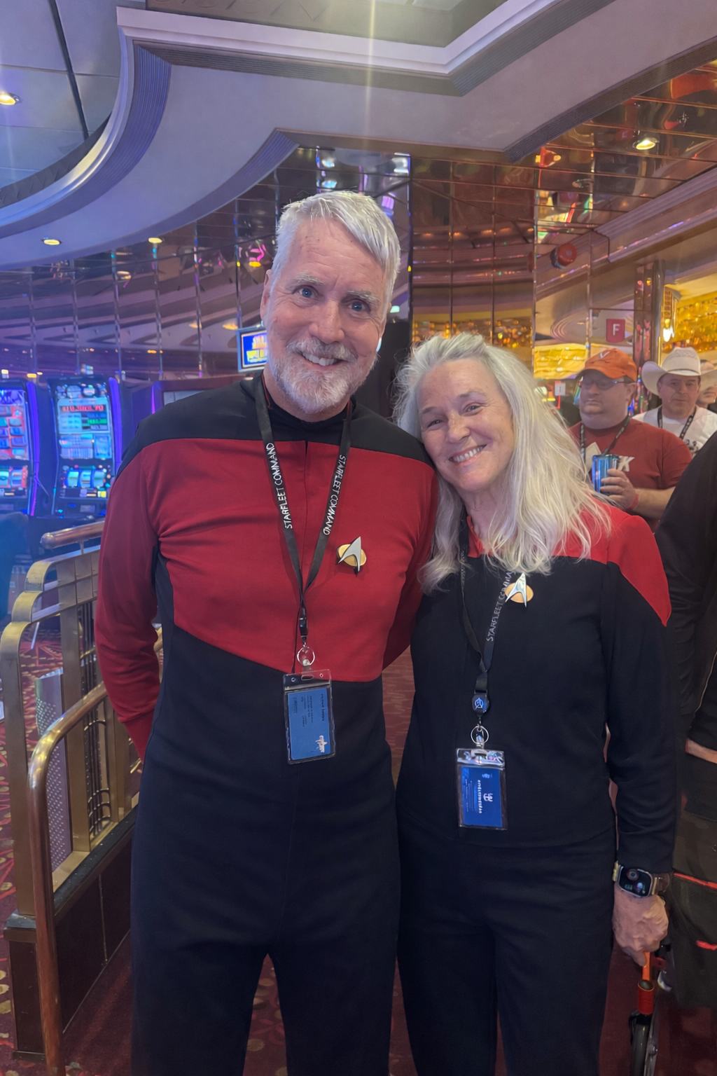 So here we are with two of our children, sharing a family heritage!  We entered the ship to see it completely transformed into Star Trek History. Every bar was themed, Quarks Bar, Scotty’s bar, the Cube and many more. The elevator turned into turbo lift, a Deep Space 9 promenade, and much more.