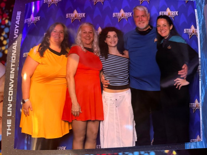 We started our day with pictures with Zoe Steiner who plays Tarima Sadal in Star Trek – Starlet Academy. This is one of the actors that Suzanna loves, so we all dressed up and had our picture taken.