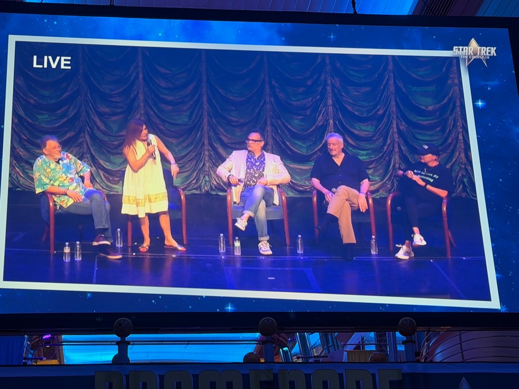 After our photo event, we sat at Scotty’s and watched the Star Trek: The Next Generation panel. There was a lot of discussion about what life on set was really like. It sounded intense — demanding work that required both stamina and passion. John de Lancie (Q) talked about how much he disliked the 12-hour days it took to make an episode — but said the final 30 minutes on screen made it worth it. Denise Crosby (Tasha Yar) shared how fans sometimes interpreted her acting in ways she never intended. In many ways, the fans helped shape the storytelling itself. The audience wasn’t just watching — they were participating in the legacy.