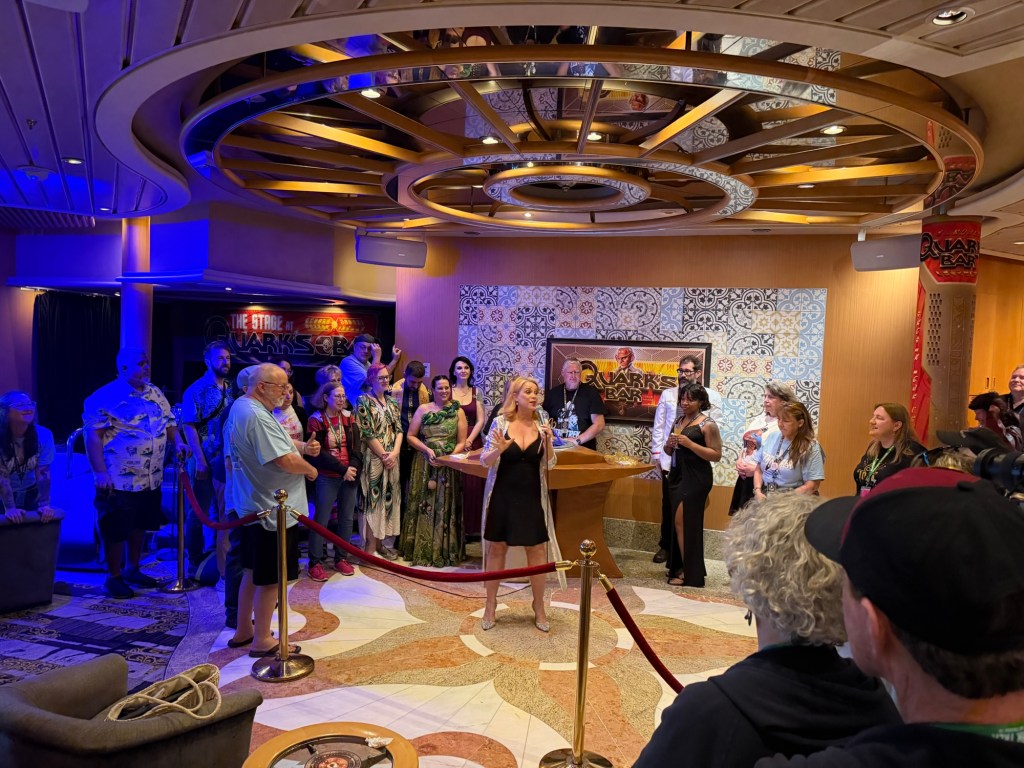 Later, we headed over to Quark’s to play Dabo with Chase Masterson (Leeta). It wouldn’t be a Star Trek cruise without a little time at the Dabo table.