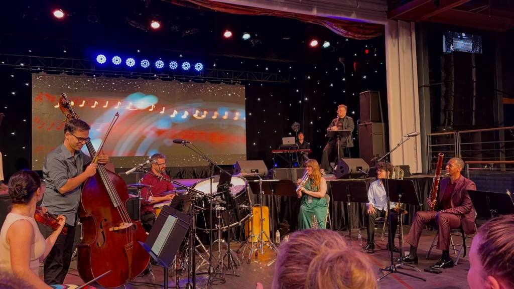 The morning was slow and peaceful, giving us time to relax and catch up. Sea days have their own rhythm — coffee, conversations, and the steady hum of the ship moving across open water. We even saw some of the actors and talked with them.